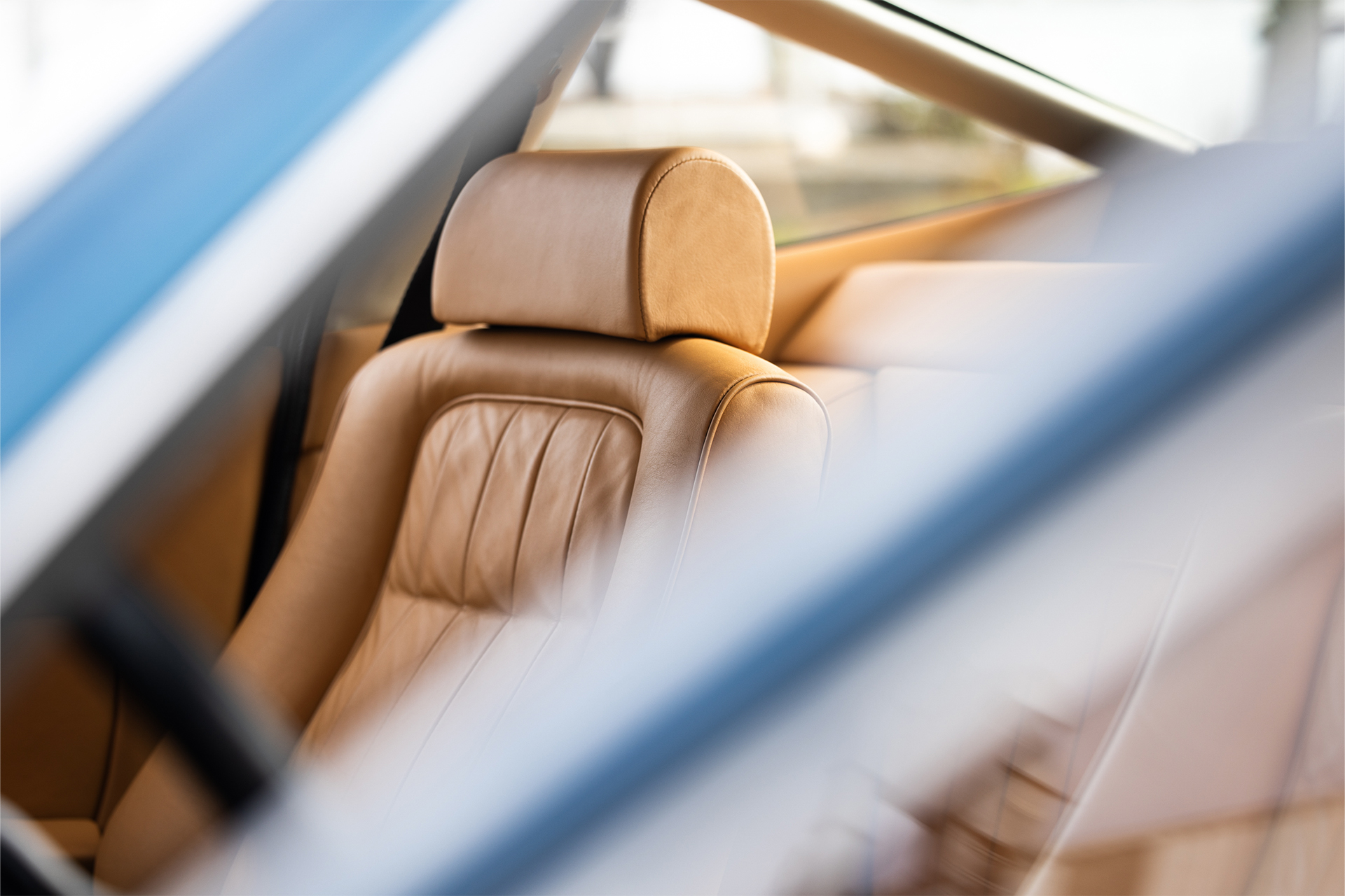 Very tasteful color combination of Blu Ribot over a Beige leather interior.