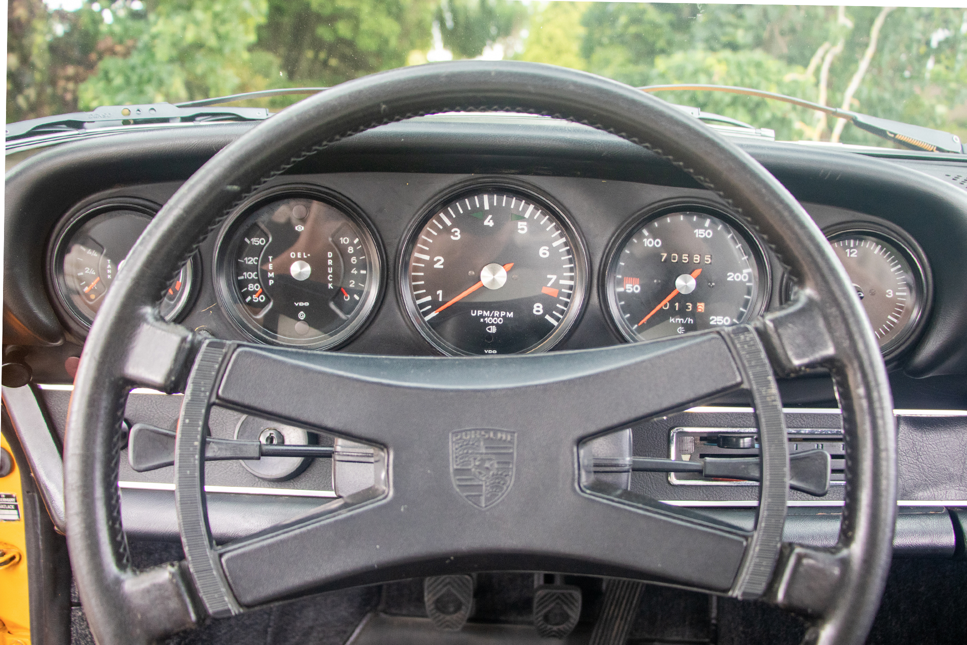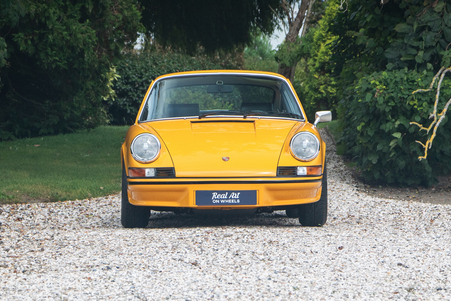 This 1973 Porsche 911 Carrera 2.7 RS was originally built for the Belgium/Luxembourg market. The car left the factory as a M472 Touring Model in Signal Yellow 5252 with a Black Leatherette interior. Exactly as how it looks today. In 1982, the car was acquired by a Mr. Bataille from Hyères, a Mediterranean coastal town in the south of France.