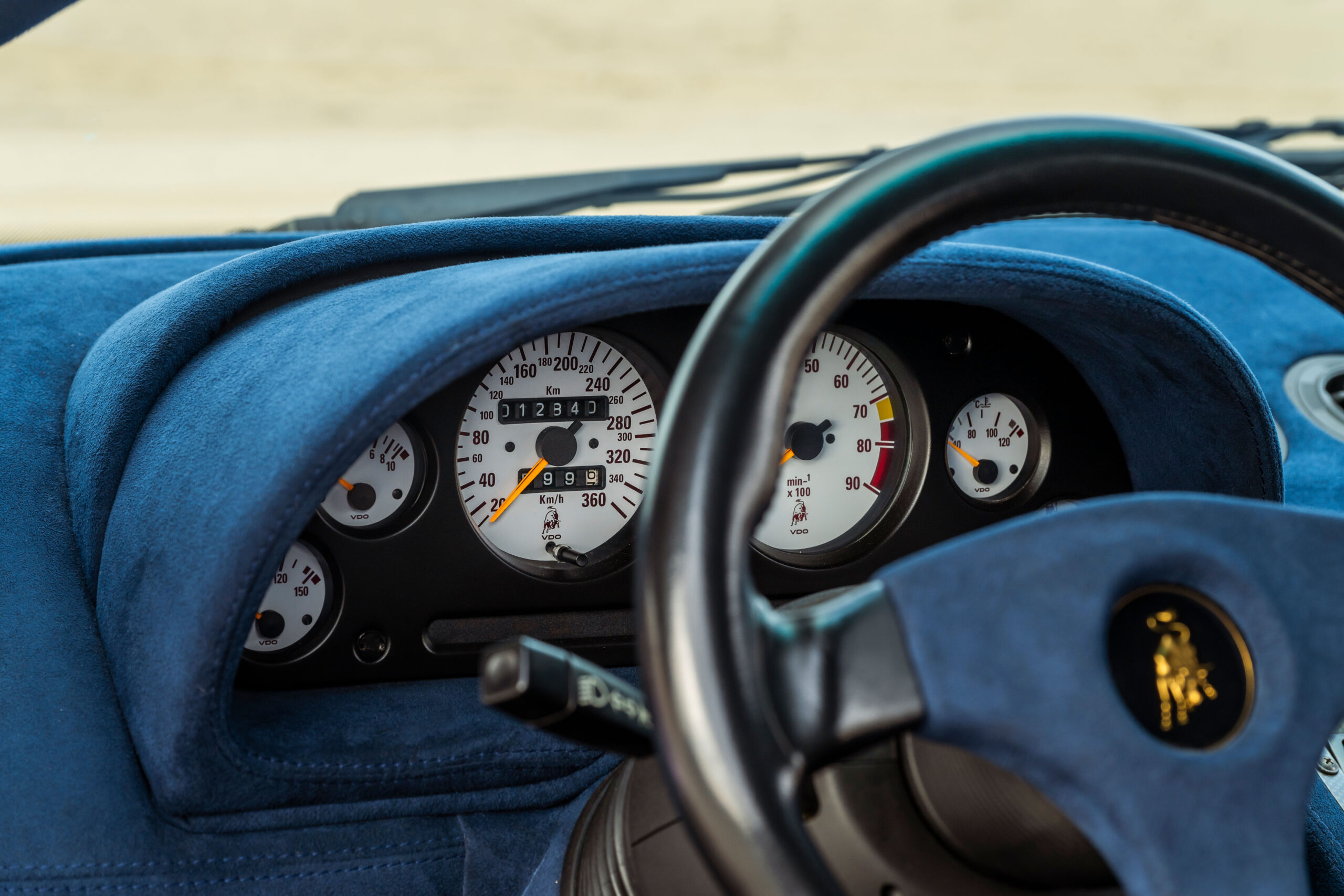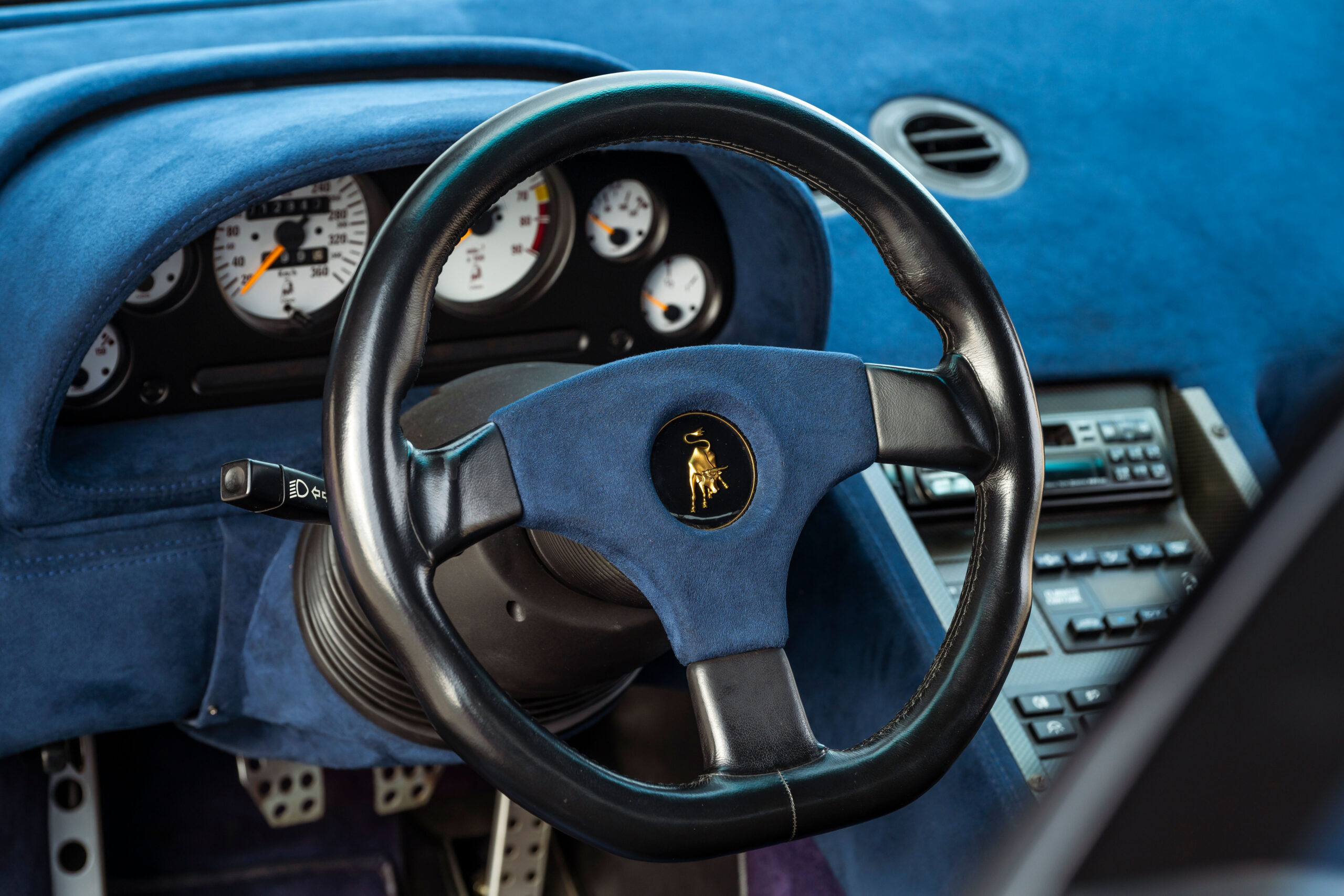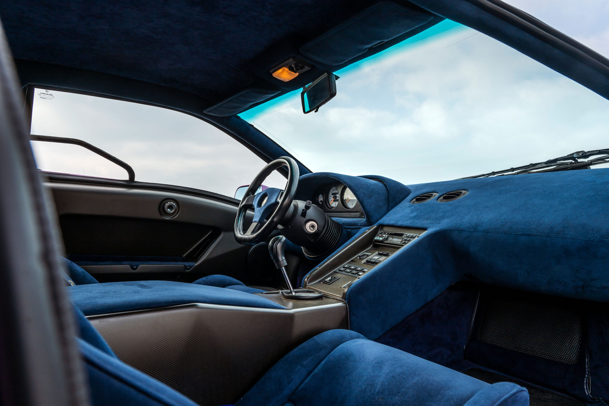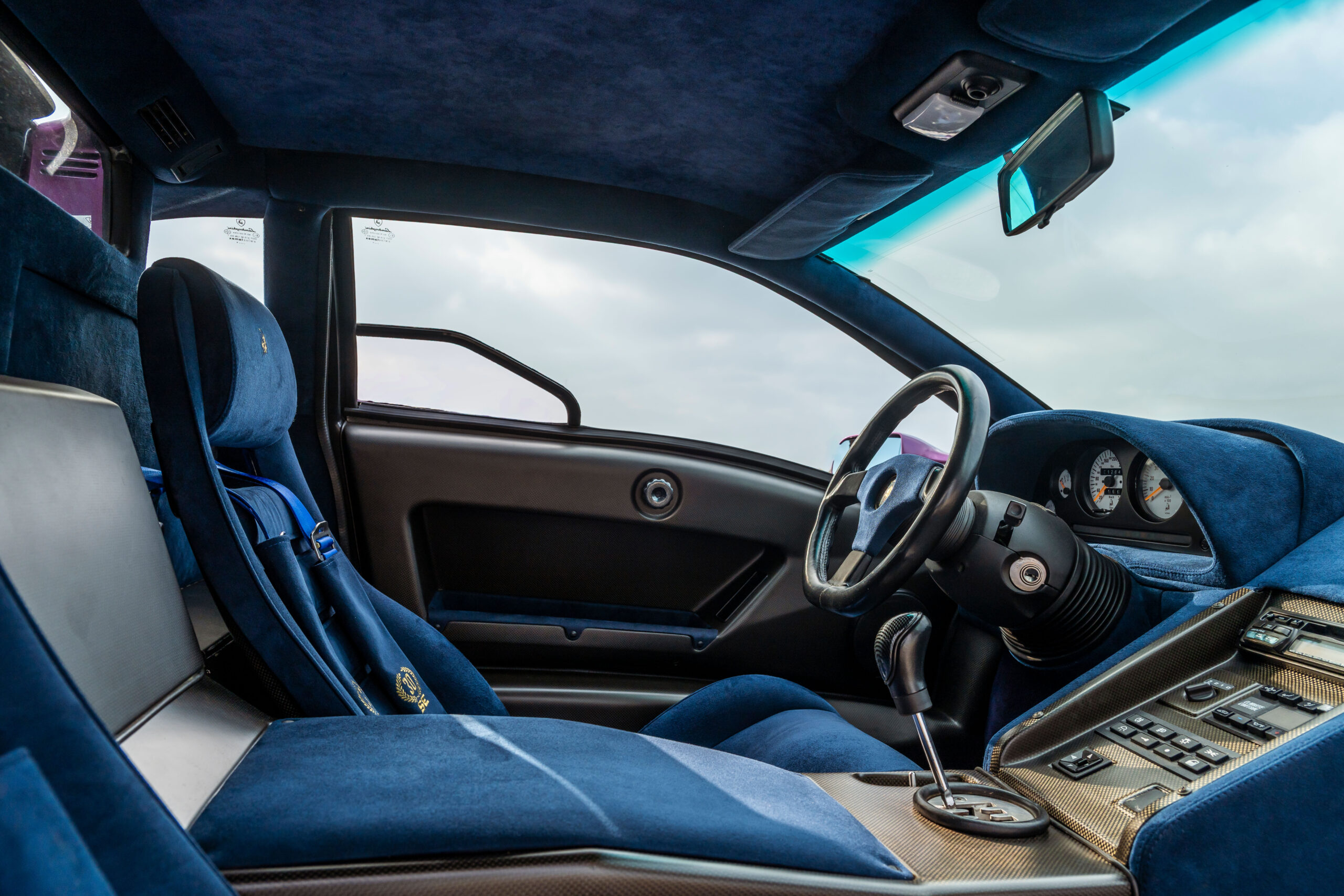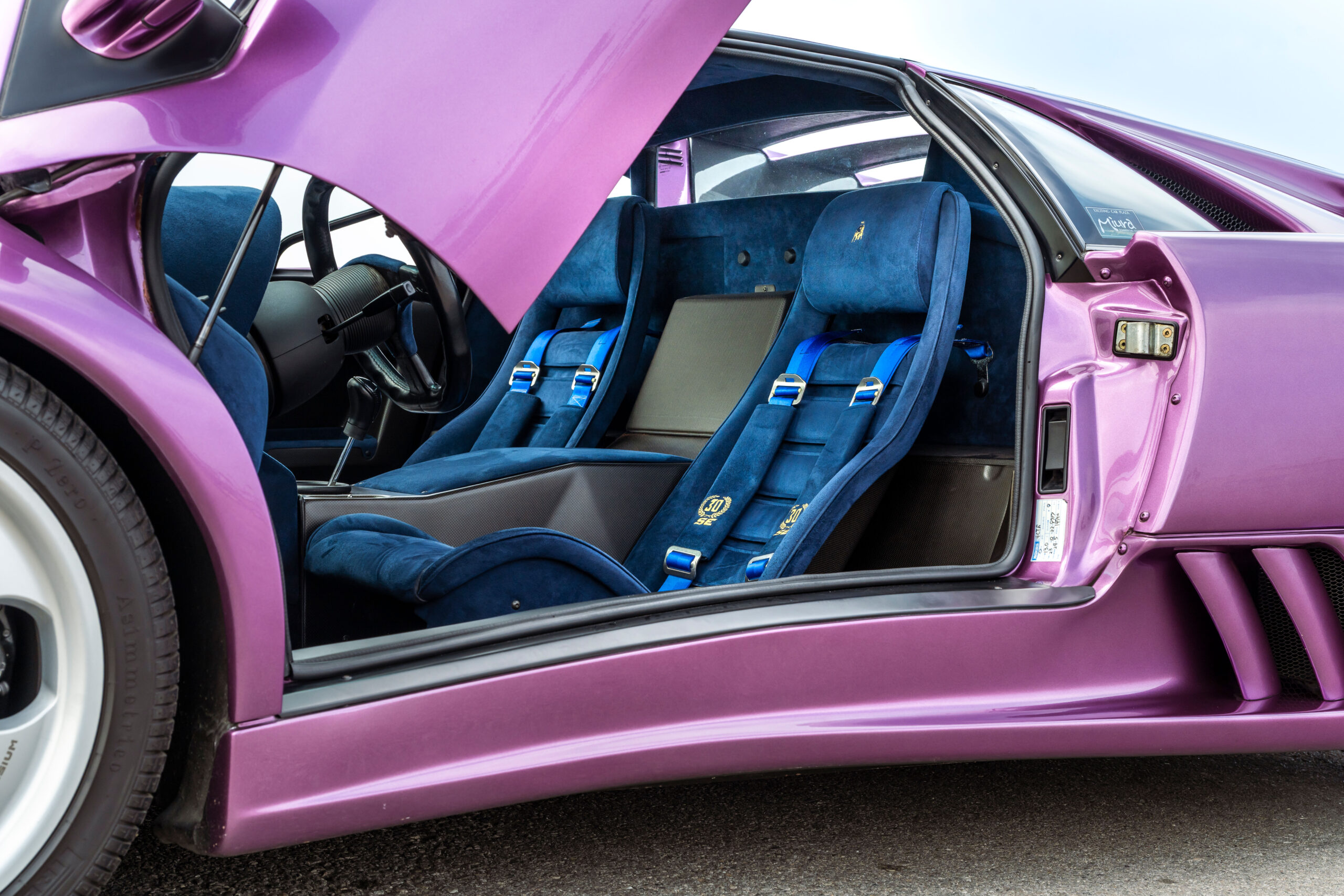 Still sporting its original color combination of Viola SE30 over a Blu Alcantara, the Diablo has seen a resurgence in recent years, beloved by enthusiasts for their sheer character and panache, with the SE30 being particularly sought after for its added performance over its predecessors. This SE30 has been largely kept in static storage and presents very well throughout, having been driven approximately 1,200 km over the past twelve years, with the odometer showing 12,840 km at the time of cataloguing, which is believed to be original. It would make an exciting addition to any collection of Lamborghinis, perfectly bridging the gap between the current cars produced under Audi AG’s ownership today and the Miura and Countach.