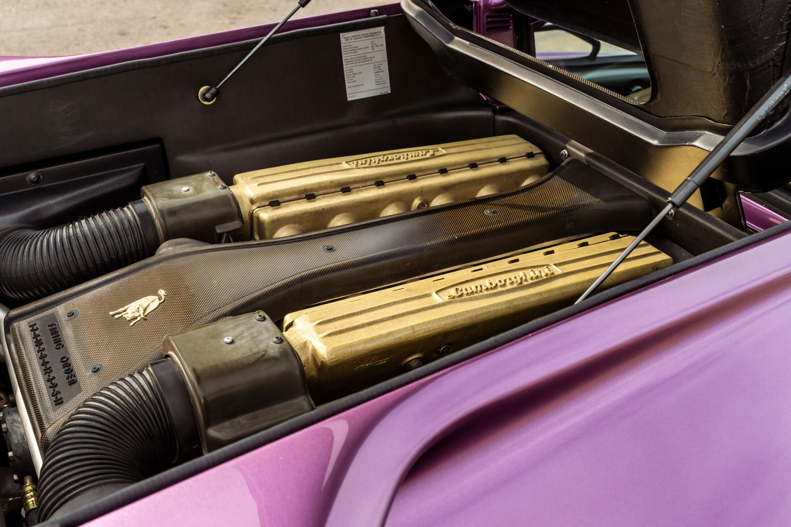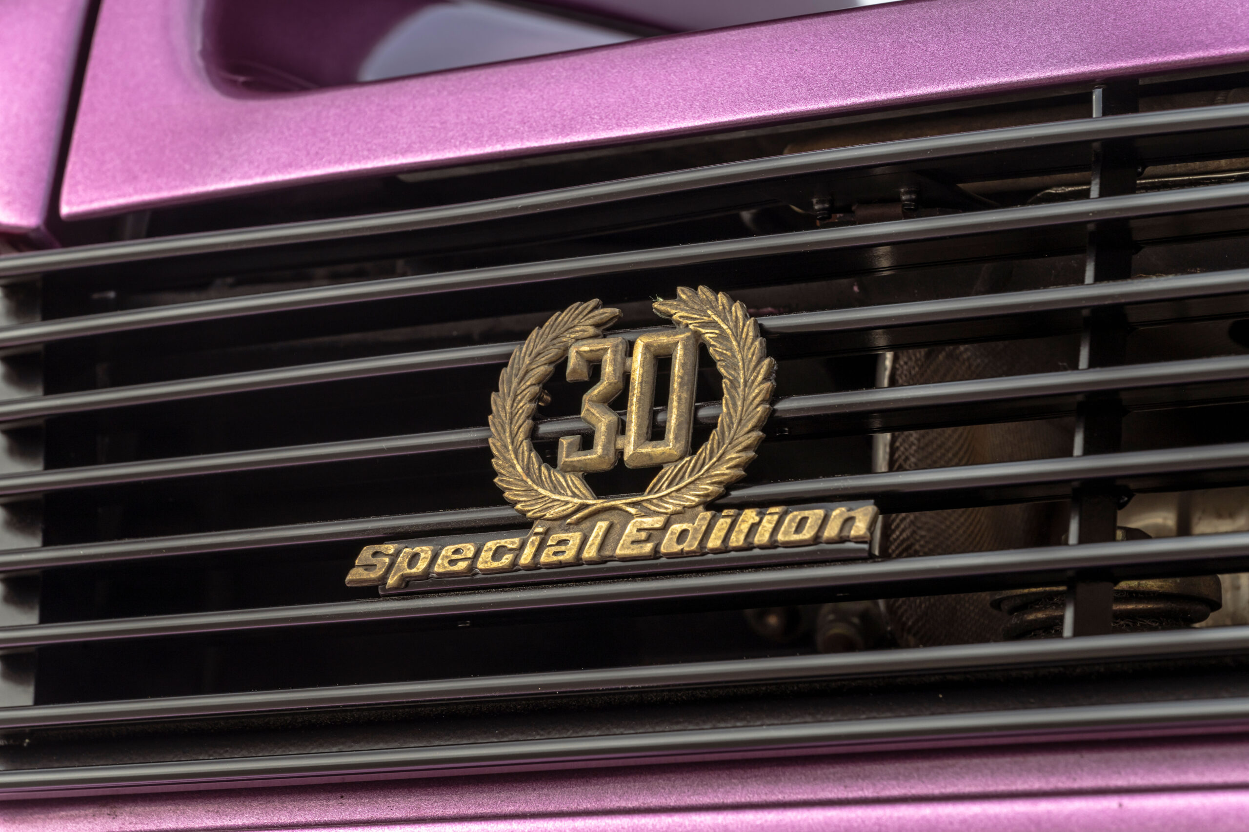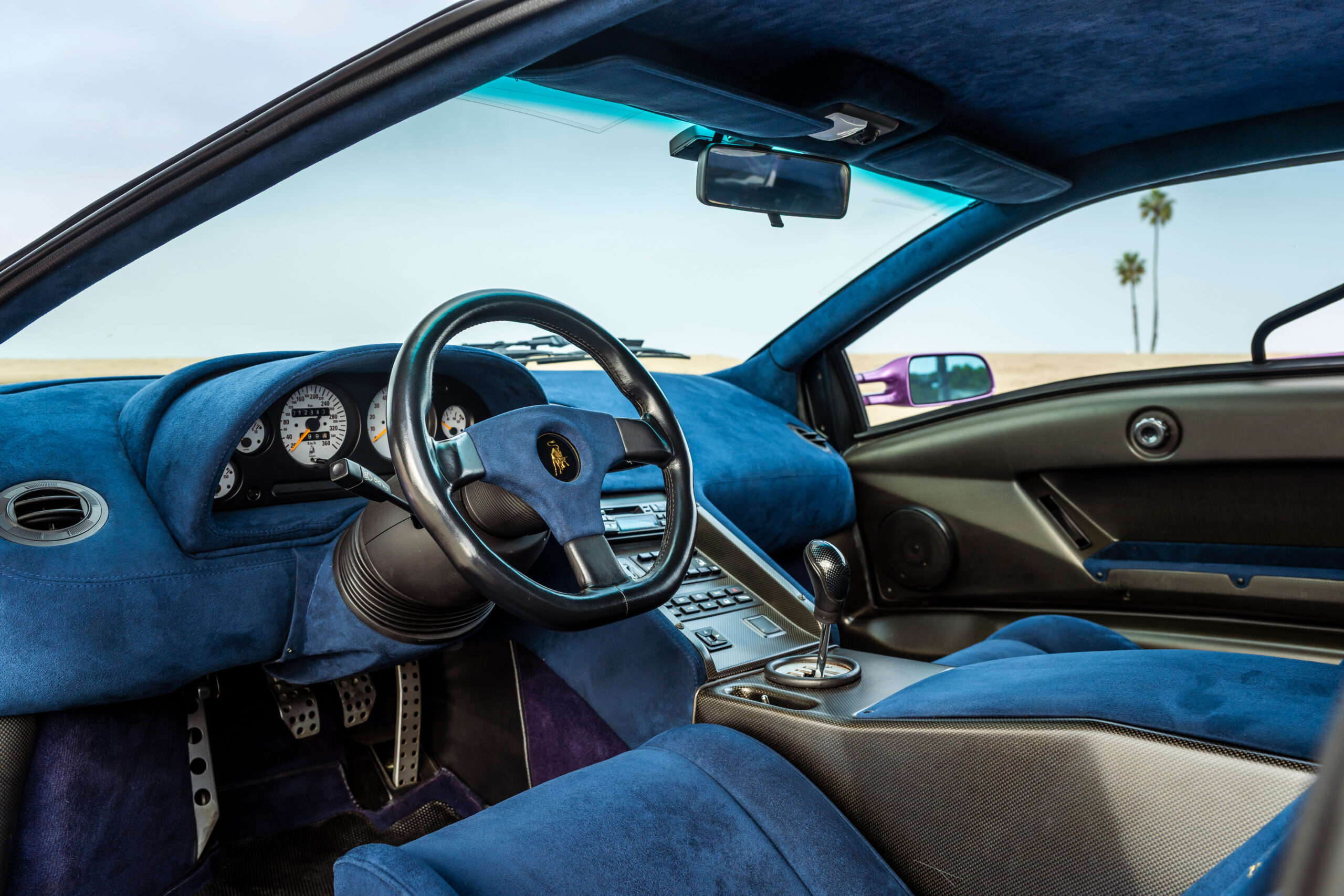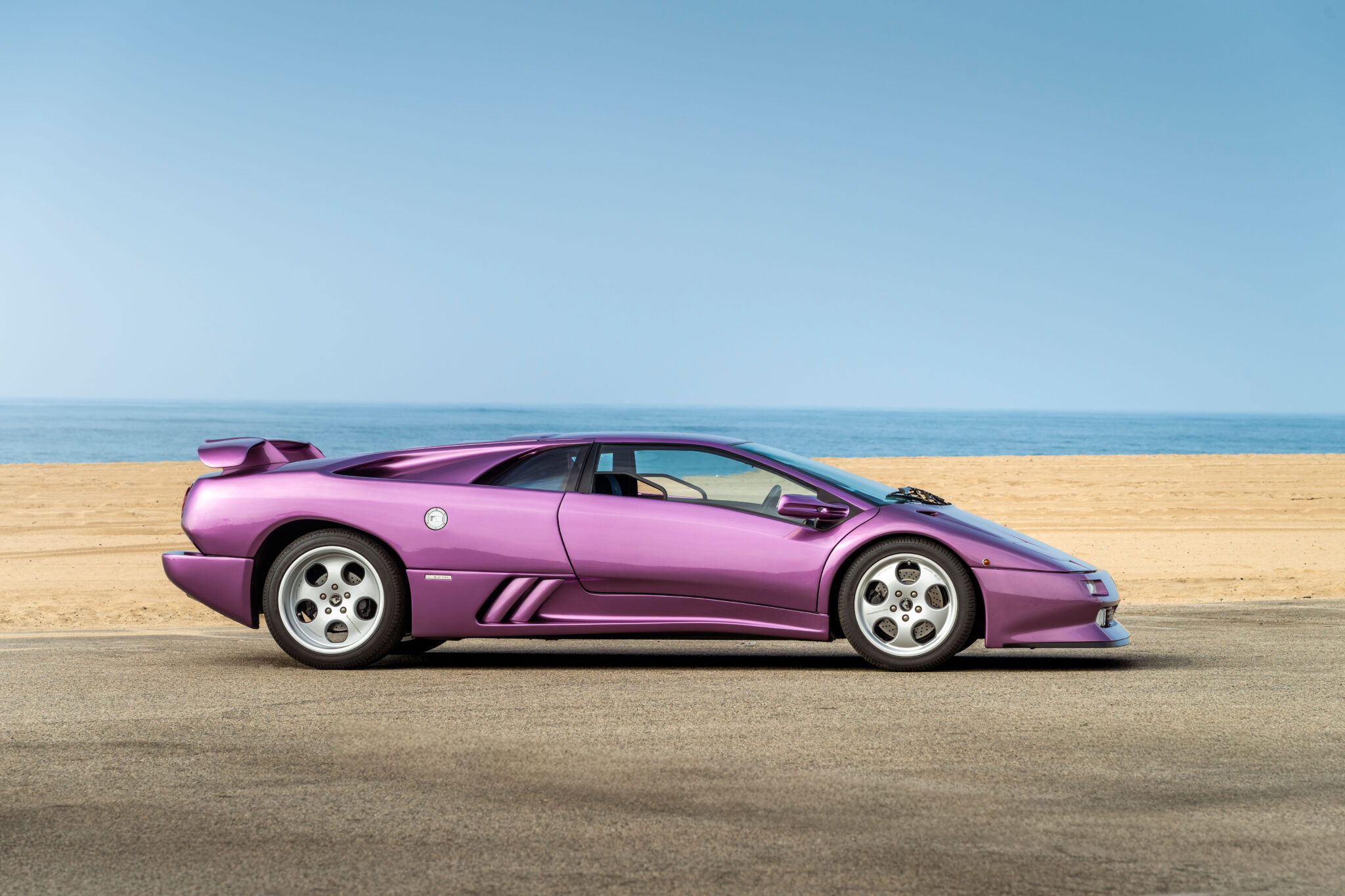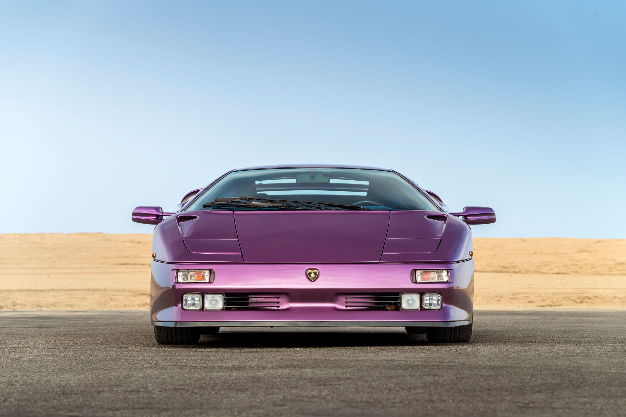 Still sporting its original color combination of Viola SE30 over a Blu Alcantara, the Diablo has seen a resurgence in recent years, beloved by enthusiasts for their sheer character and panache, with the SE30 being particularly sought after for its added performance over its predecessors. This SE30 has been largely kept in static storage and presents very well throughout, having been driven approximately 1,200 km over the past twelve years, with the odometer showing 12,840 km at the time of cataloguing, which is believed to be original. It would make an exciting addition to any collection of Lamborghinis, perfectly bridging the gap between the current cars produced under Audi AG’s ownership today and the Miura and Countach.