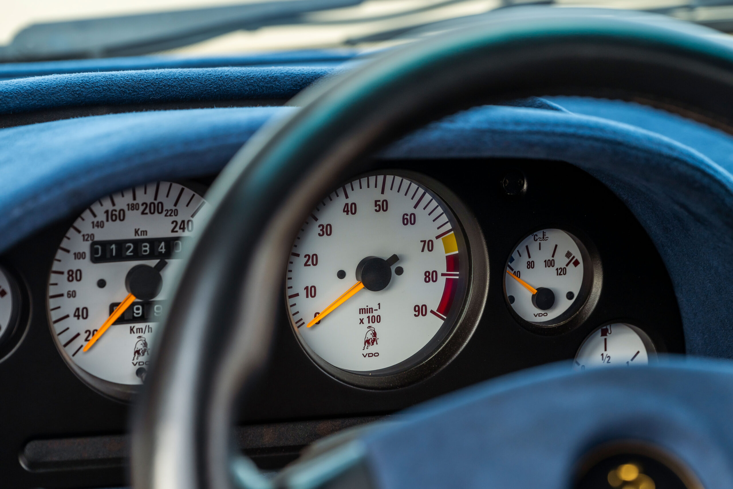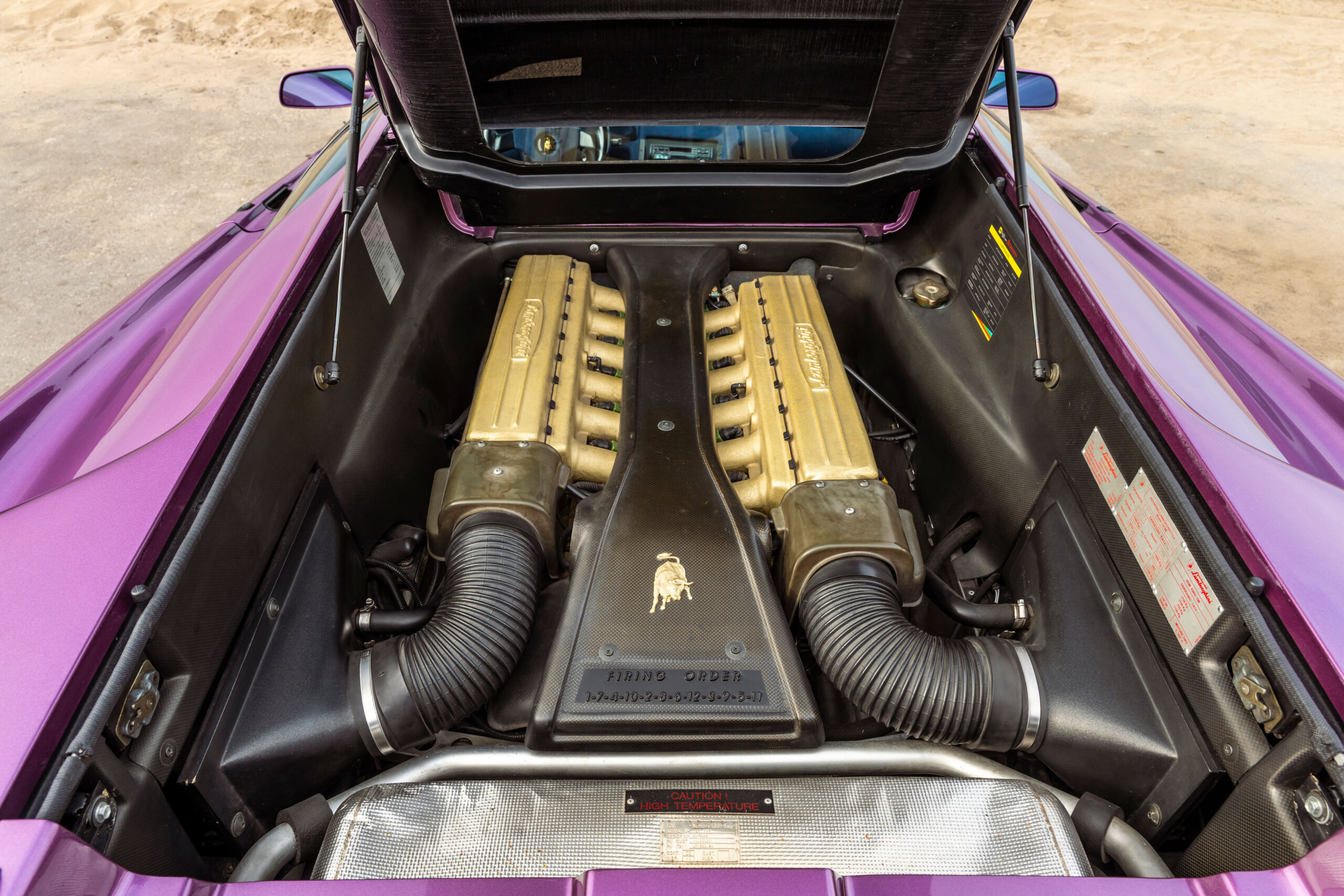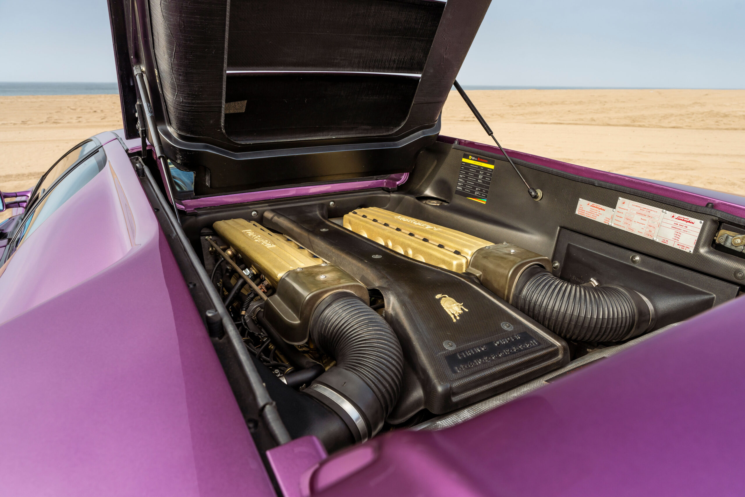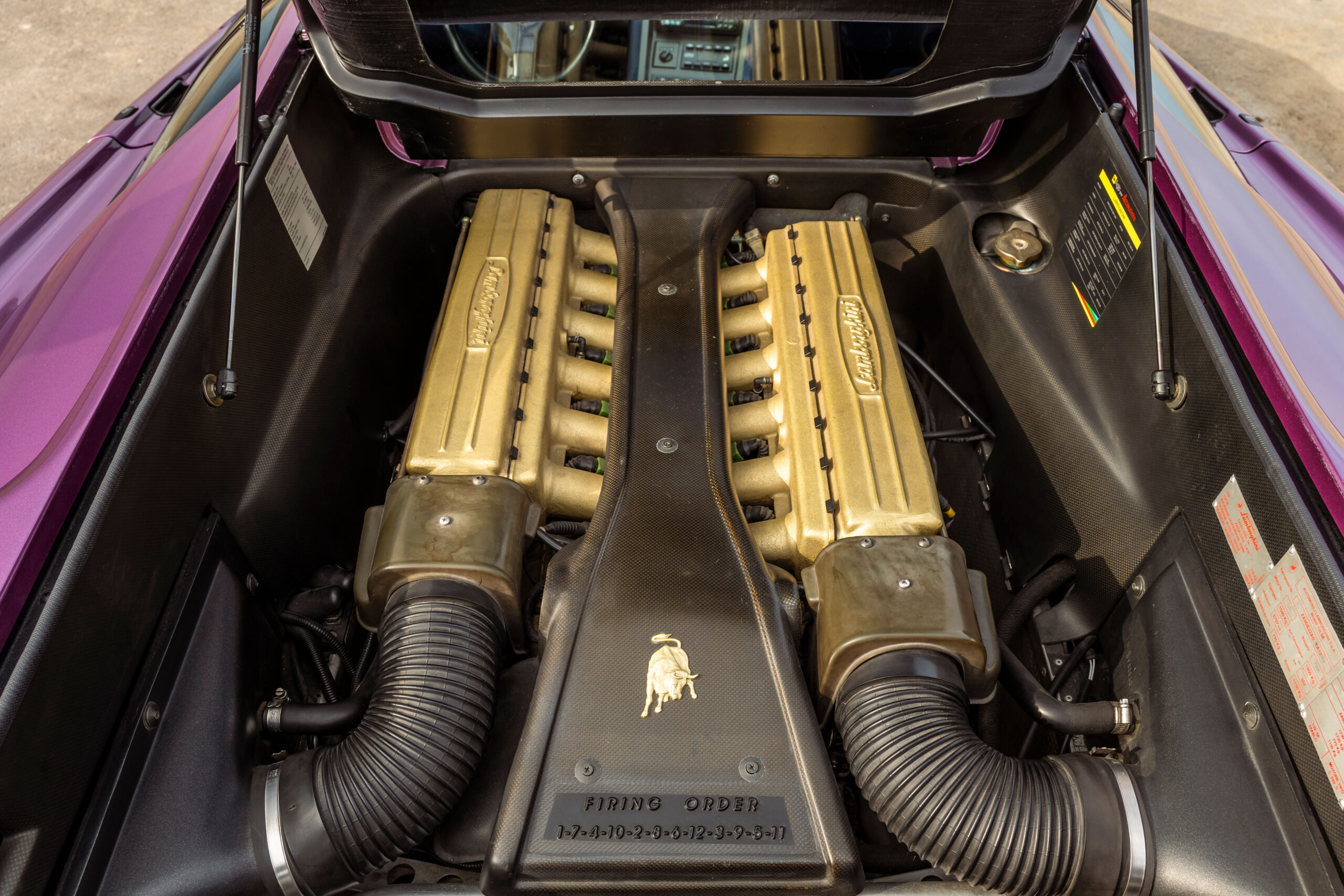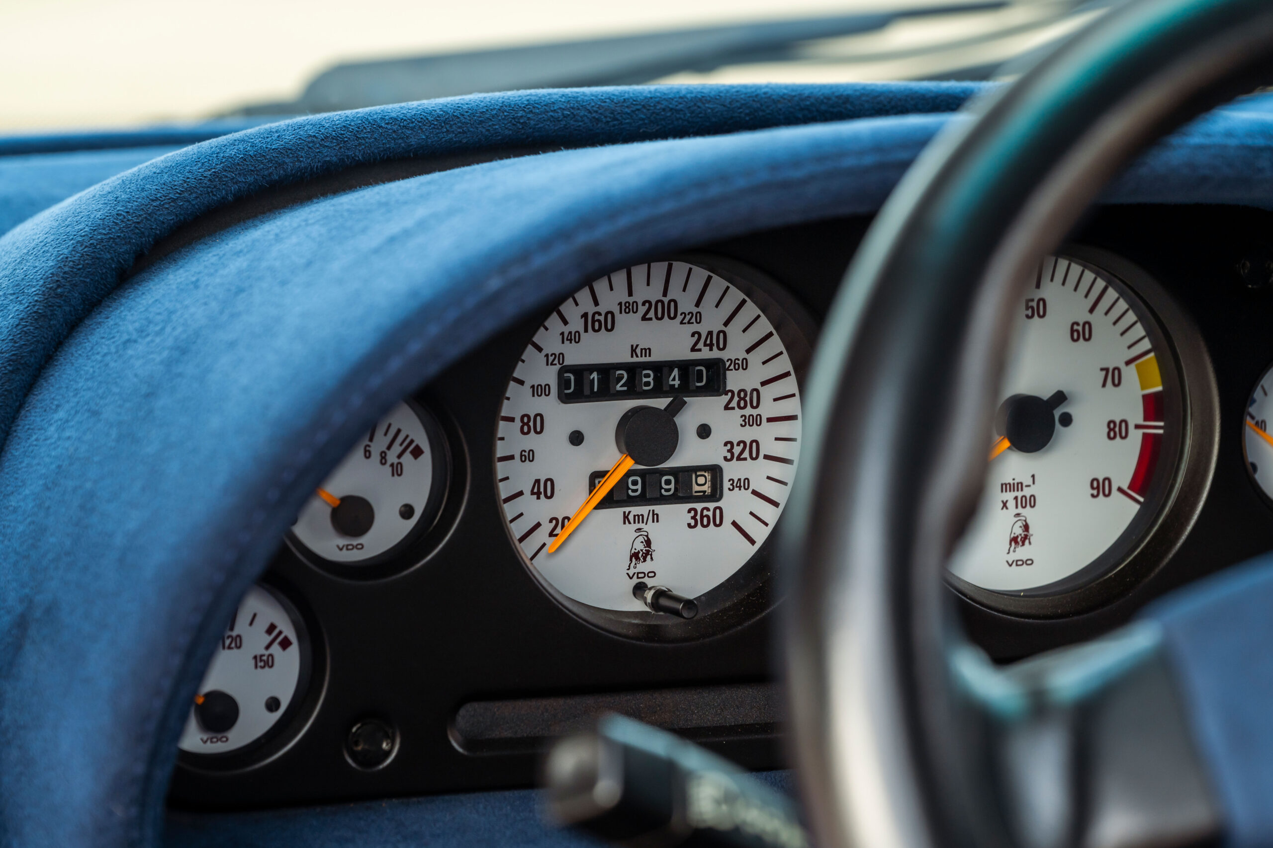 Still sporting its original color combination of Viola SE30 over a Blu Alcantara, the Diablo has seen a resurgence in recent years, beloved by enthusiasts for their sheer character and panache, with the SE30 being particularly sought after for its added performance over its predecessors. This SE30 has been largely kept in static storage and presents very well throughout, having been driven approximately 1,200 km over the past twelve years, with the odometer showing 12,840 km at the time of cataloguing, which is believed to be original. It would make an exciting addition to any collection of Lamborghinis, perfectly bridging the gap between the current cars produced under Audi AG’s ownership today and the Miura and Countach.