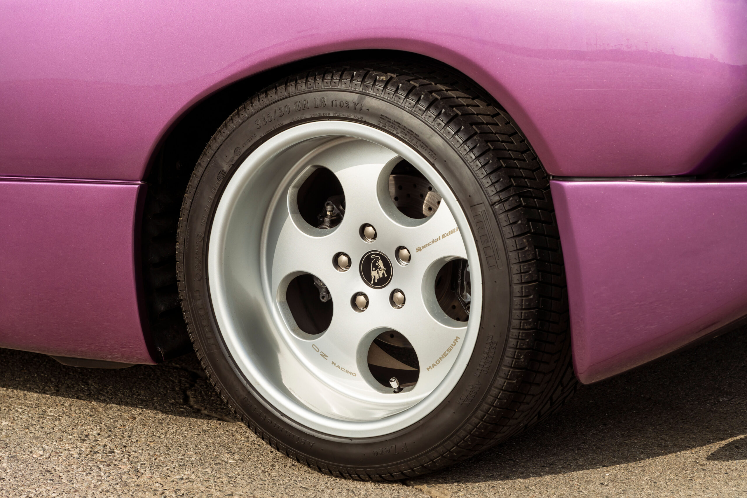 Mechanically, the SE30 retained Lamborghini’s legendary V-12 but featured a revised fuel system, magnesium intake manifolds, and a free-flow exhaust that combined to increase output to 525 horsepower. Unlike the Diablo VT, the SE30 was a raw, rear-wheel-drive machine. Driver-adjustable sway bars controlled by a cabin-mounted switch transitioned the SE30 from firm to race-stiff. Lamborghini turned to carbon fiber for many of the SE30’s body panels, and the company used race-specification brakes to bring its lighter, faster Diablo to a halt.