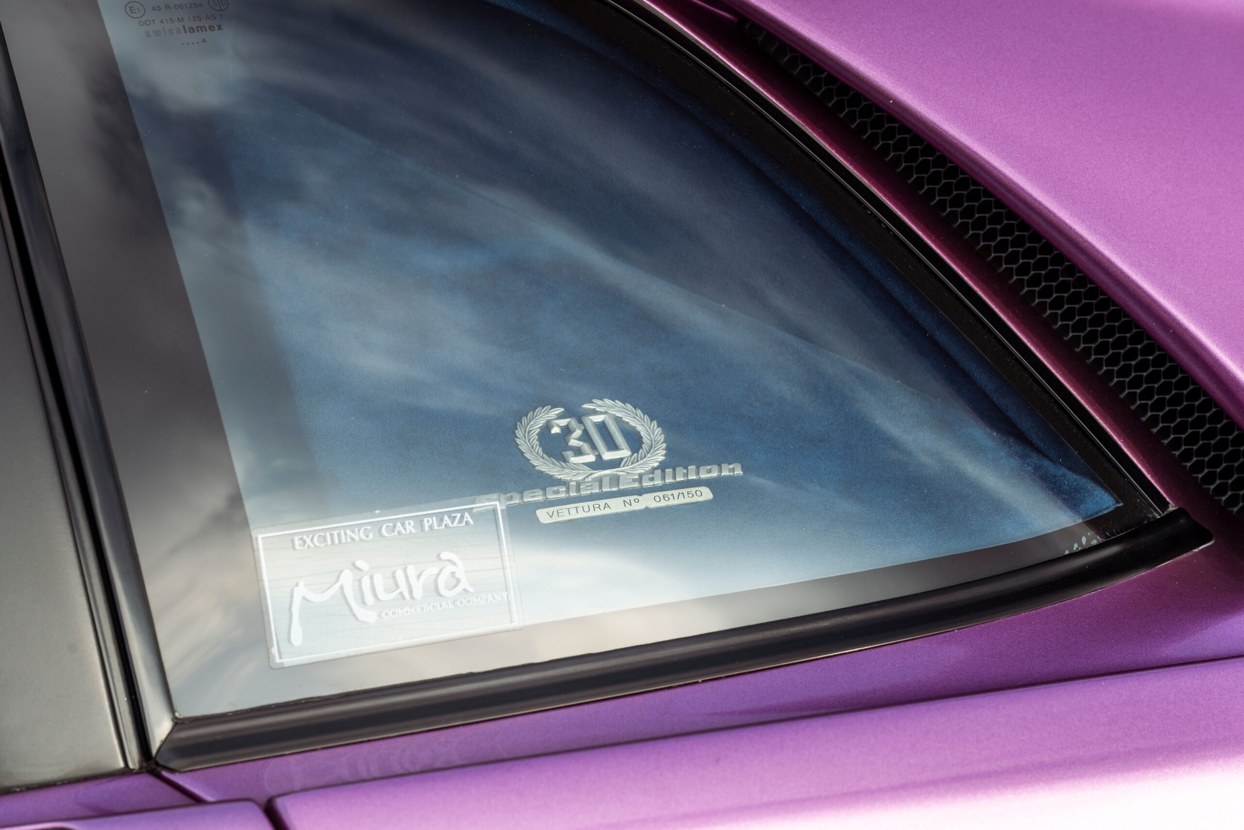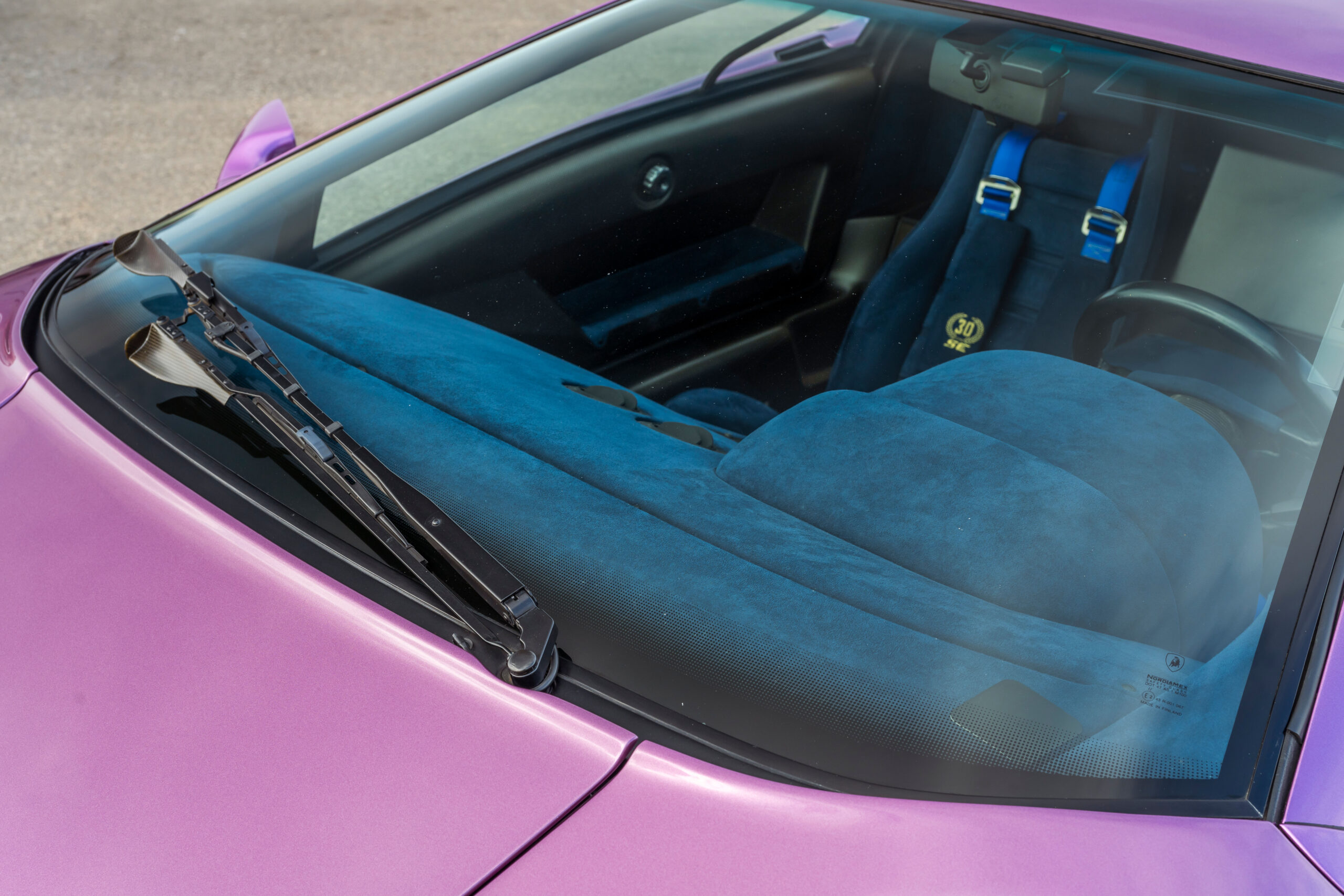 Delivered new to Germany via Auto Kremer in Bonn in November of 1994, this Diablo SE30 was originally finished in what is undoubtedly the must-have color combination for the model; Viola SE30 (a paint color introduced especially for this model that still remains an option for Lamborghinis built today) over a Blu Alcantara interior. Serial number 061 would spend the first three years of its life there prior to being sold from the first owner to Japan, again via Auto Kremer in 1997. Sold to an owner in Tokyo in 1999, the car would pass through subsequent owners in Fukui, then Aichi, and finally Kanagawa in 2012.