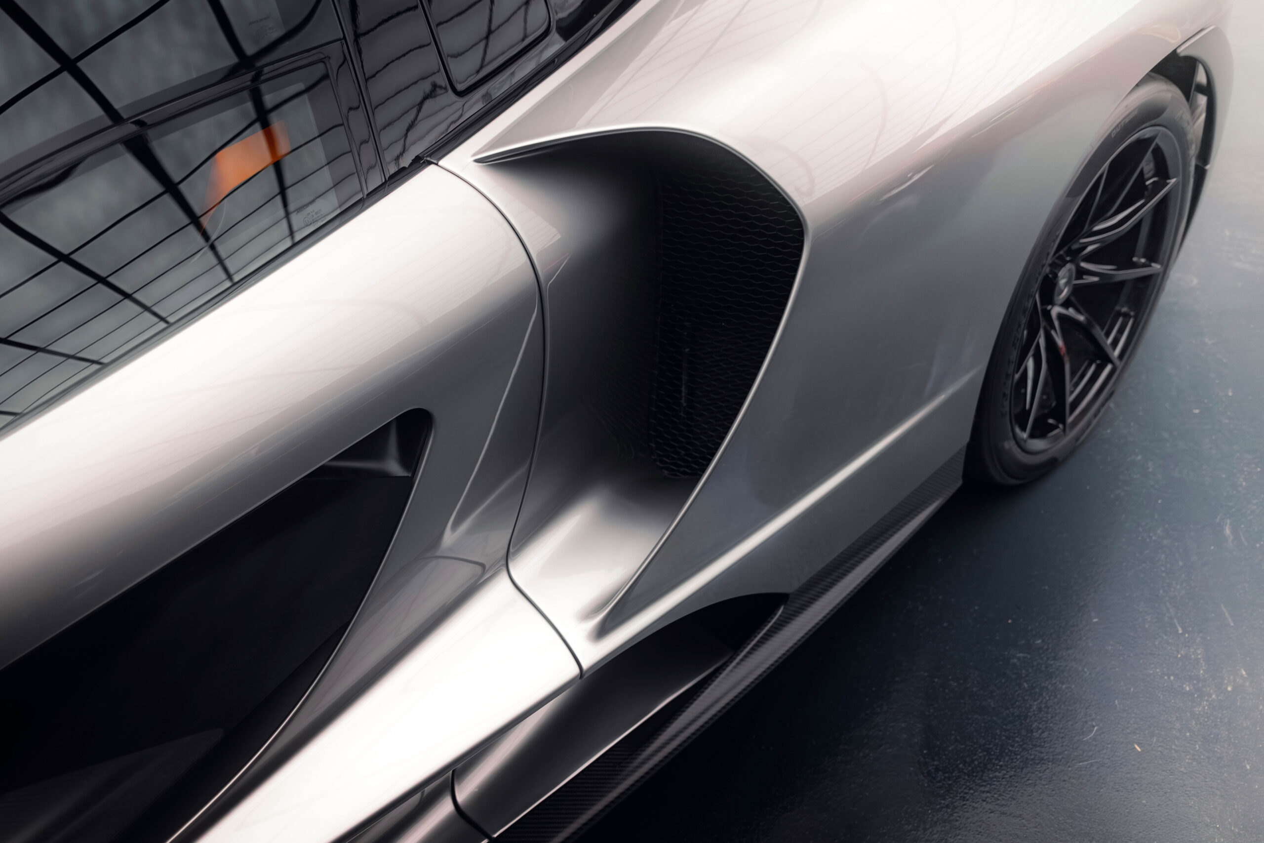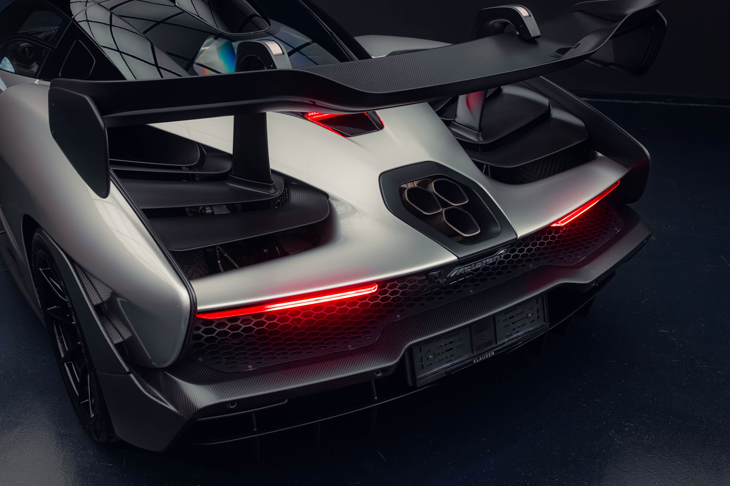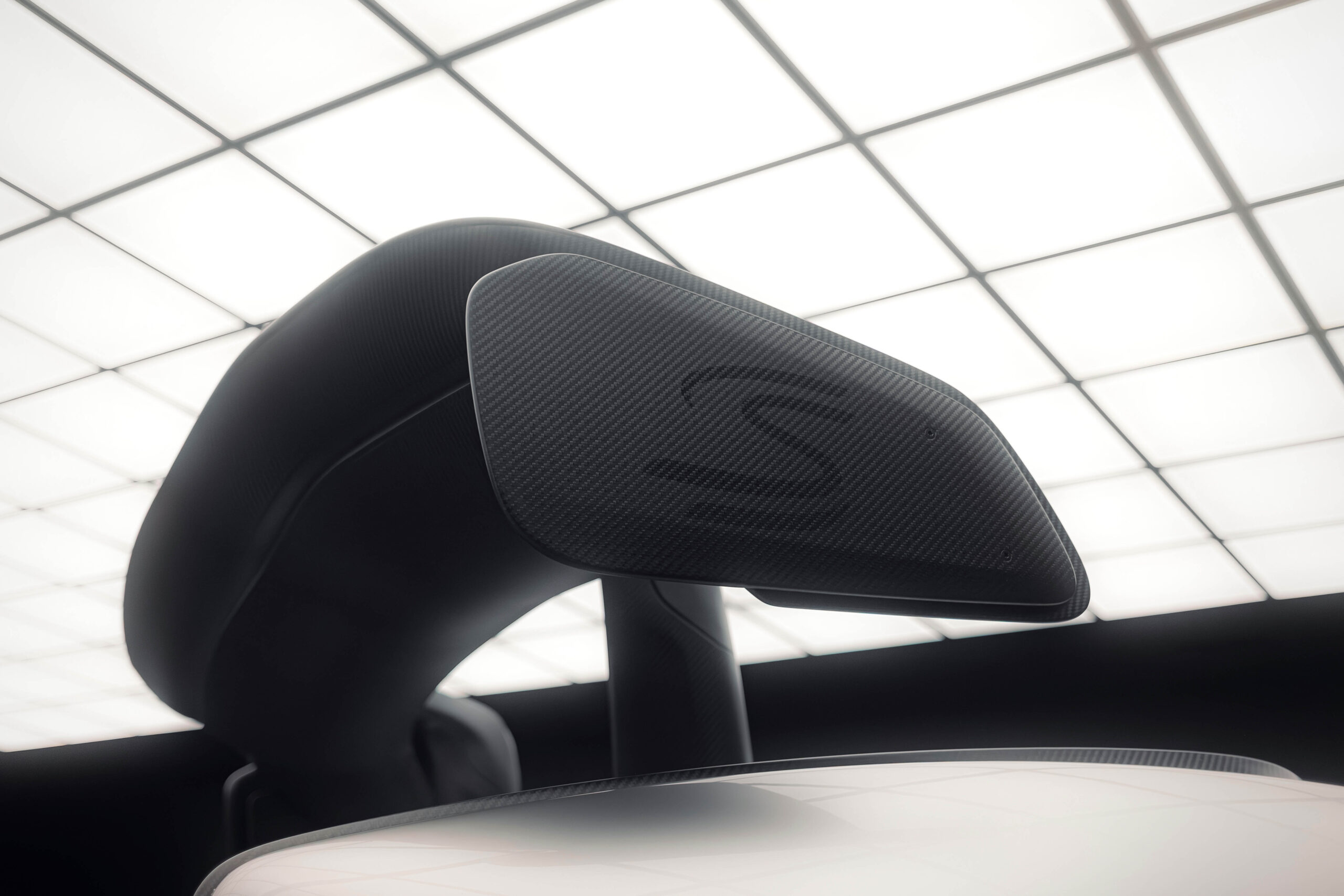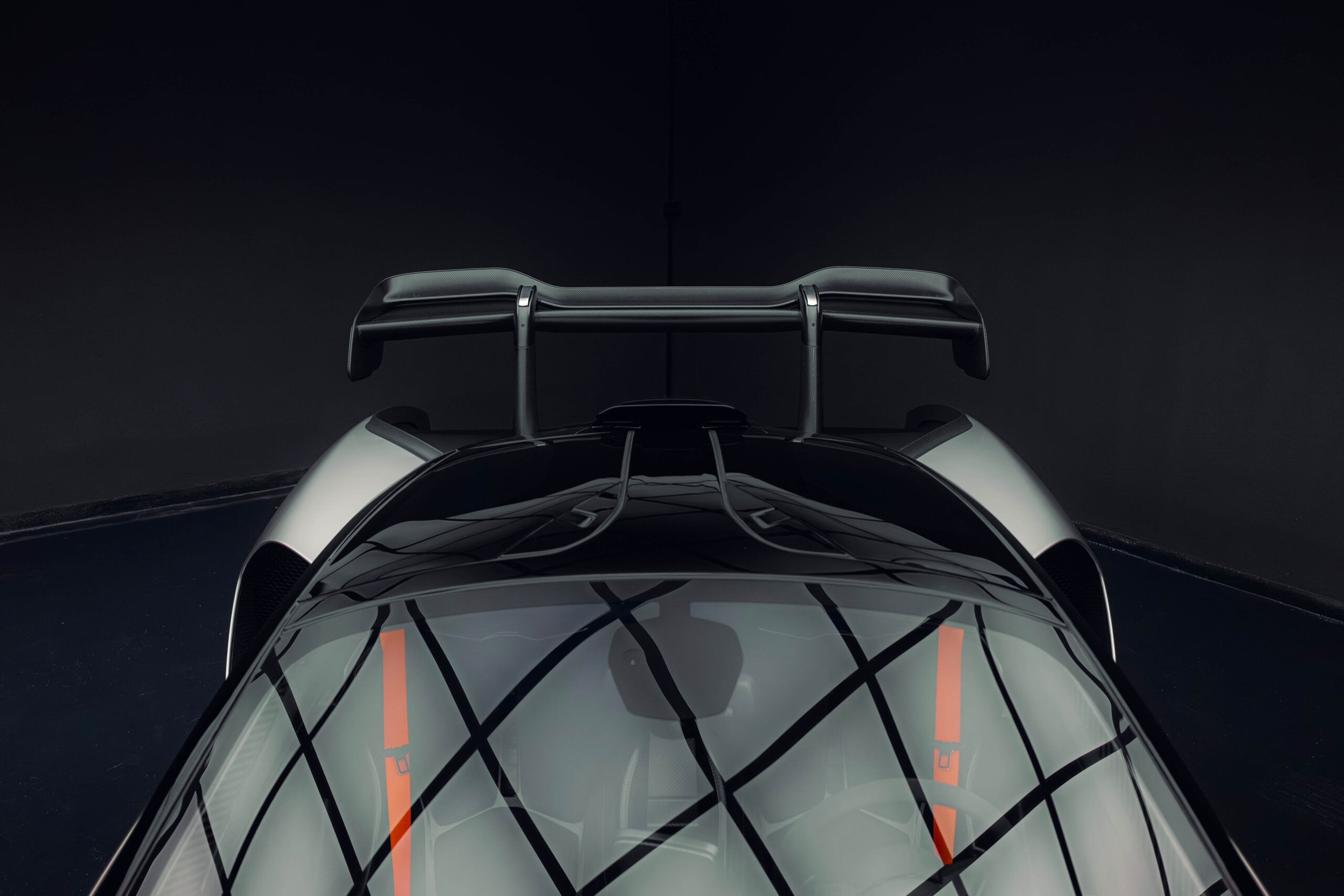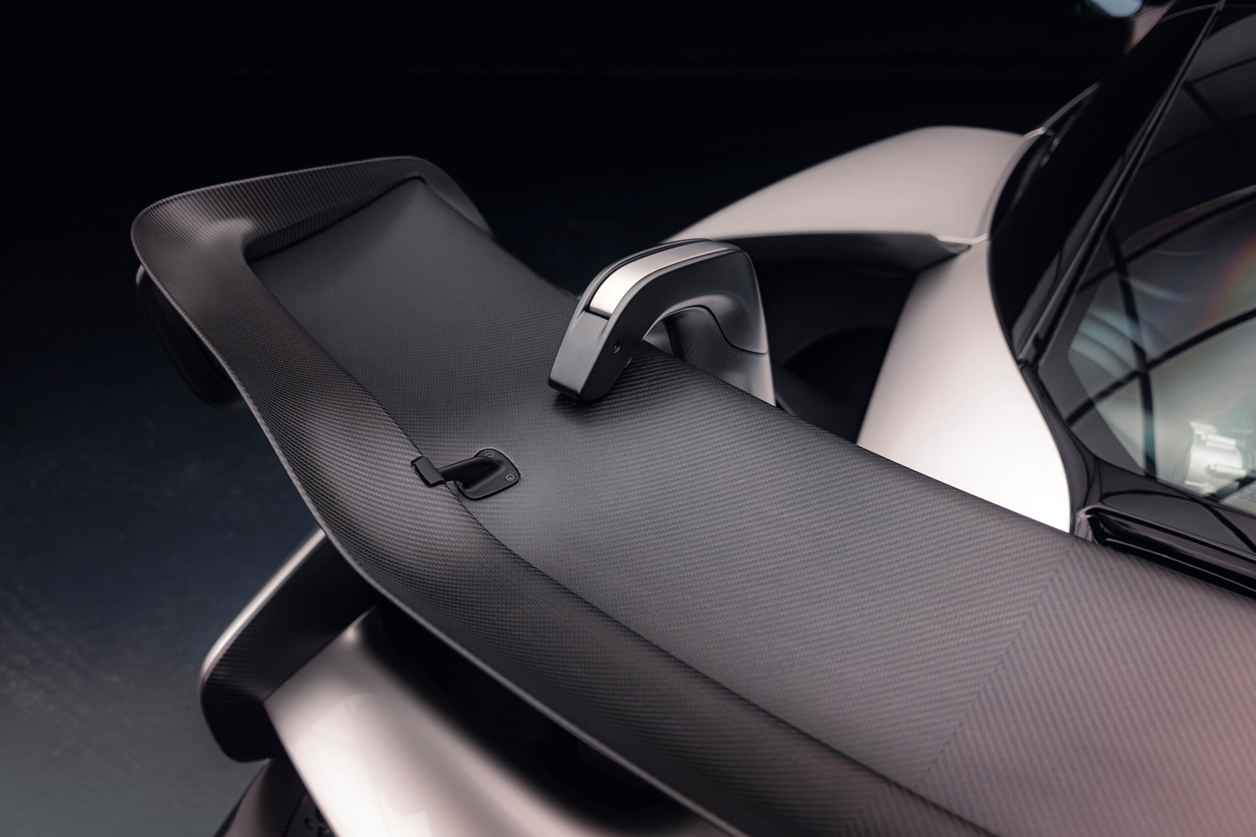 The Senna’s rear wing was arguably its most striking feature, heralding the car’s exceptional active aerodynamics. A substantial raised splitter and dynamic winglets at the front direct airflow under the body, while warm air from the radiators is funneled over the roof and channeled across that enormous active rear wing. Hydraulically controlled, this wing continuously adjusts to optimize downforce, function as an air brake, or minimize drag. At 250 km/h, the Senna generates up to 800 kilograms of downforce, a 40 percent improvement over the P1.
