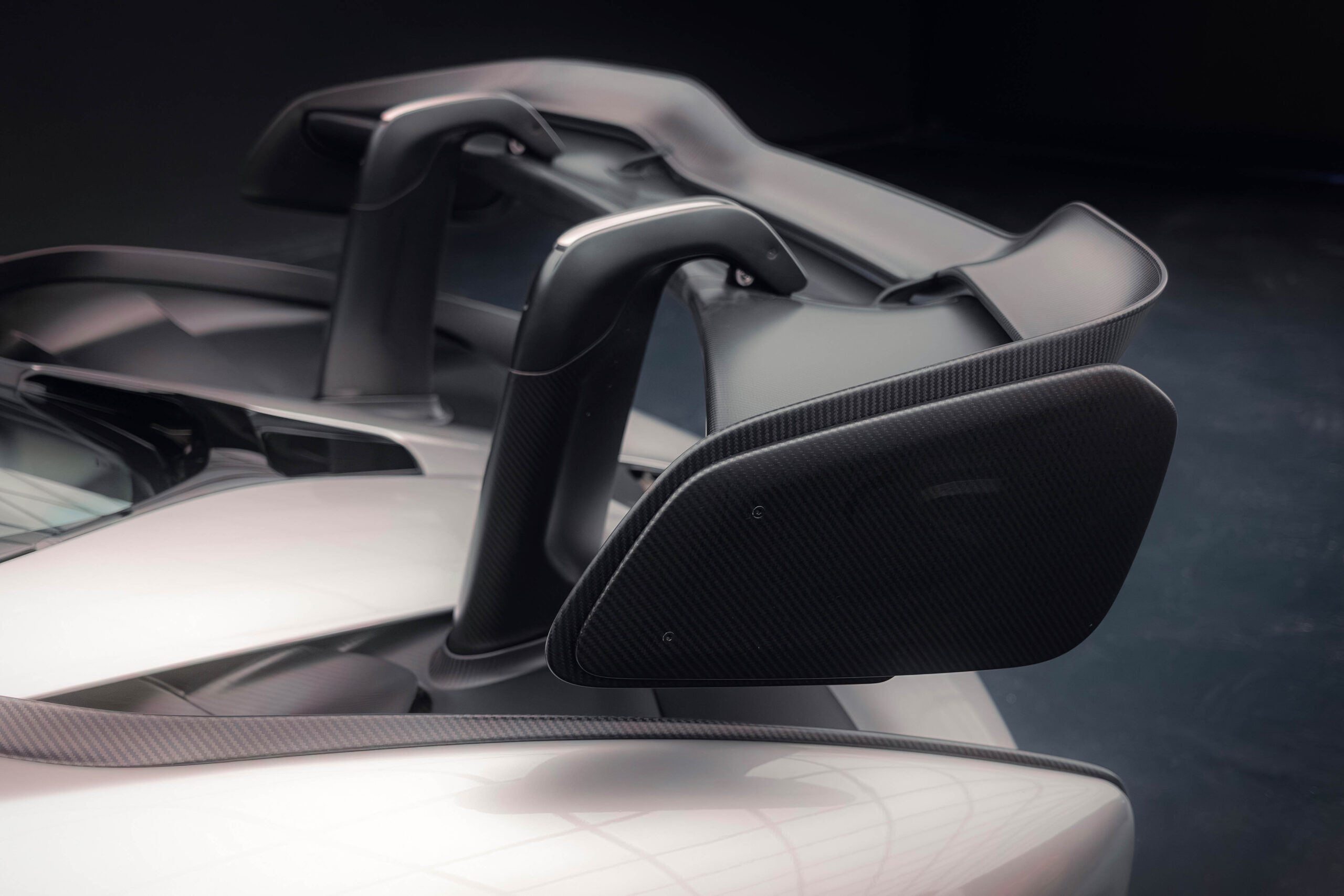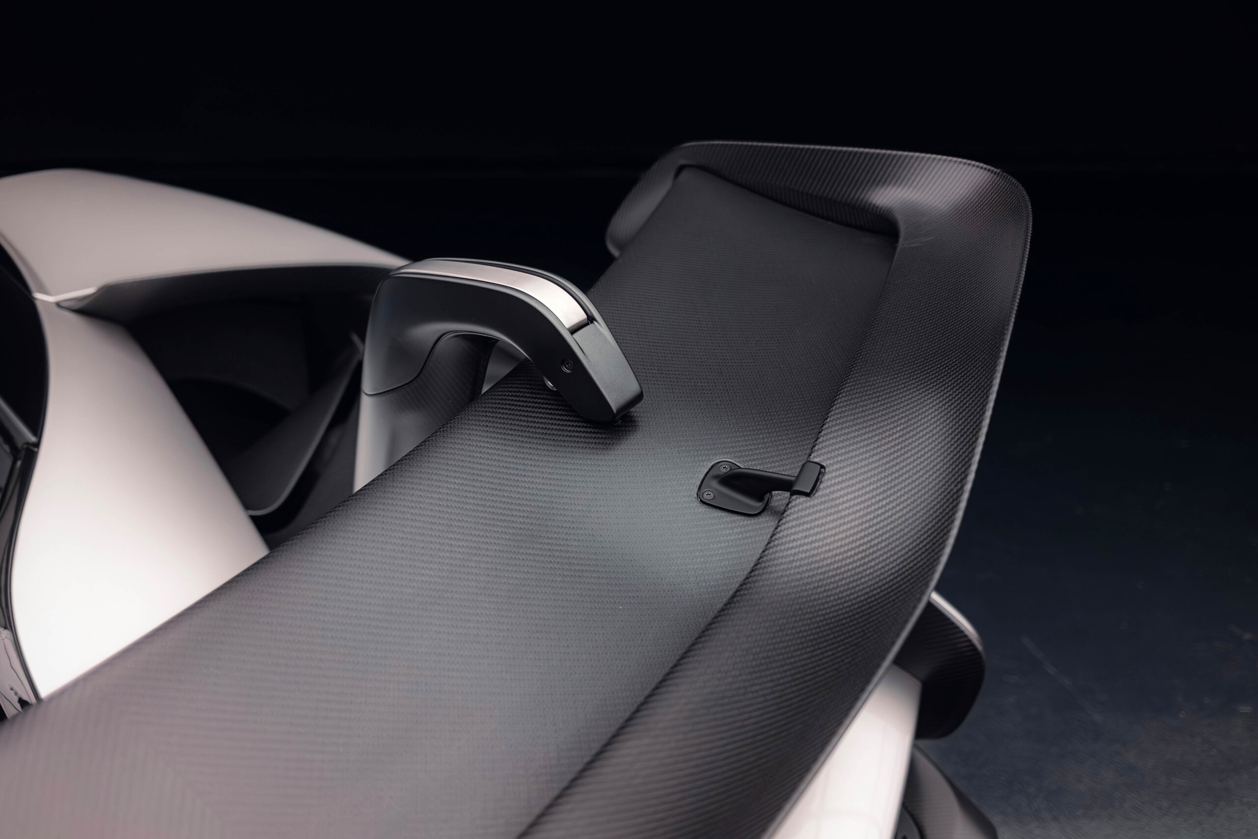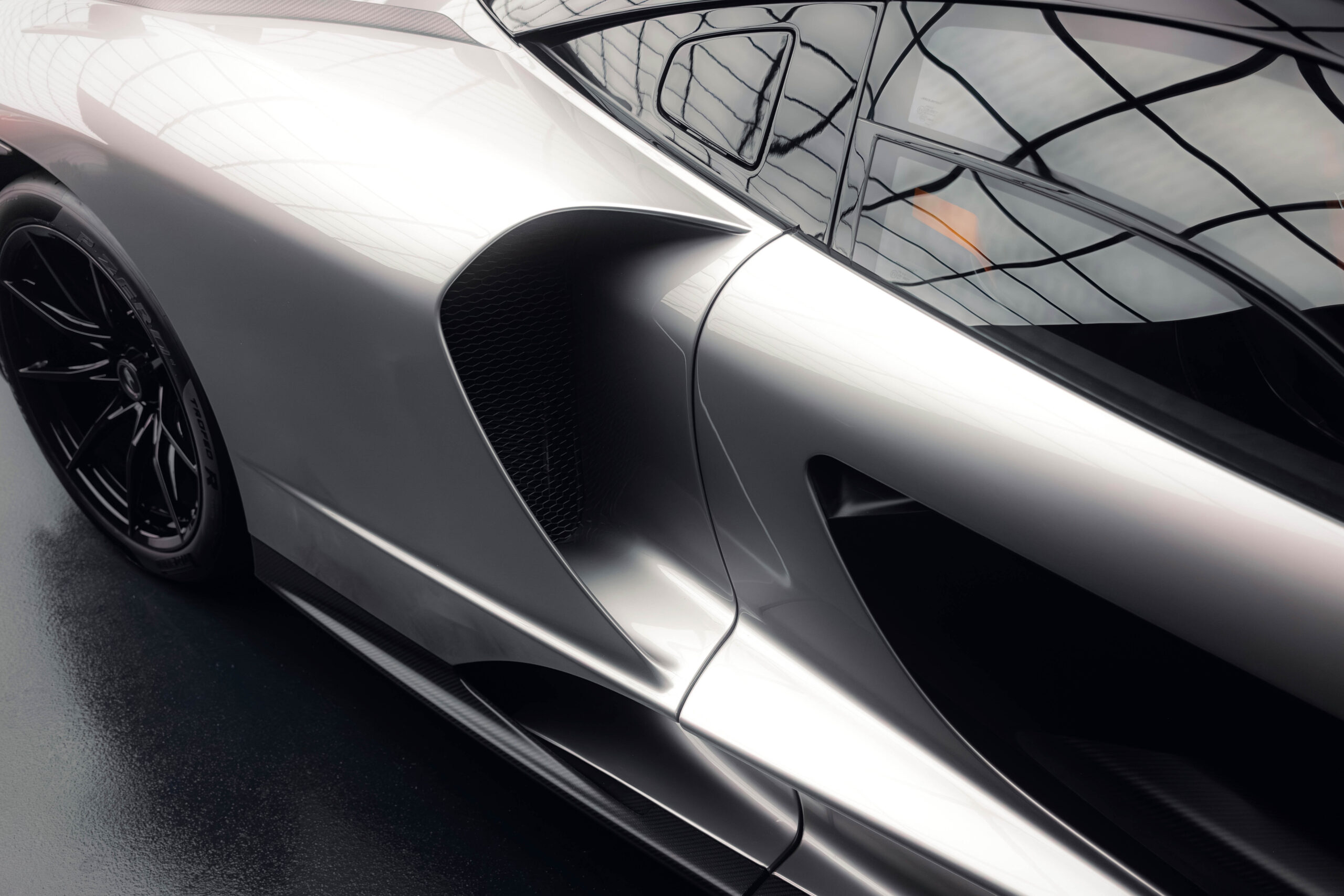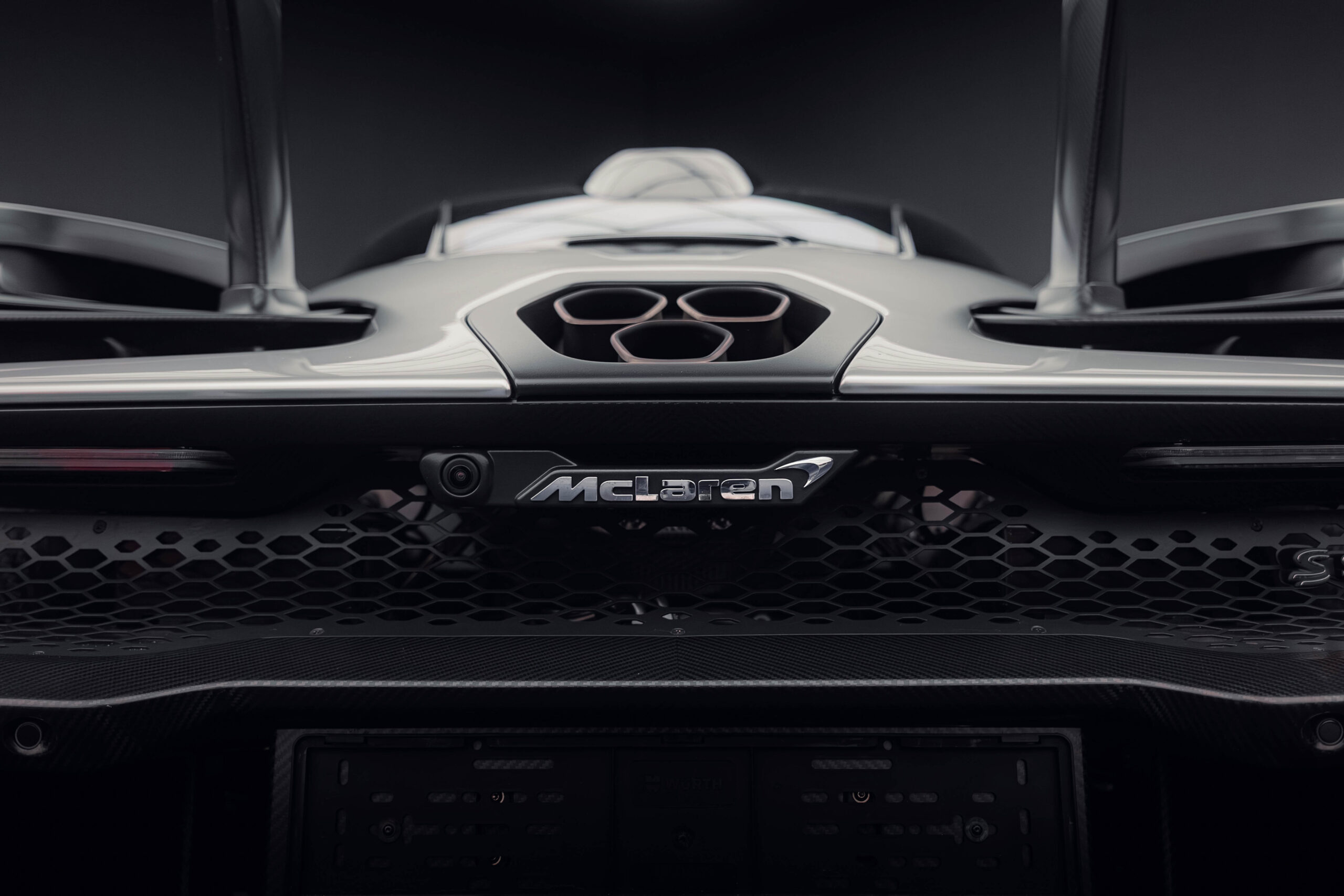 The Senna’s rear wing was arguably its most striking feature, heralding the car’s exceptional active aerodynamics. A substantial raised splitter and dynamic winglets at the front direct airflow under the body, while warm air from the radiators is funneled over the roof and channeled across that enormous active rear wing. Hydraulically controlled, this wing continuously adjusts to optimize downforce, function as an air brake, or minimize drag. At 250 km/h, the Senna generates up to 800 kilograms of downforce, a 40 percent improvement over the P1.