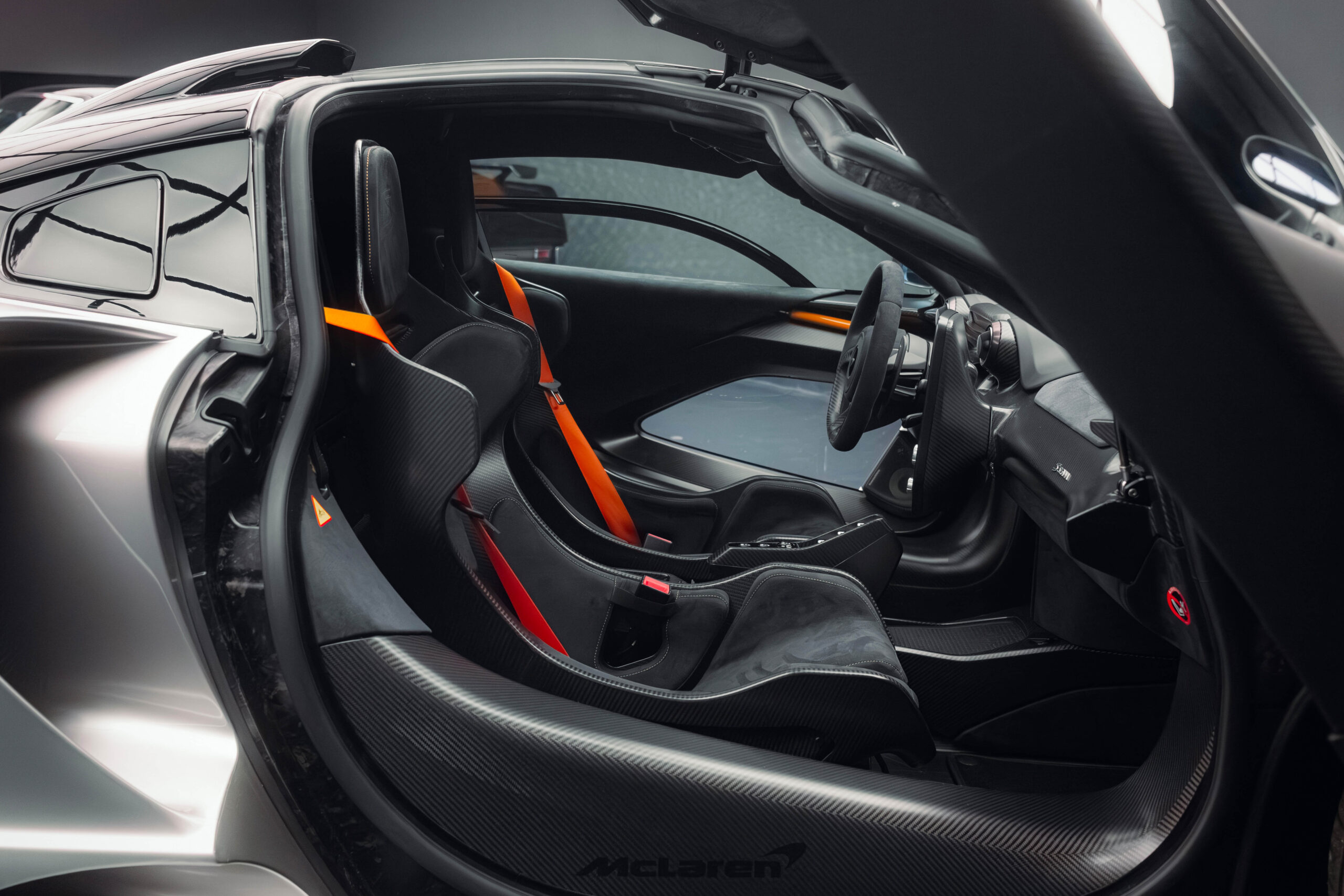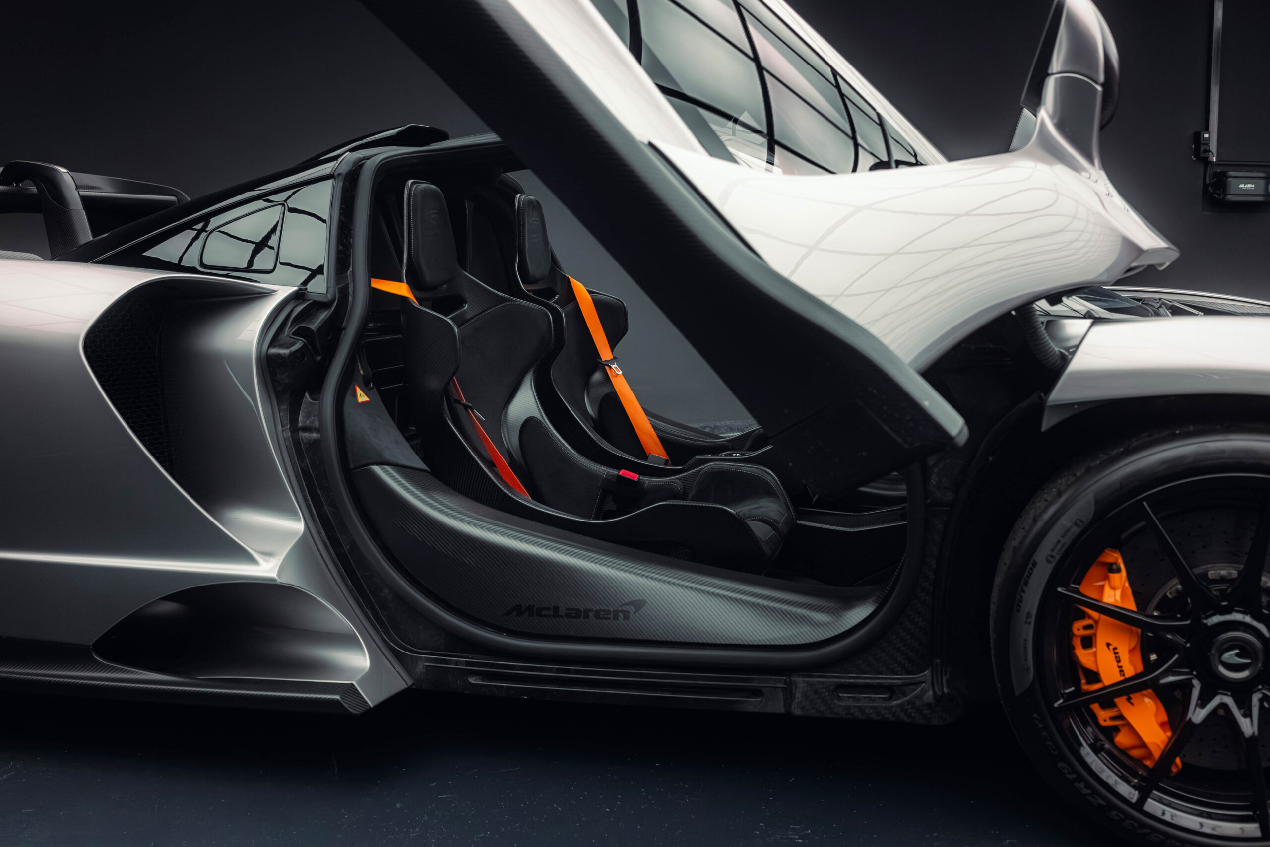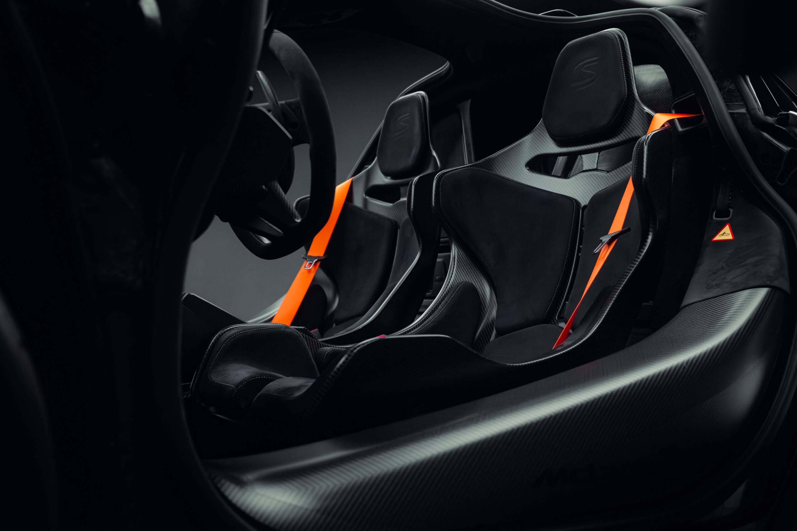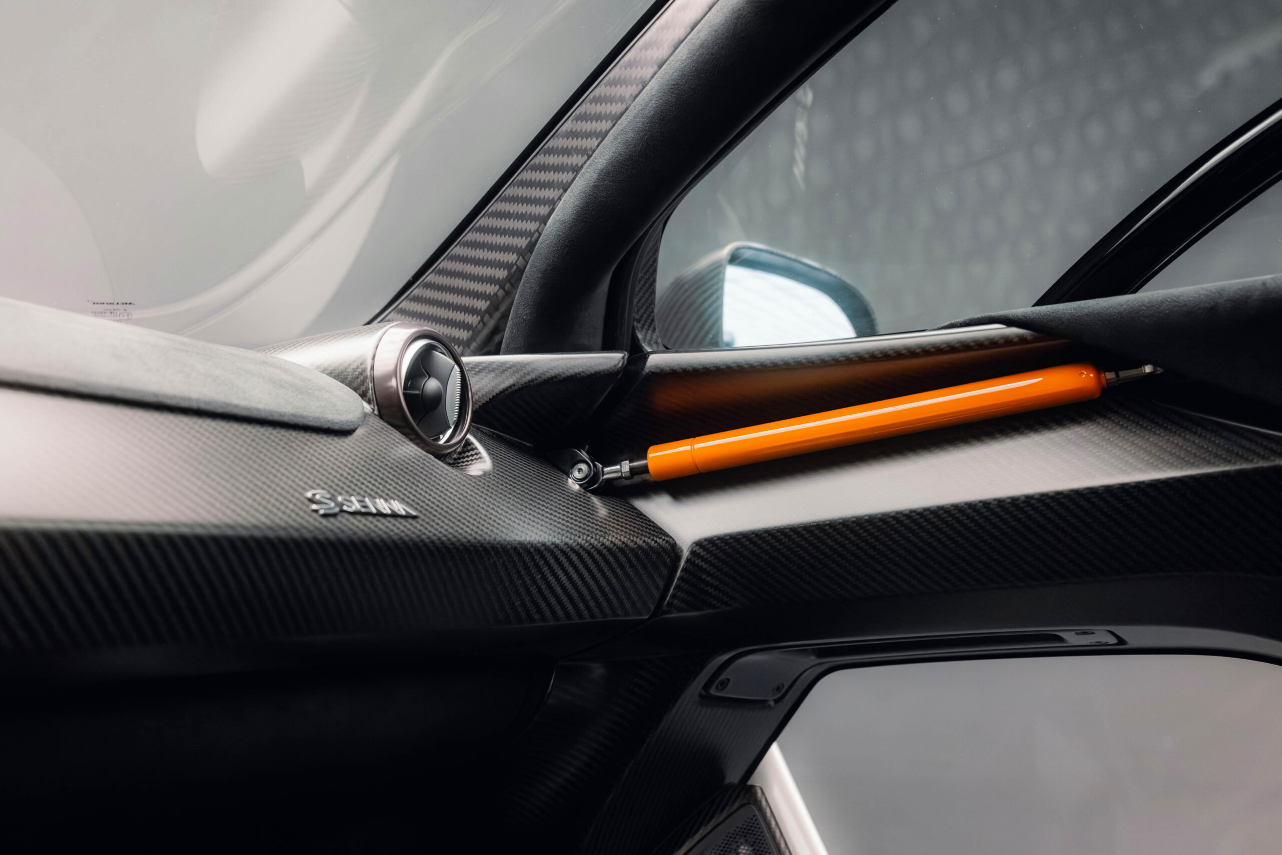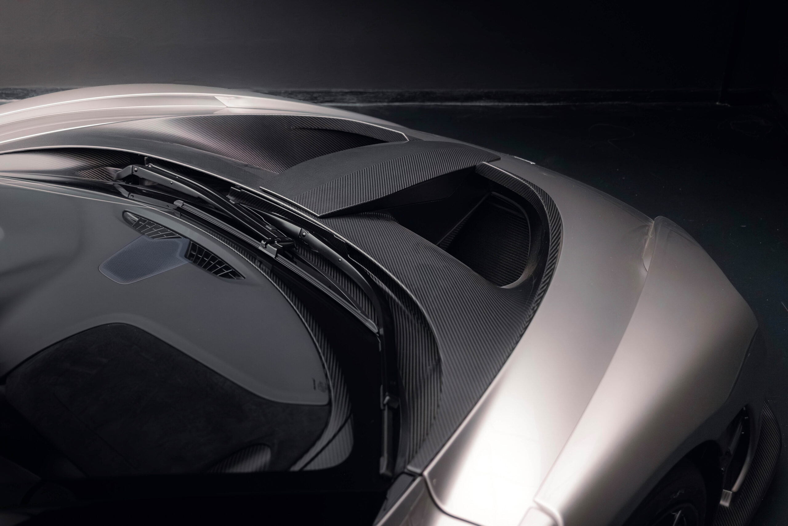The Senna’s rear wing was arguably its most striking feature, heralding the car’s exceptional active aerodynamics. A substantial raised splitter and dynamic winglets at the front direct airflow under the body, while warm air from the radiators is funneled over the roof and channeled across that enormous active rear wing. Hydraulically controlled, this wing continuously adjusts to optimize downforce, function as an air brake, or minimize drag. At 250 km/h, the Senna generates up to 800 kilograms of downforce, a 40 percent improvement over the P1.