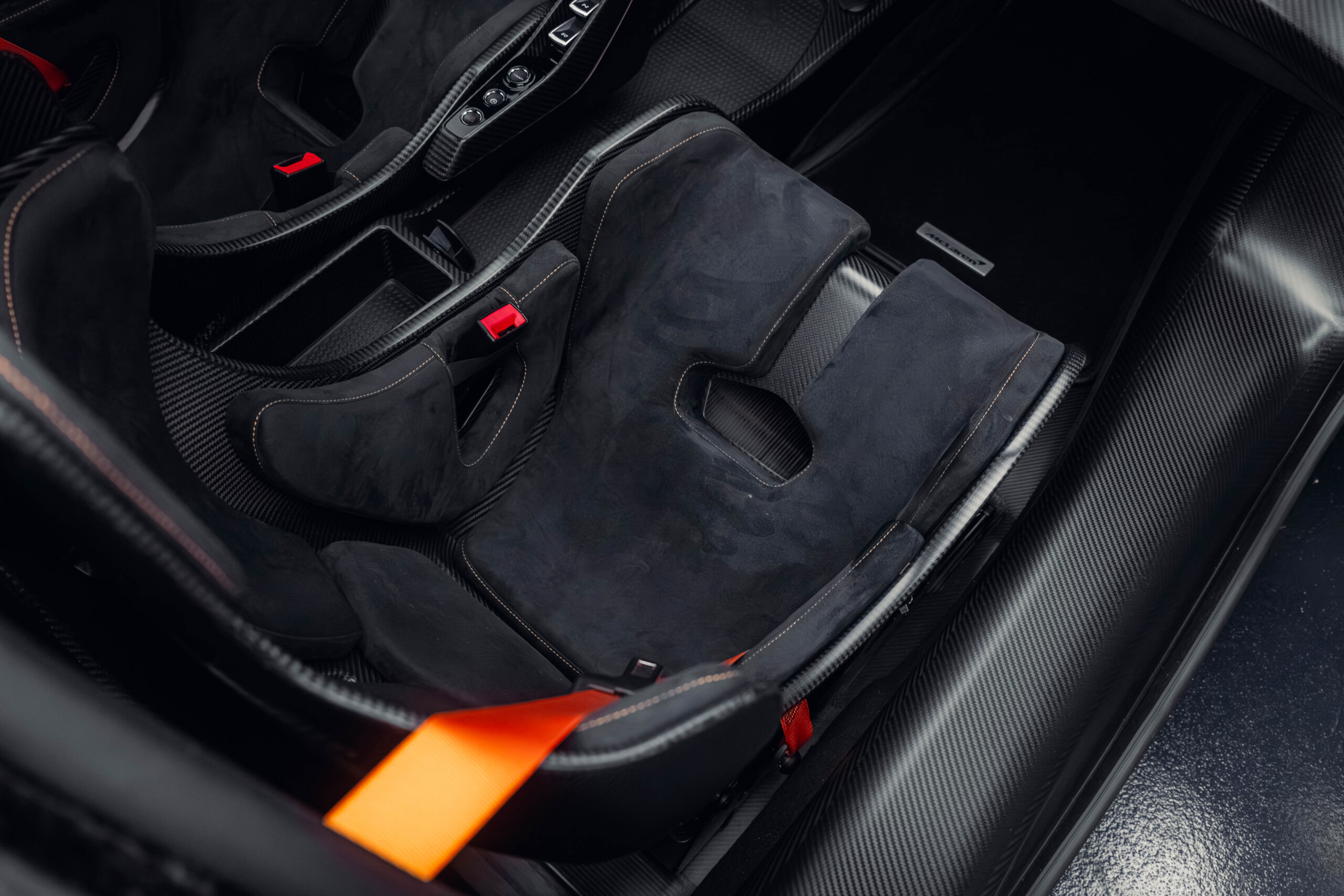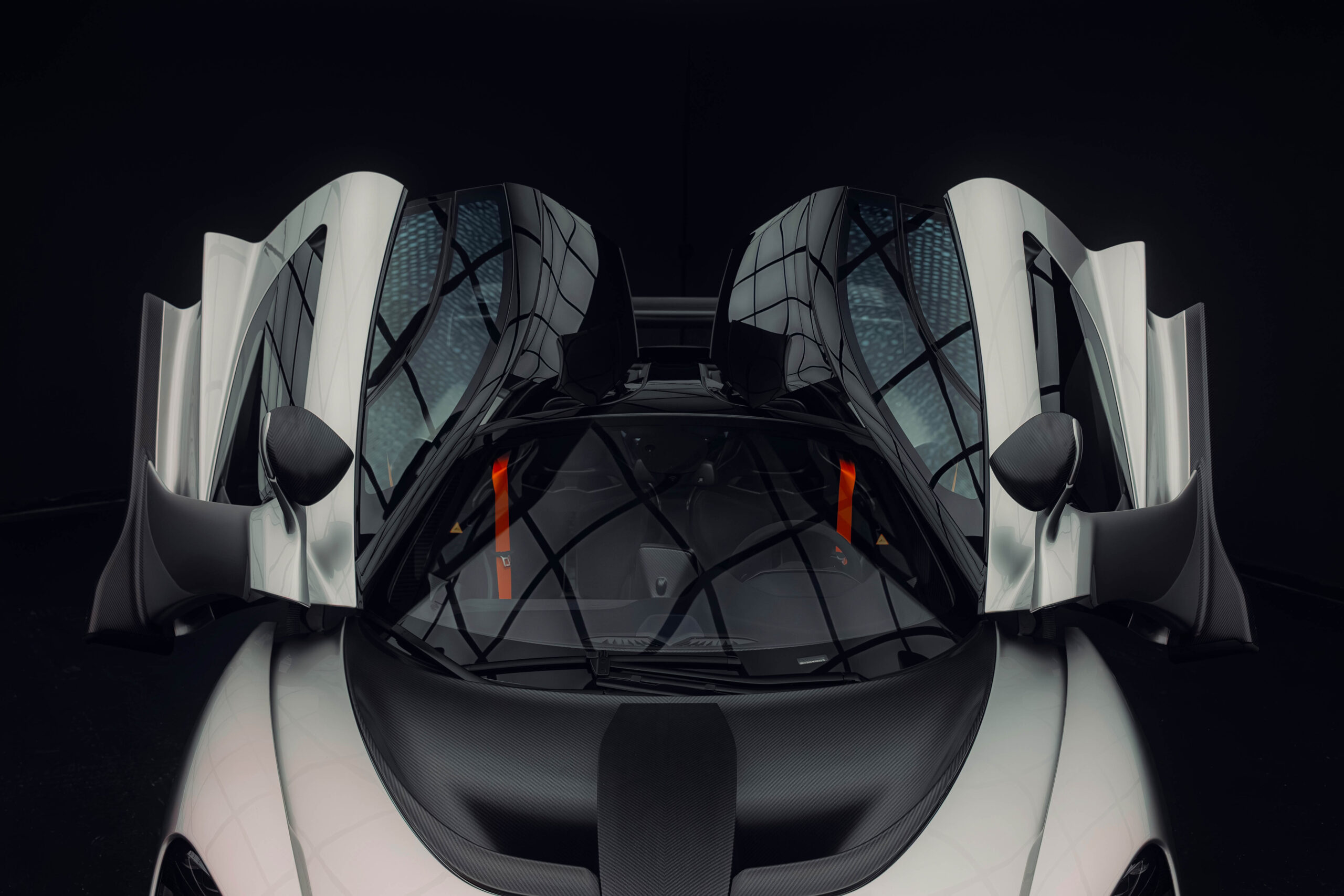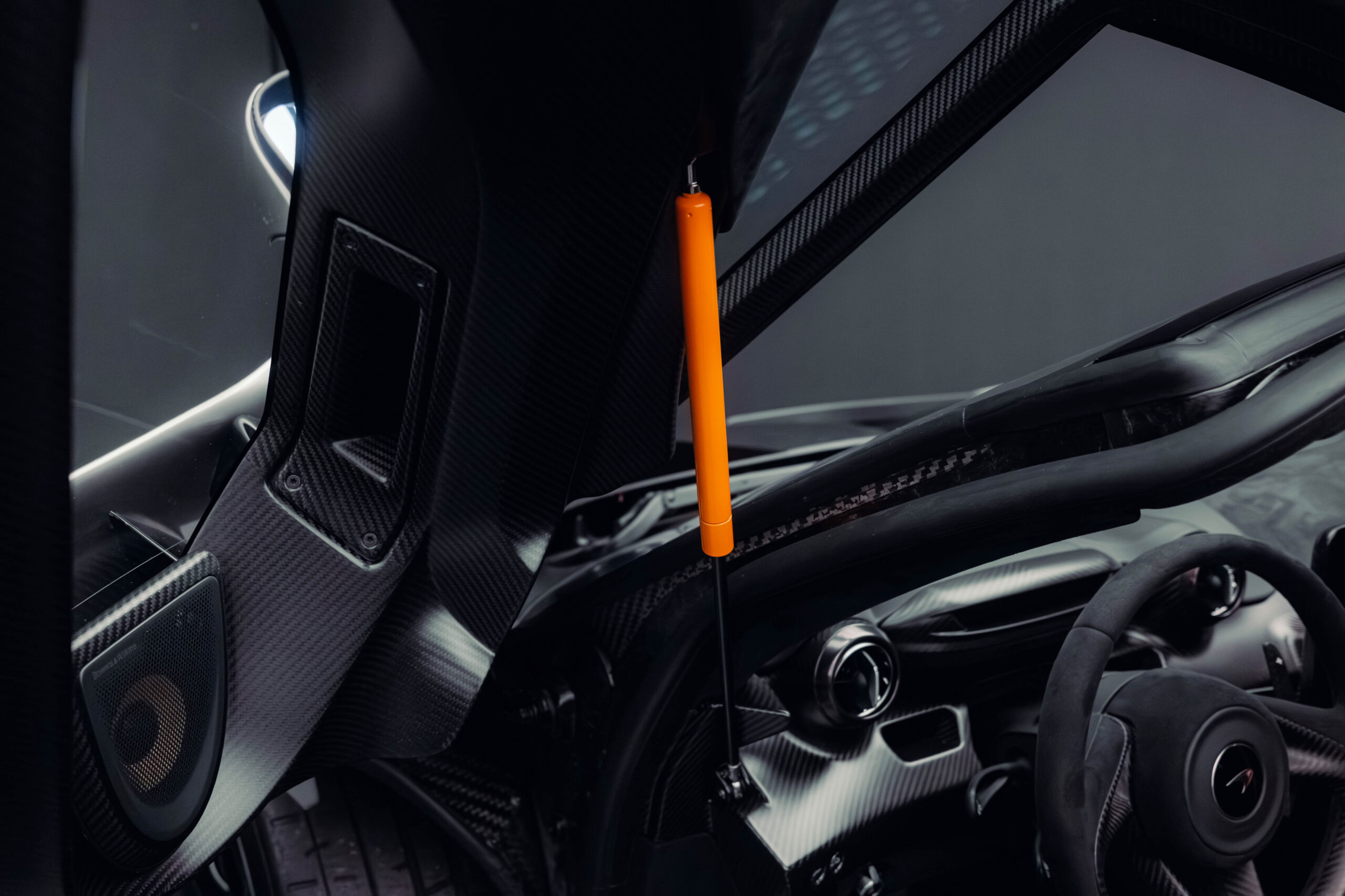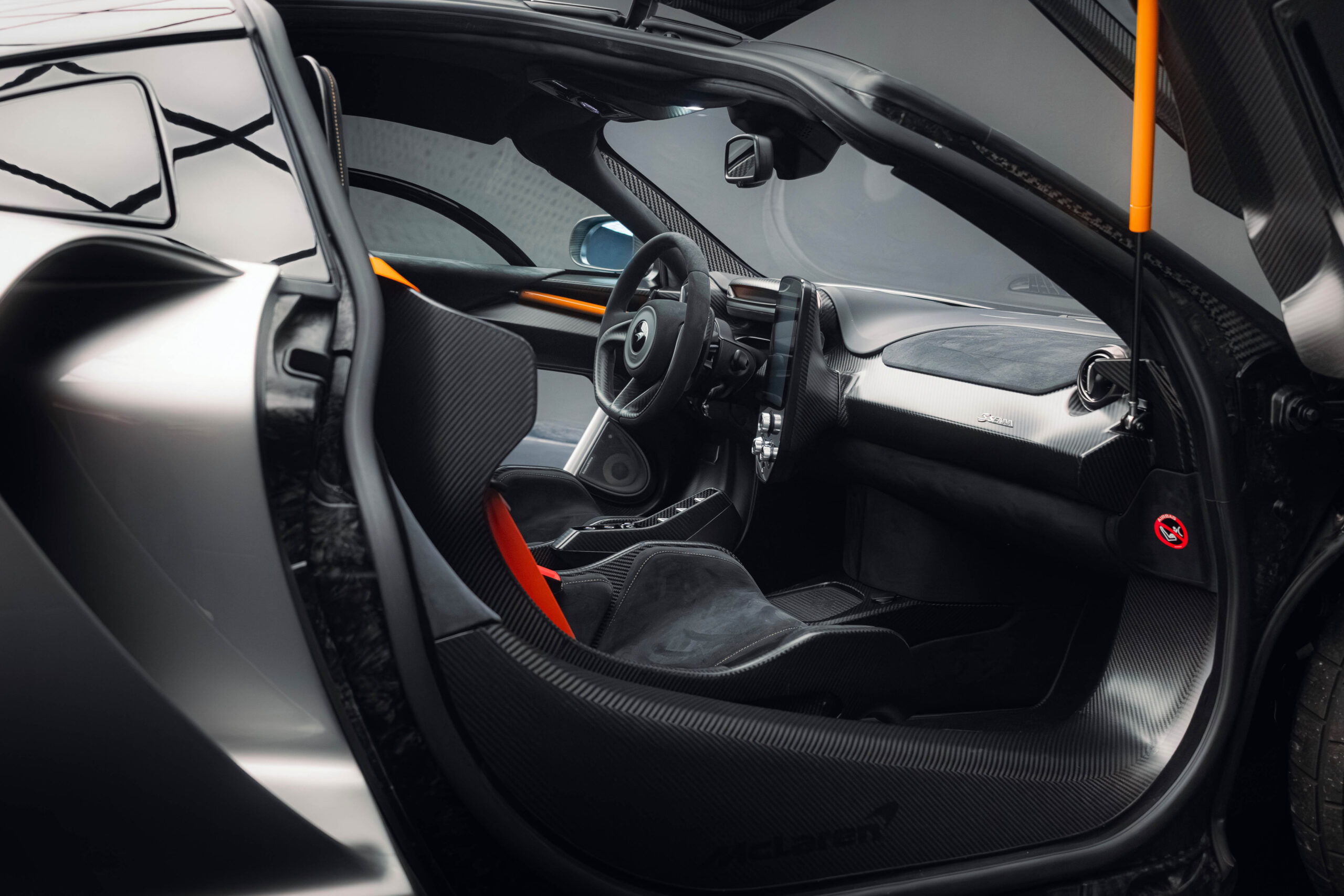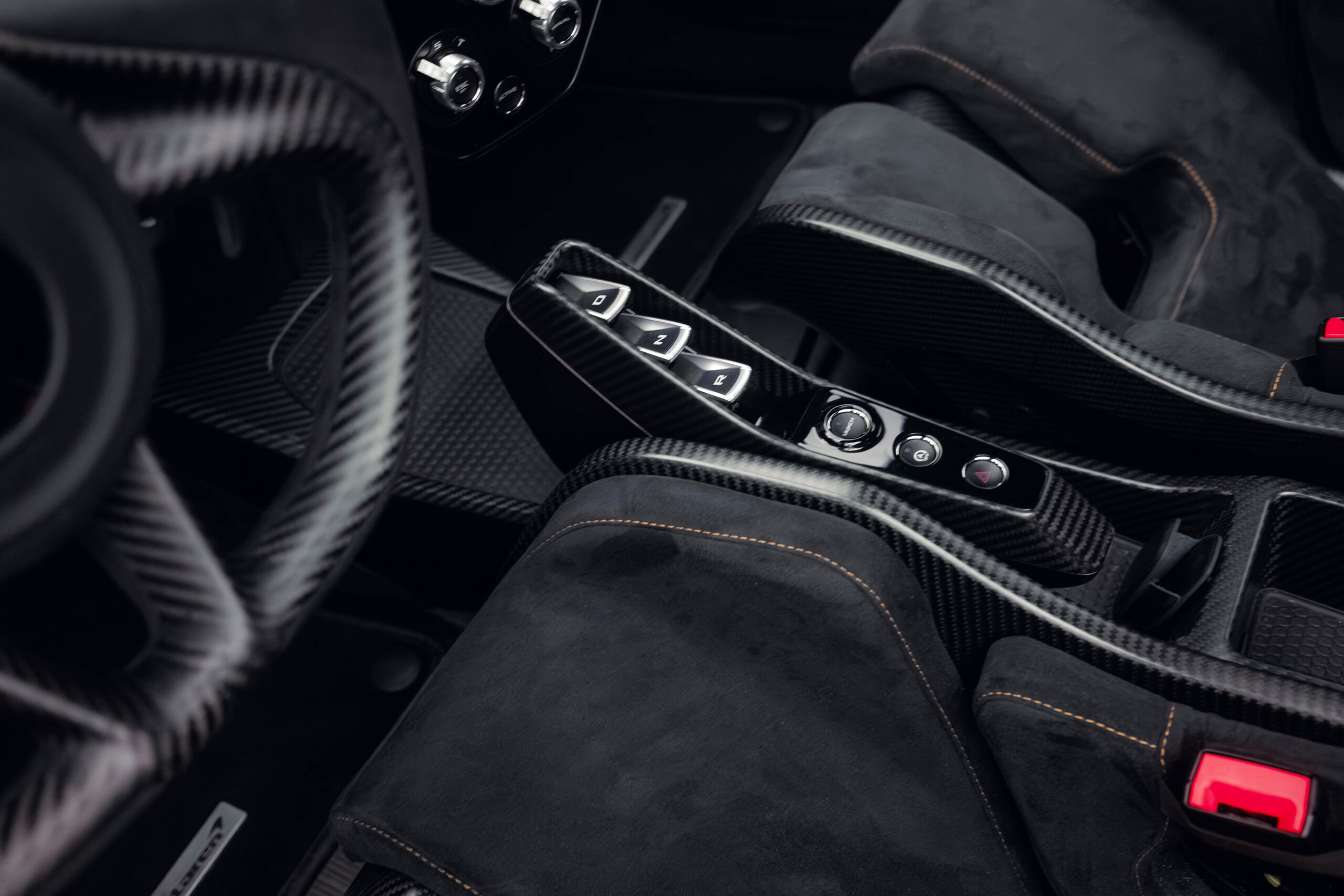 The Senna’s rear wing was arguably its most striking feature, heralding the car’s exceptional active aerodynamics. A substantial raised splitter and dynamic winglets at the front direct airflow under the body, while warm air from the radiators is funneled over the roof and channeled across that enormous active rear wing. Hydraulically controlled, this wing continuously adjusts to optimize downforce, function as an air brake, or minimize drag. At 250 km/h, the Senna generates up to 800 kilograms of downforce, a 40 percent improvement over the P1.