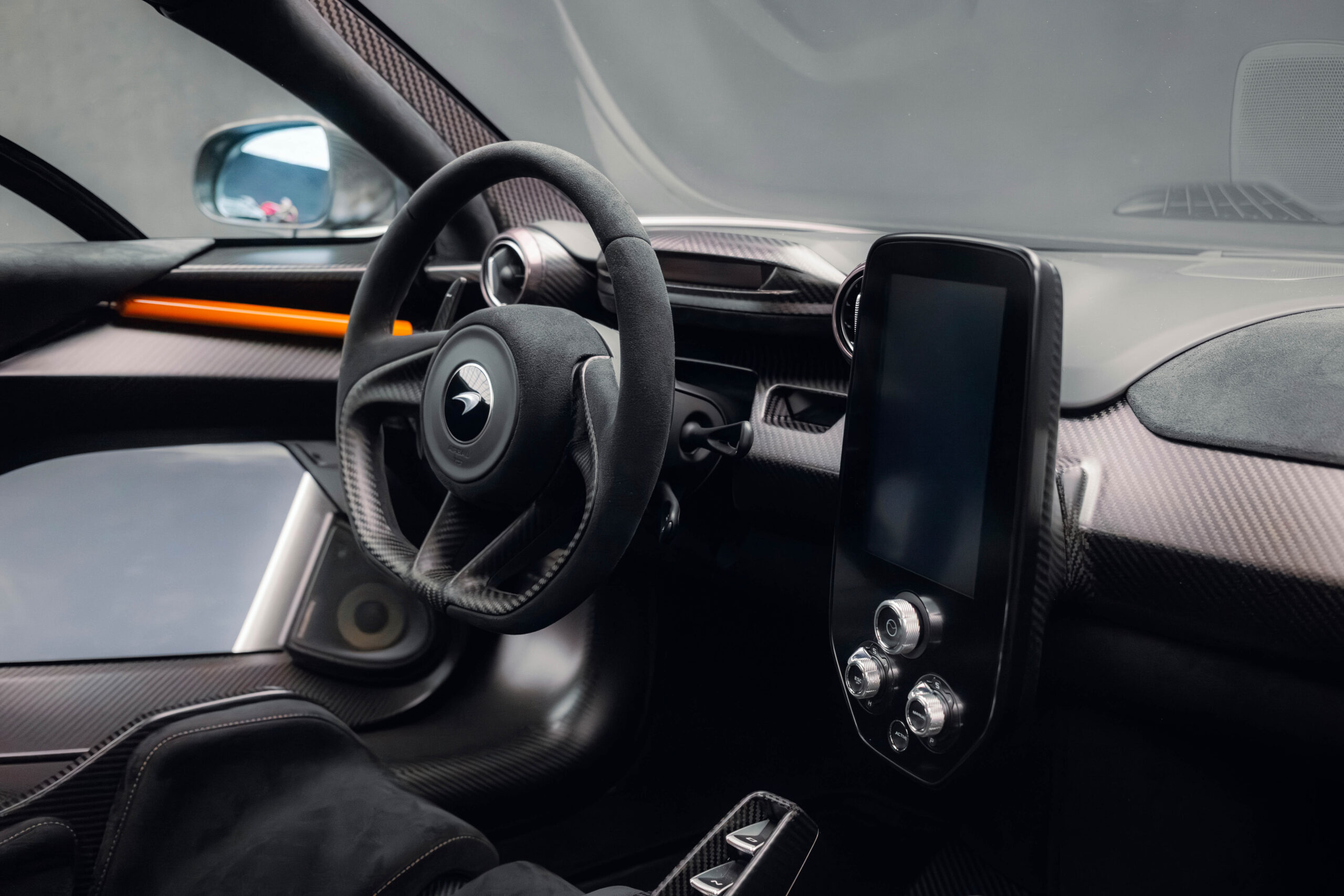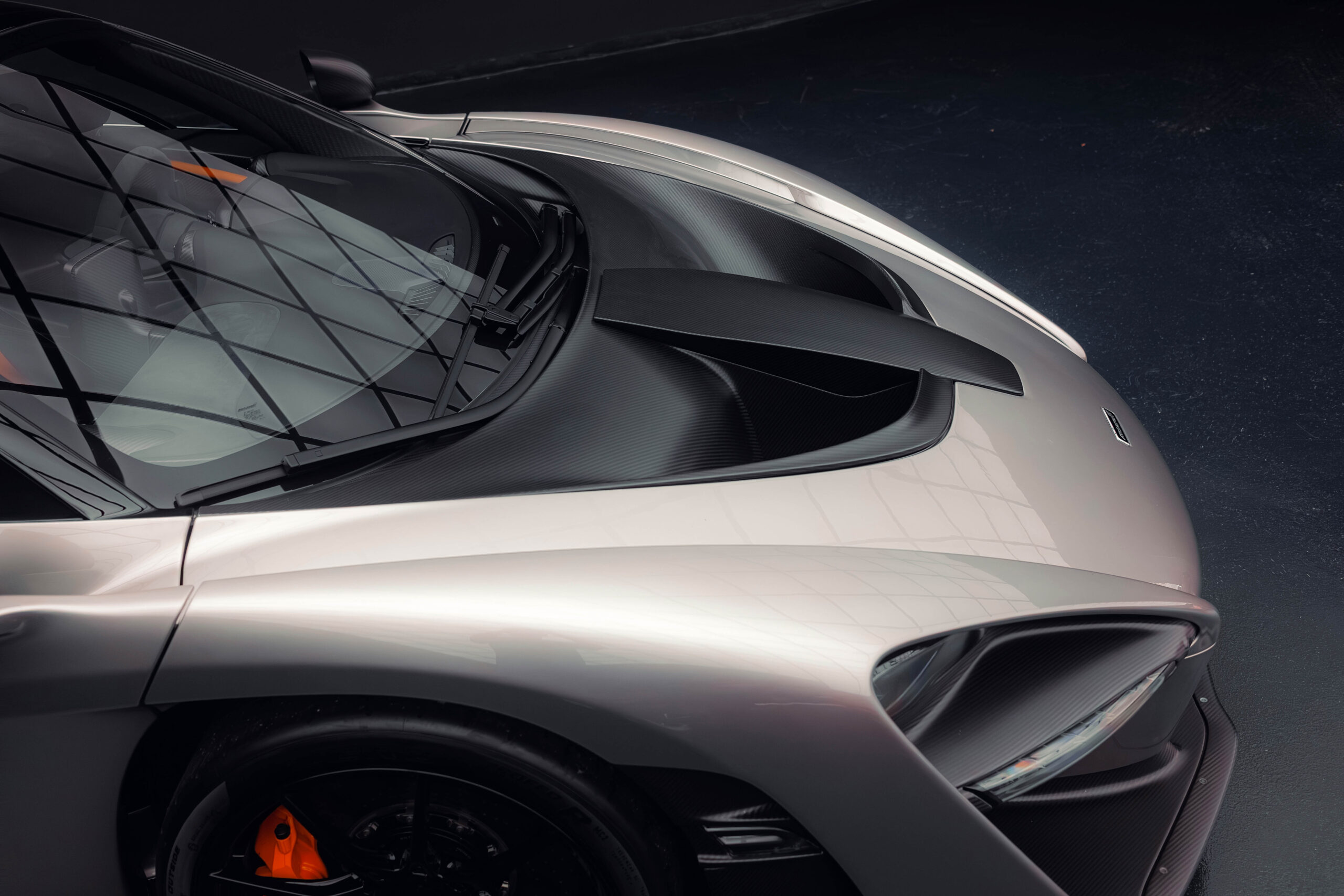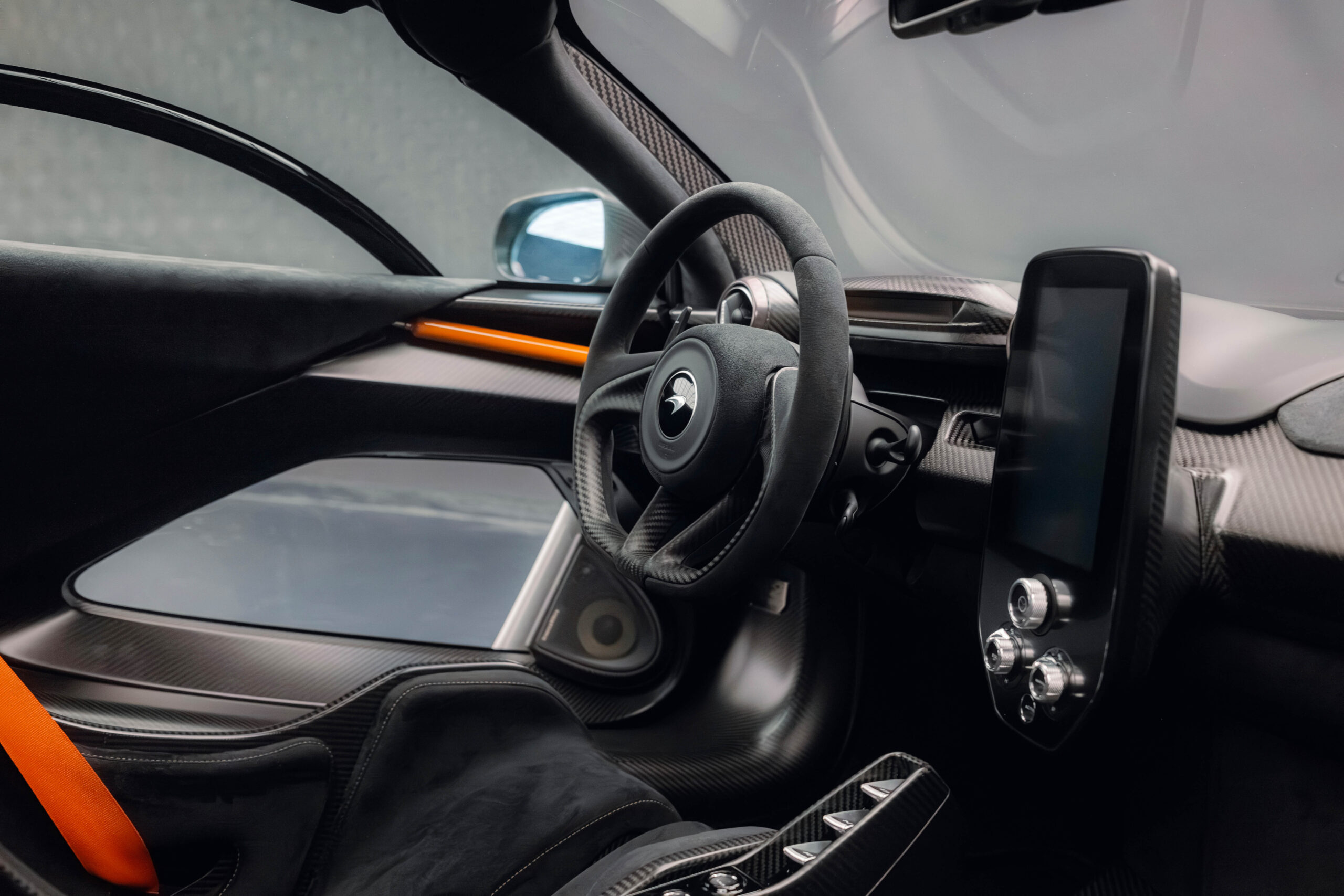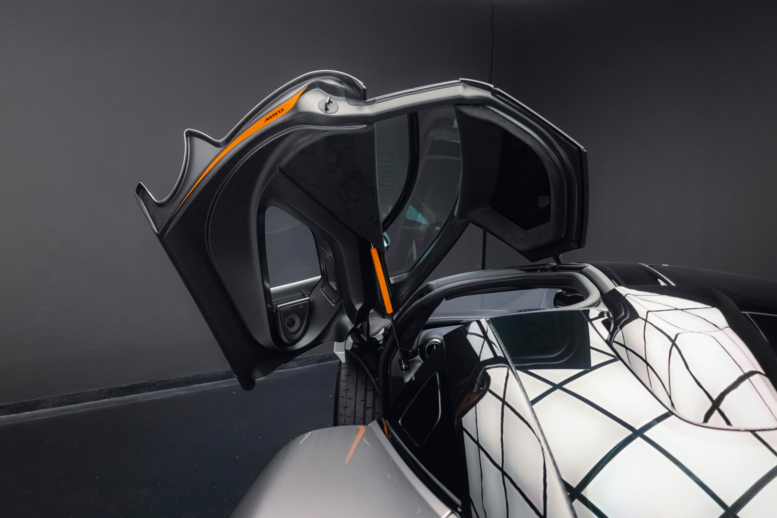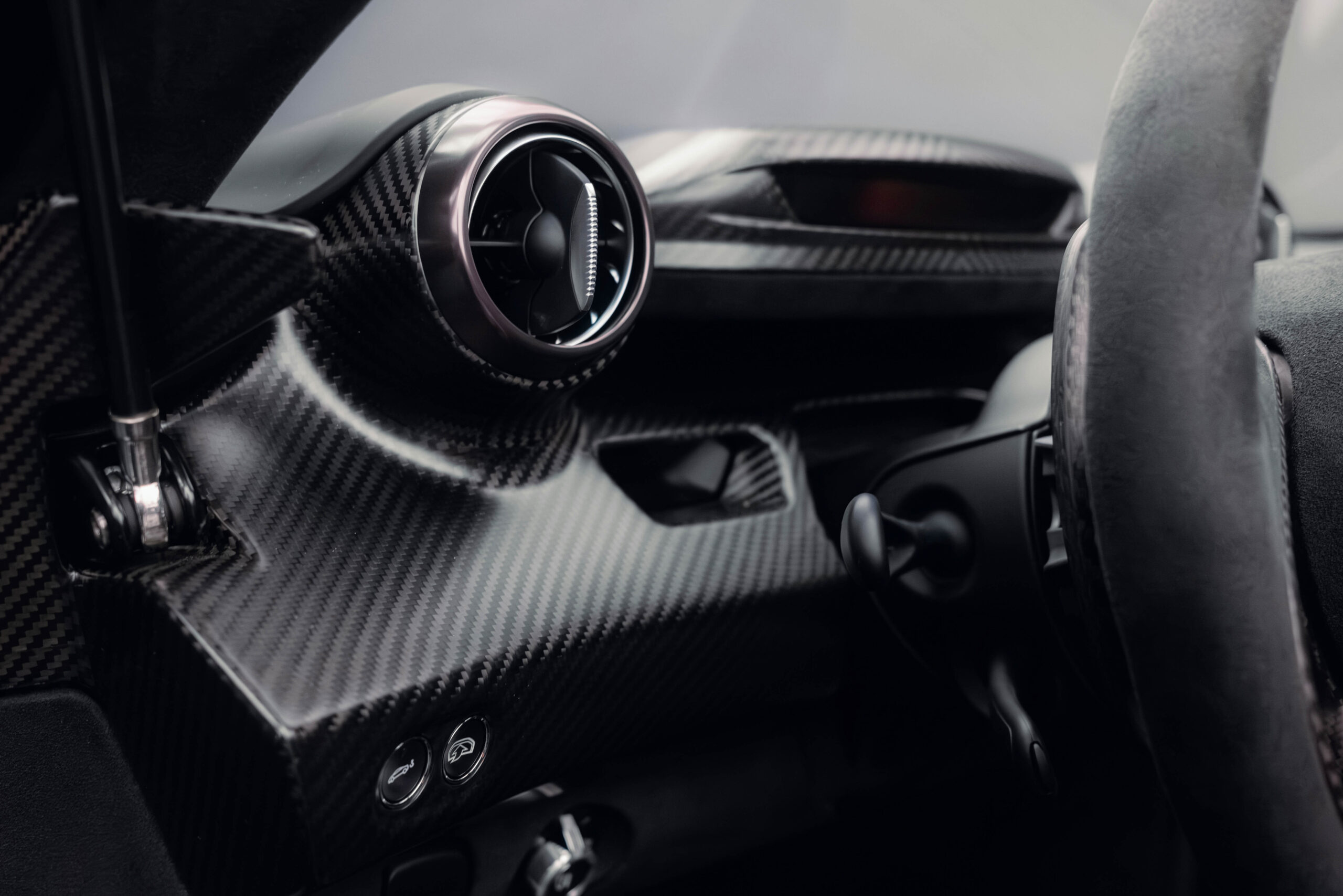 The Senna’s rear wing was arguably its most striking feature, heralding the car’s exceptional active aerodynamics. A substantial raised splitter and dynamic winglets at the front direct airflow under the body, while warm air from the radiators is funneled over the roof and channeled across that enormous active rear wing. Hydraulically controlled, this wing continuously adjusts to optimize downforce, function as an air brake, or minimize drag. At 250 km/h, the Senna generates up to 800 kilograms of downforce, a 40 percent improvement over the P1.
