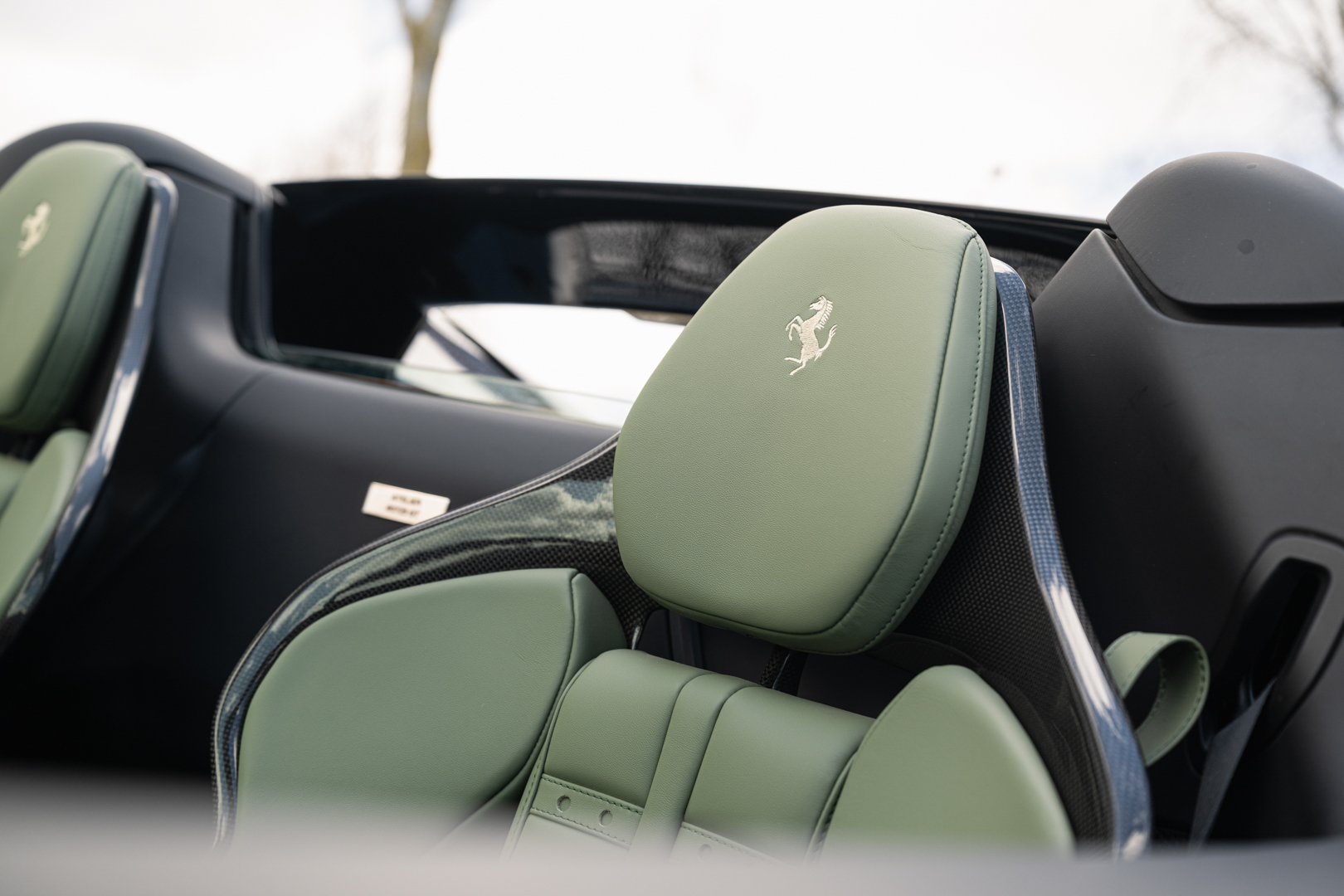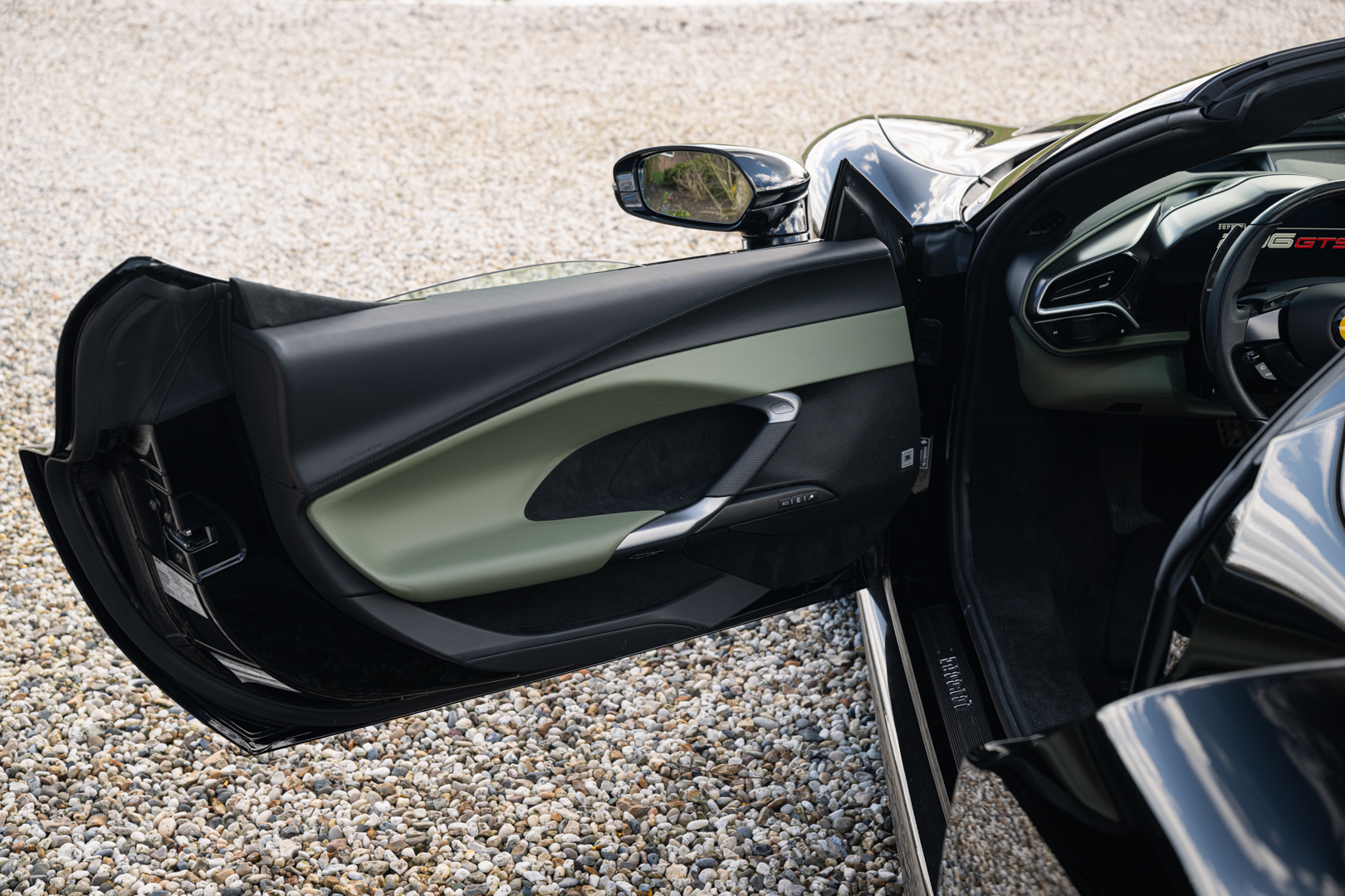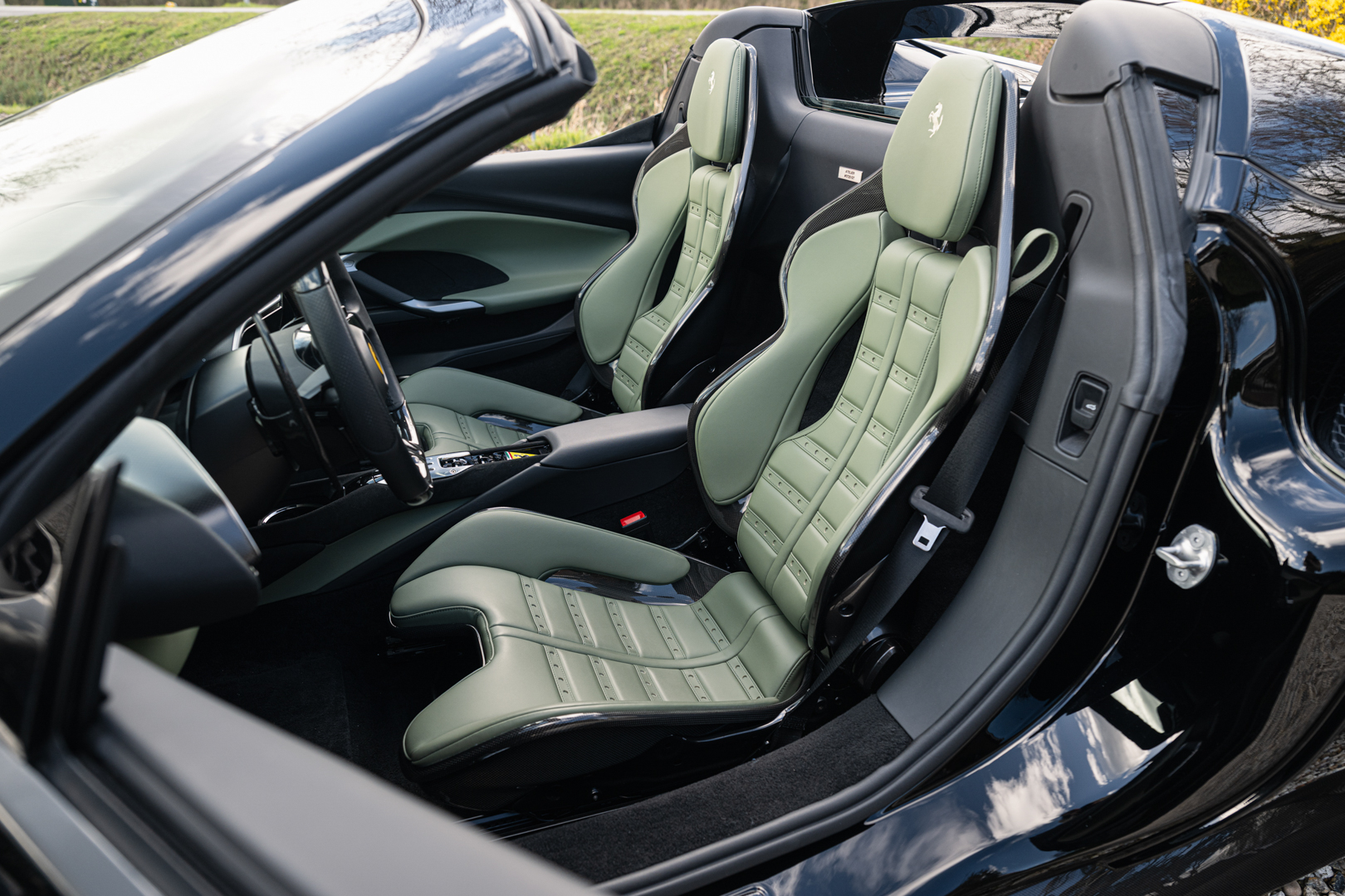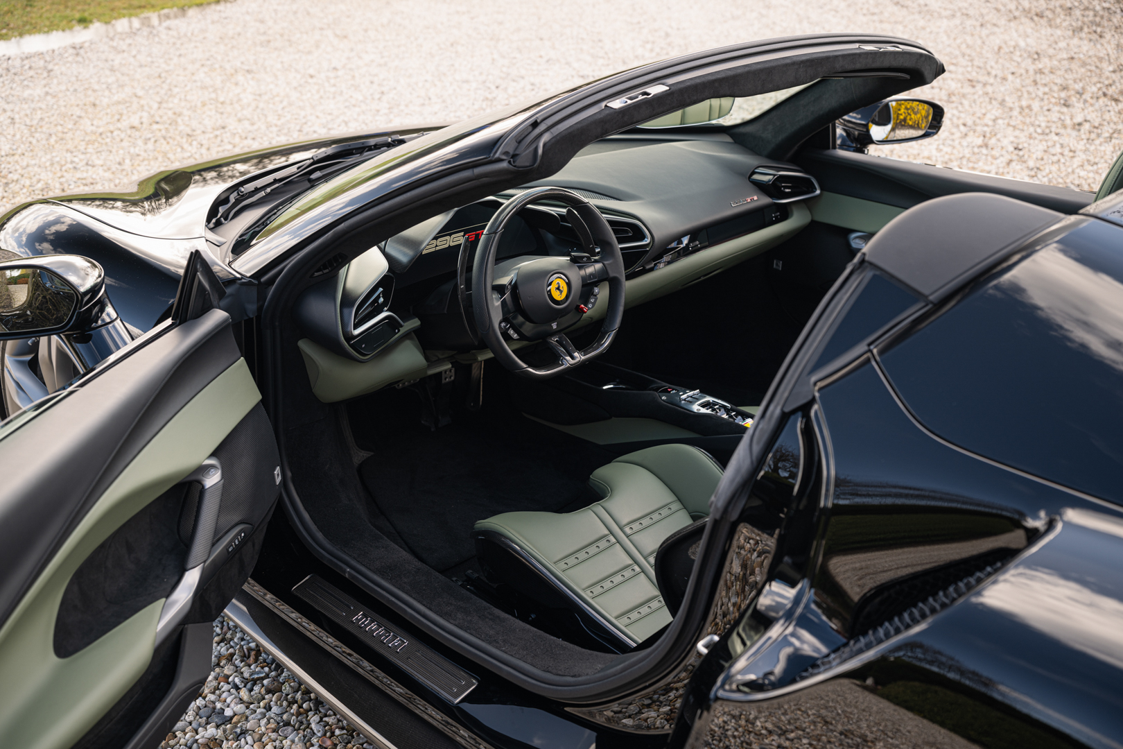 This Ferrari 296 GTS is an Atelier Car. The tasteful personalisation was inspired by the Ferrari 250 GT Speciale PF Coupé that was ordered new by HRH Prince Bernhard of The Netherlands (chassis number 0725 GT). This car was delivered in black with a green leather interior.
