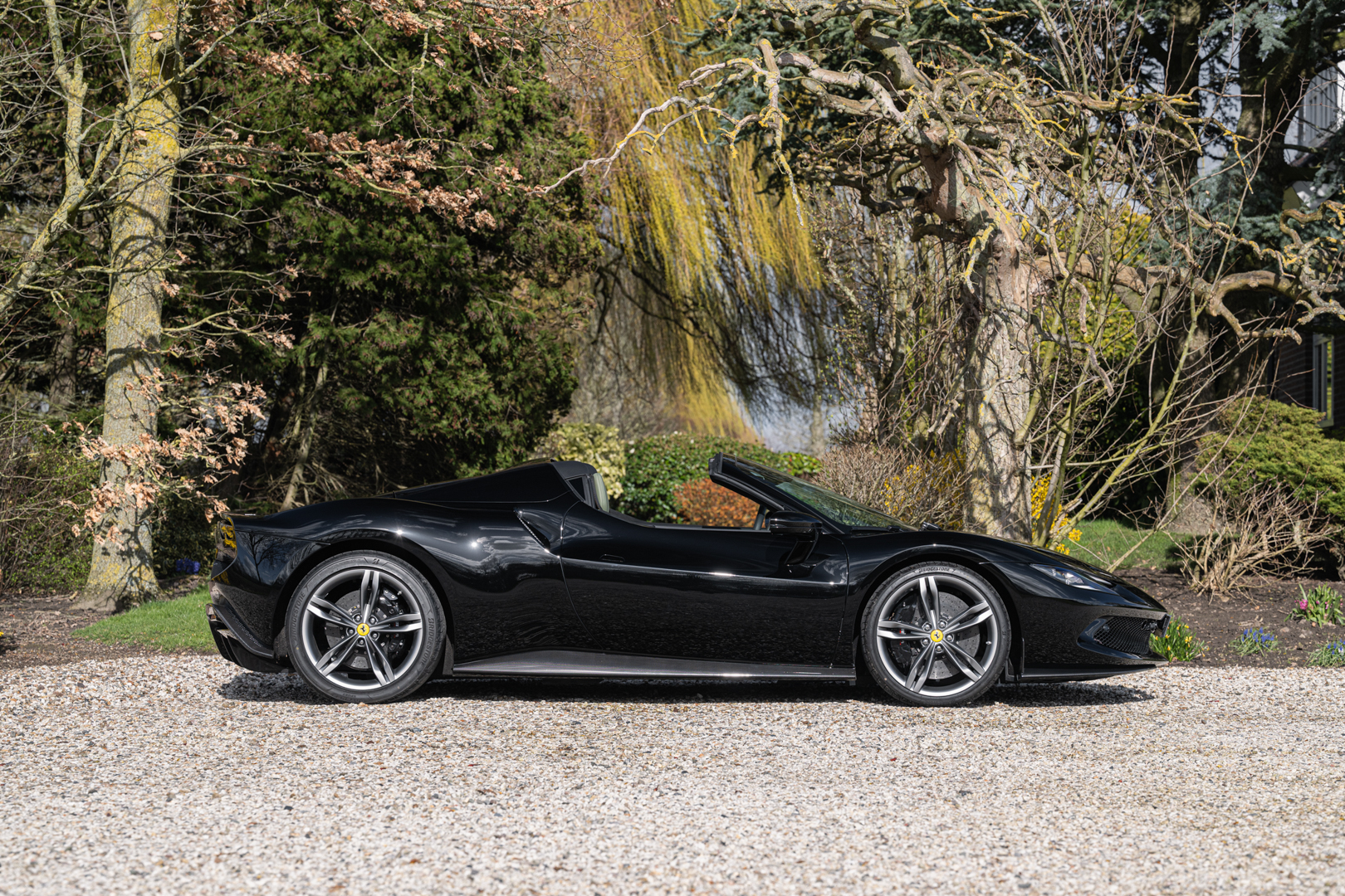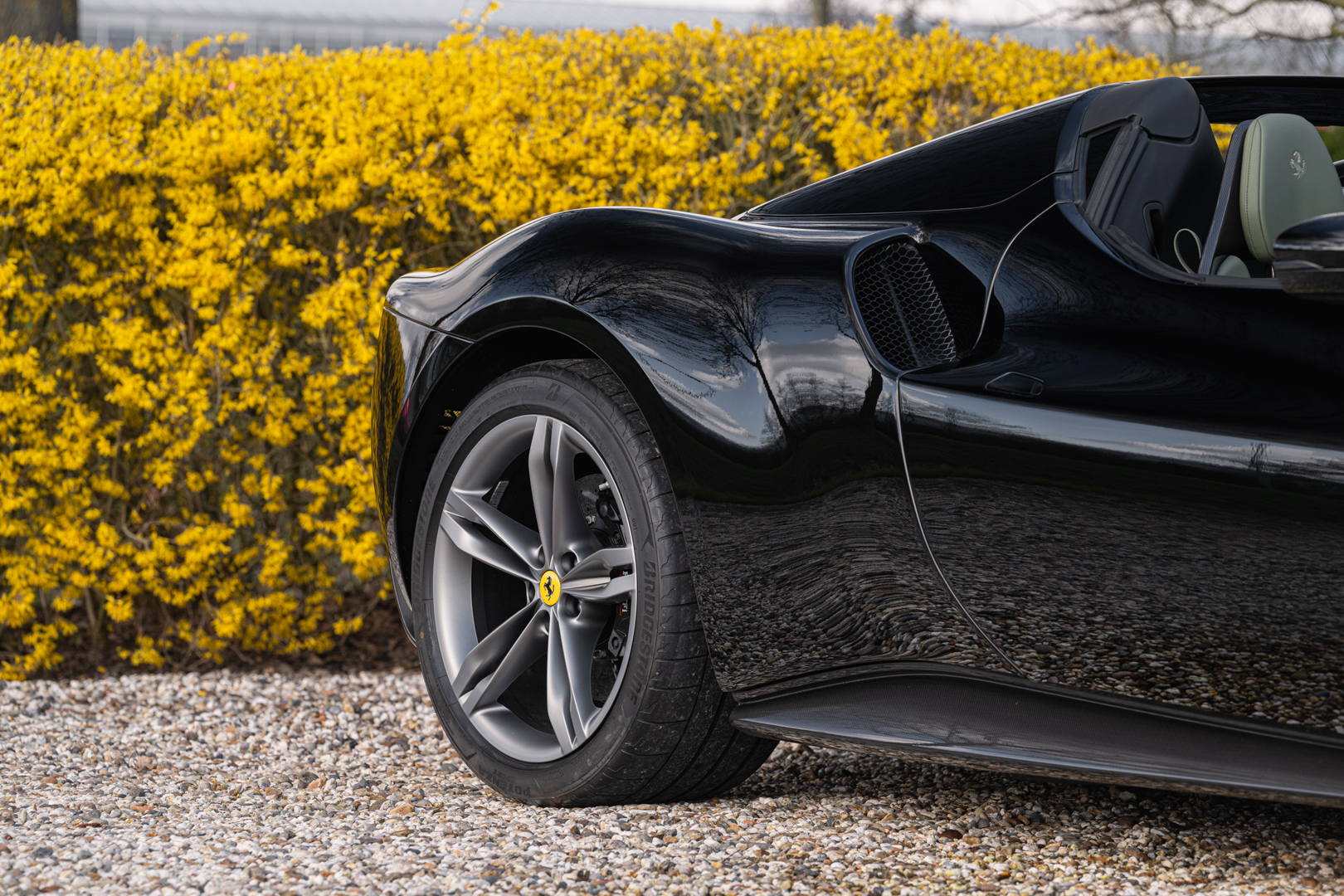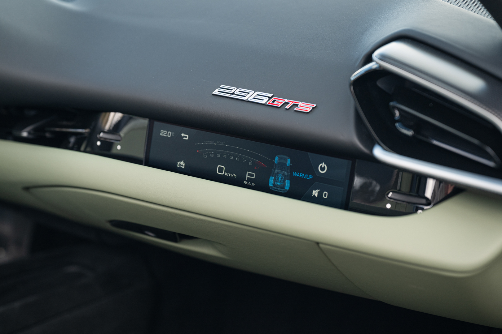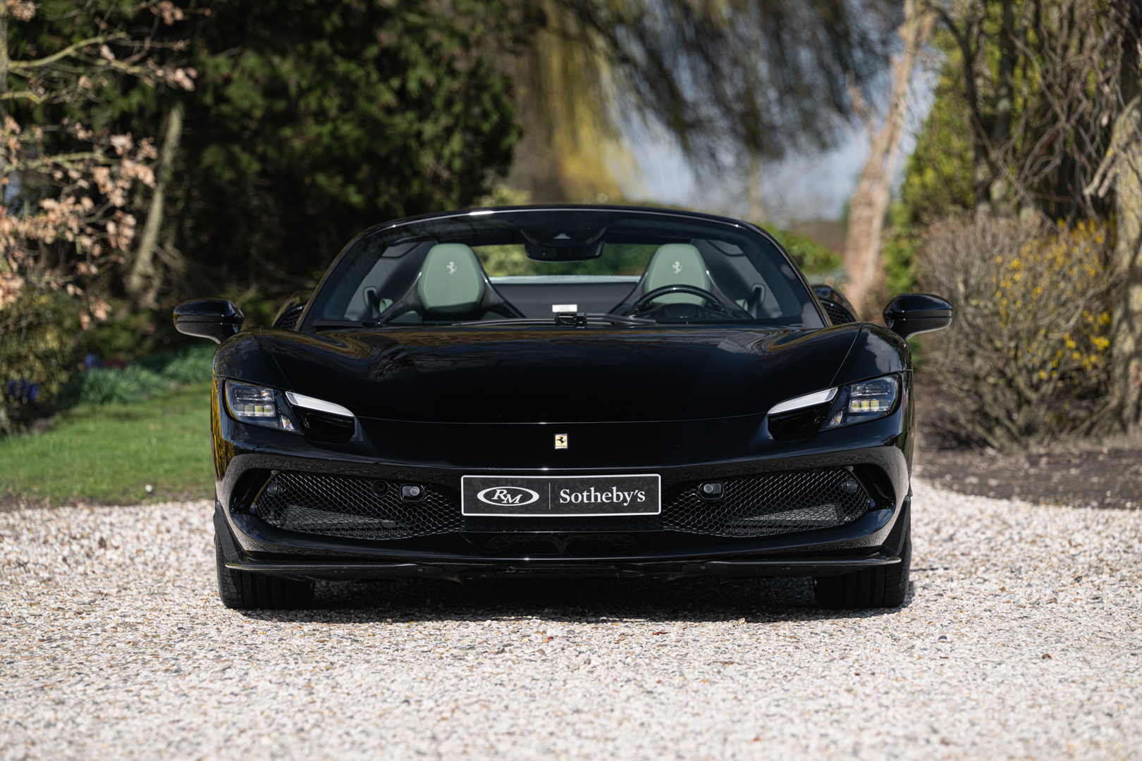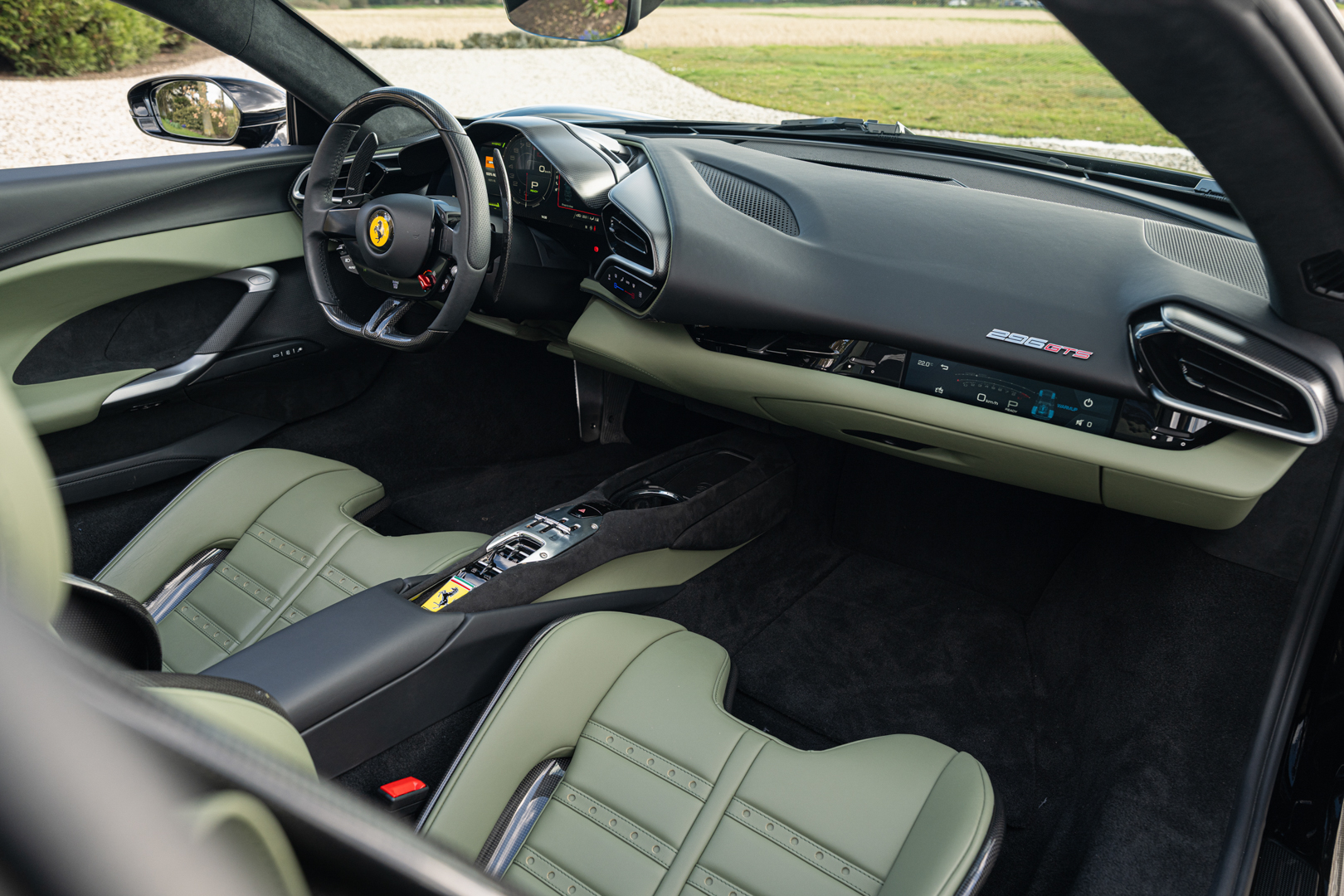 This Ferrari 296 GTS is an Atelier Car. The tasteful personalisation was inspired by the Ferrari 250 GT Speciale PF Coupé that was ordered new by HRH Prince Bernhard of The Netherlands (chassis number 0725 GT). This car was delivered in black with a green leather interior.