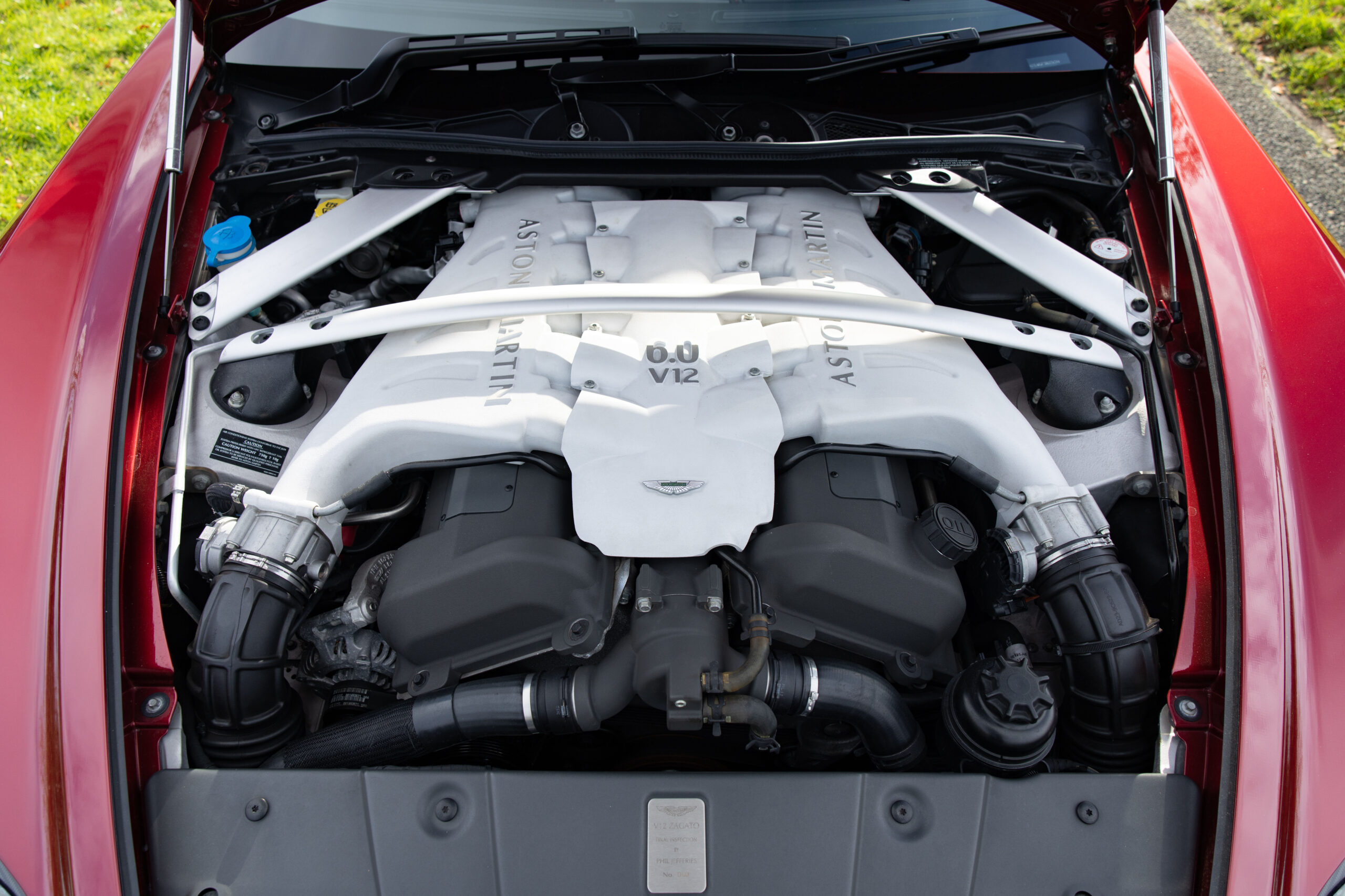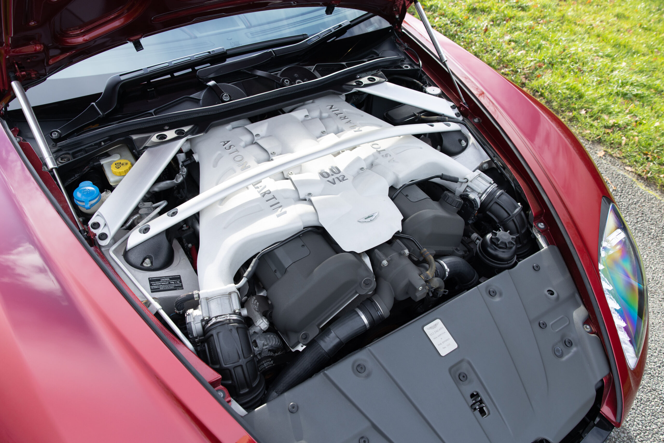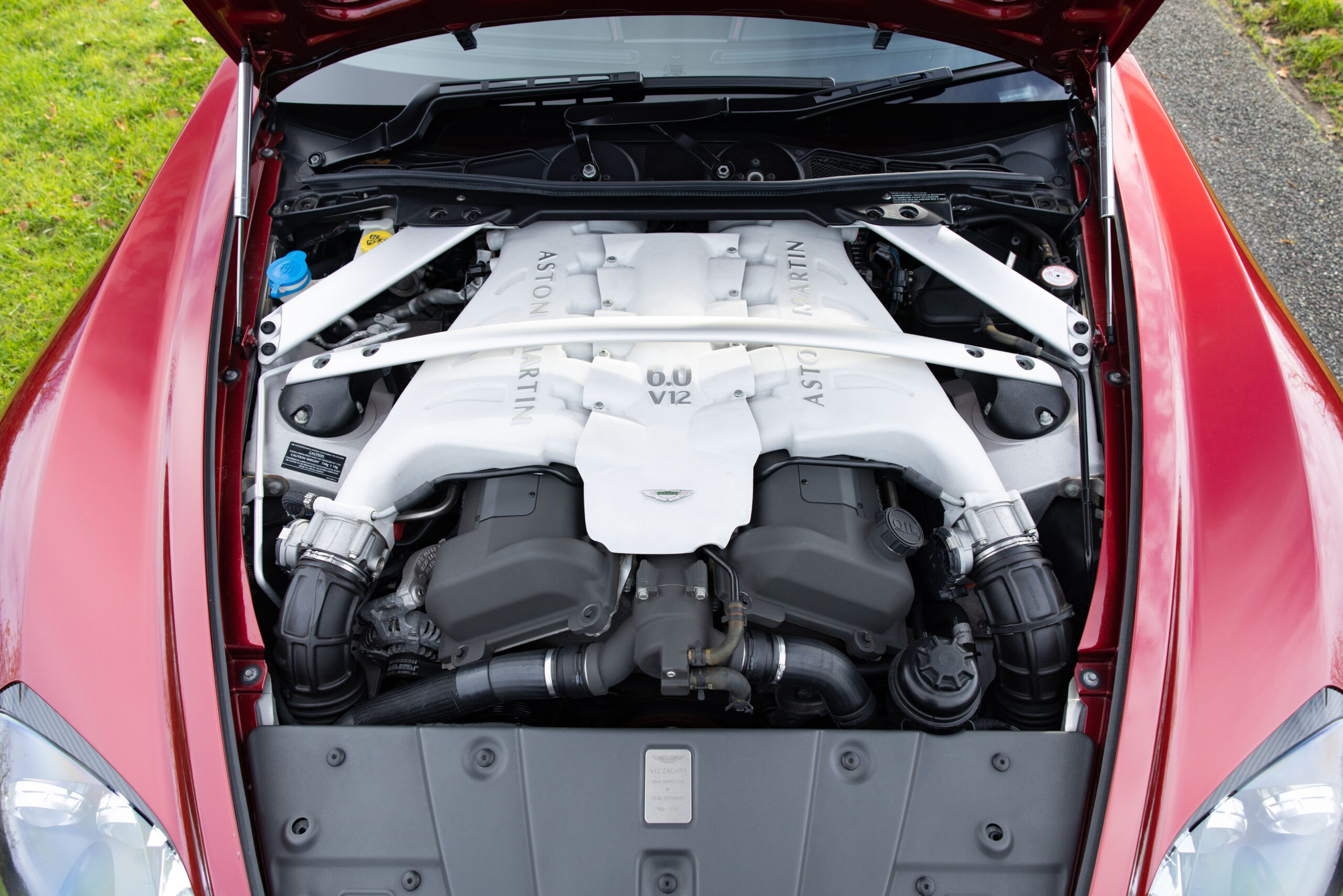 Delivered new to Malaysia via Aston Martin Kuala Lumpur, this is one of just eighteen V12 Zagatos built to RHD specification from a total production run of only 61 road cars. Finished in Diavolo Red, a colour specifically developed for the V12 Zagato, over an Obsidian Black leather interior with contrasting Red stitching throughout to match the paintwork. Furthermore, the car is fitted with the optional Bang & Oulfsen stereo. The specification excludes a certain sporting sophistication, from the Zagato-specific 19-inch black diamond turned wheels to the carbon fibre a-pillars, mirror caps, rear spoiler, and taillight housings.
