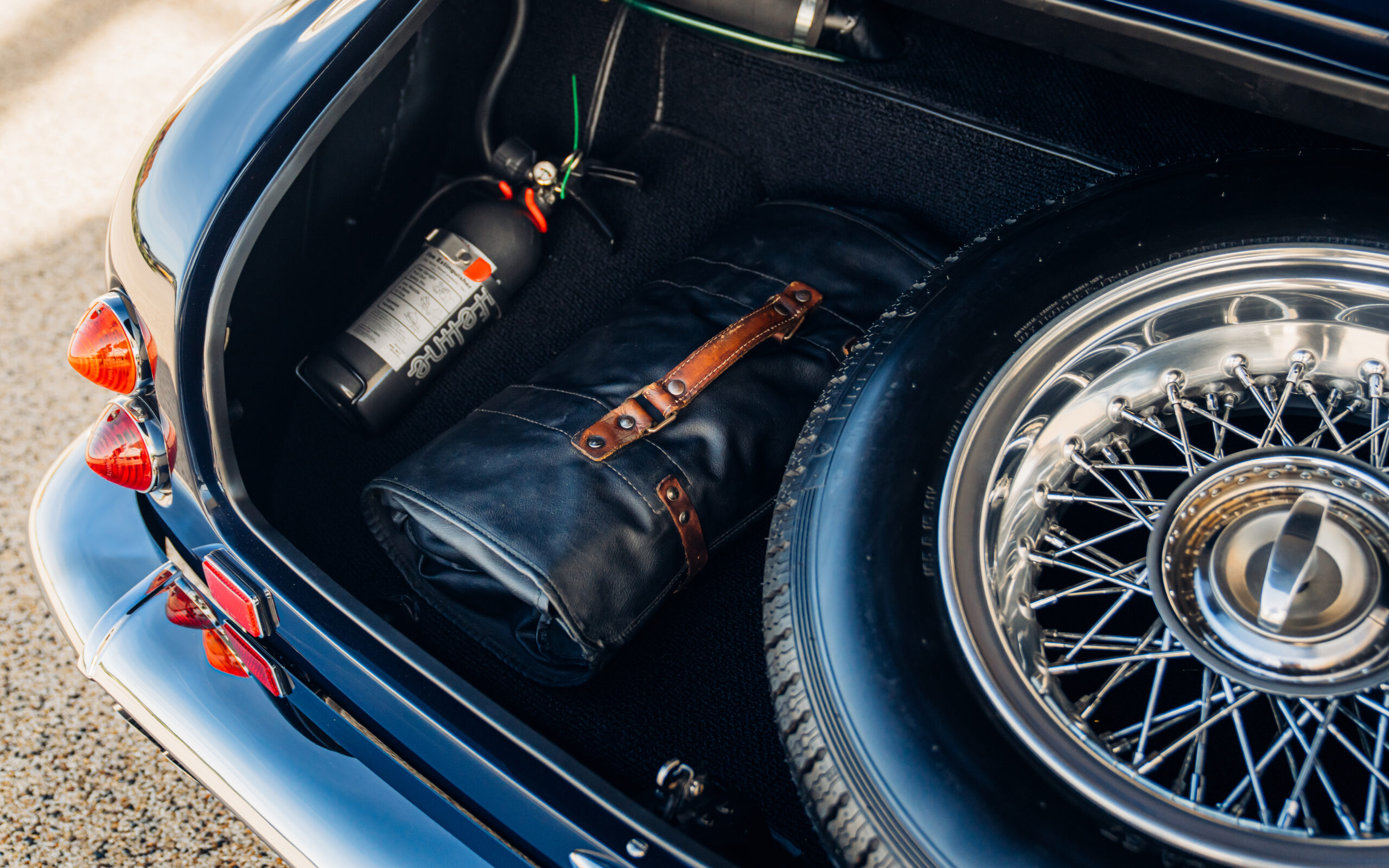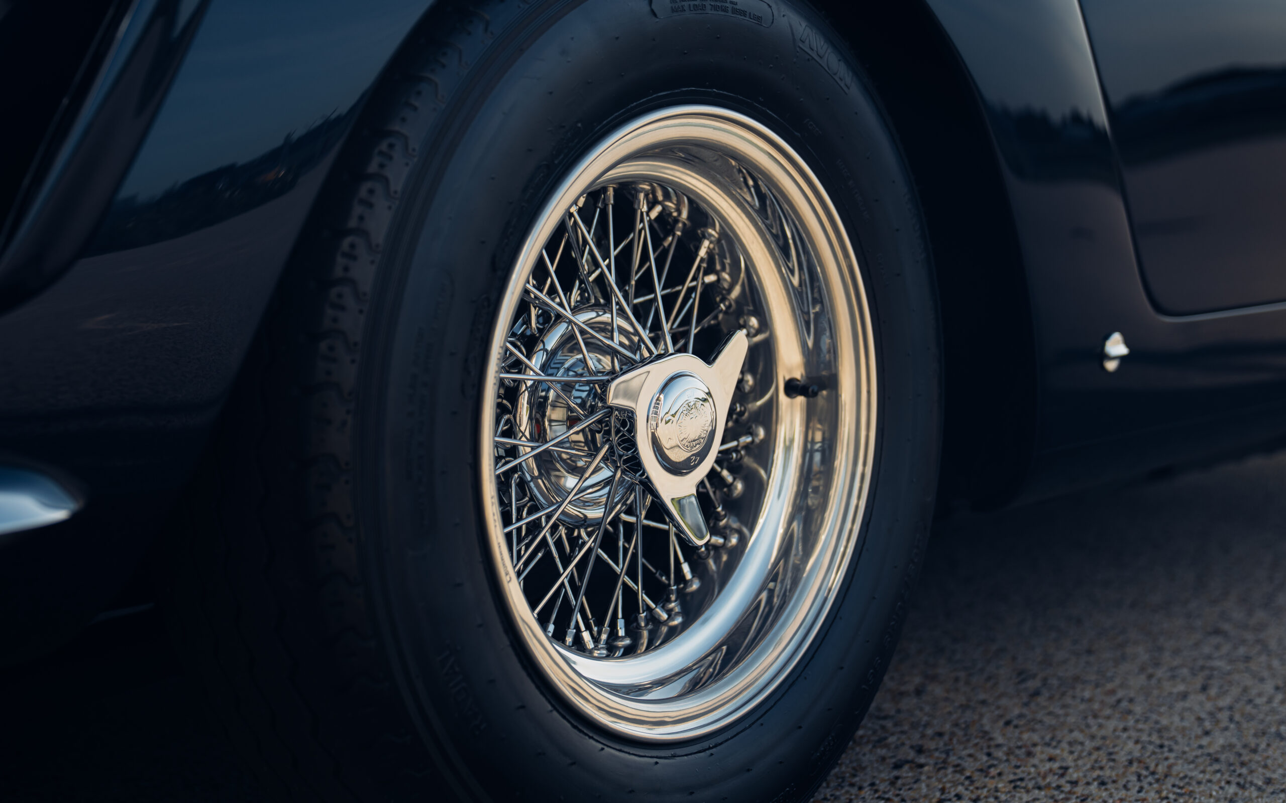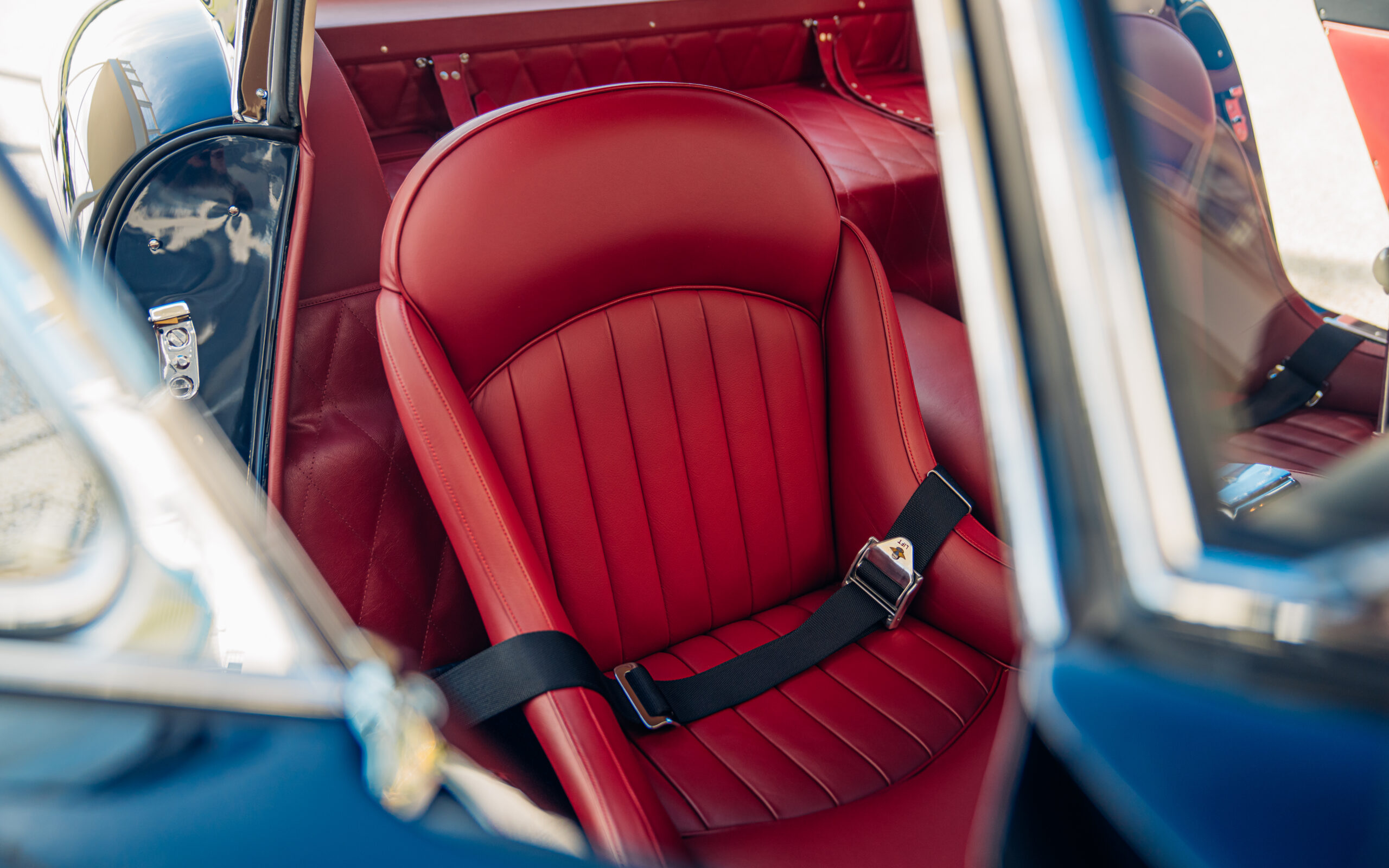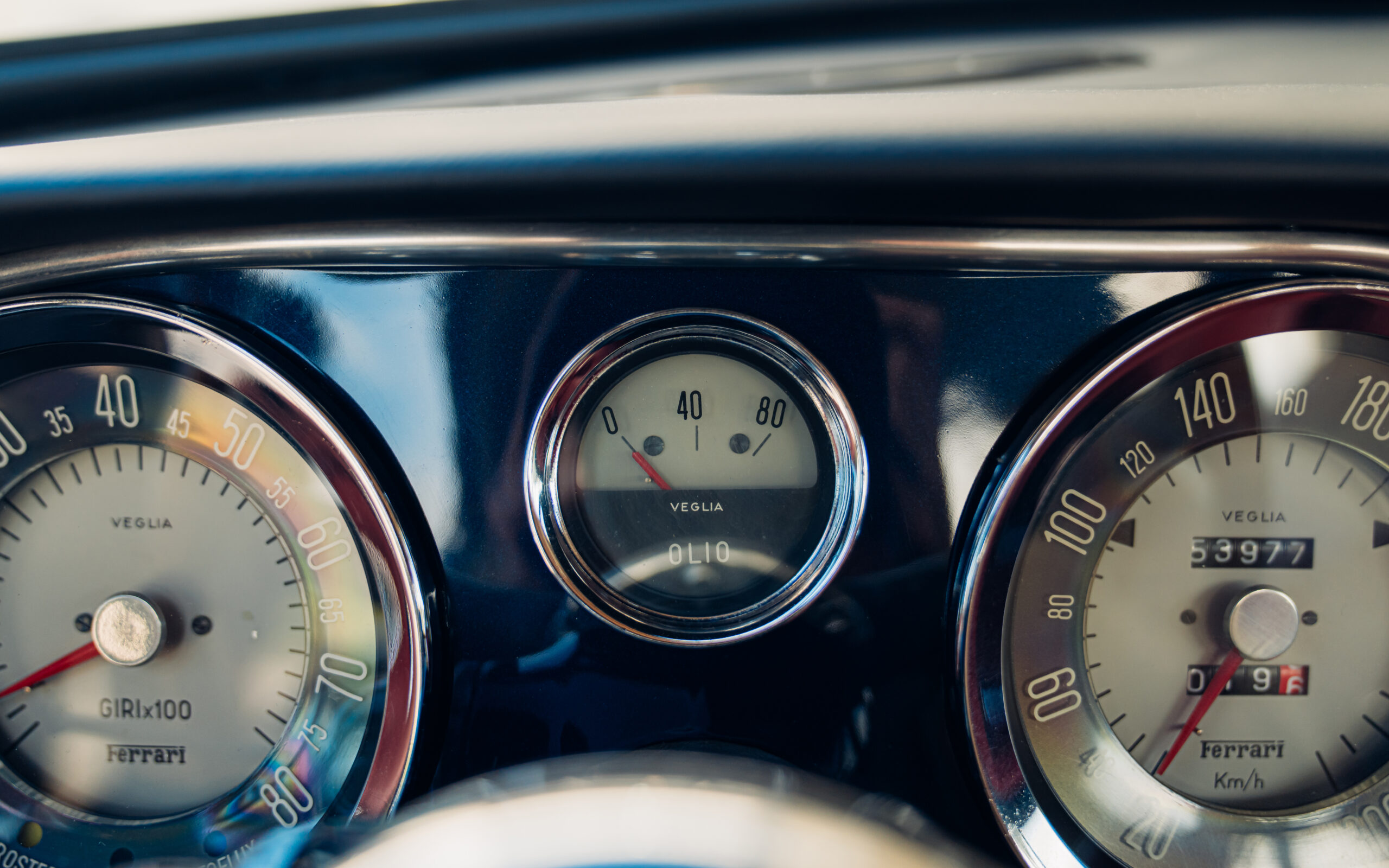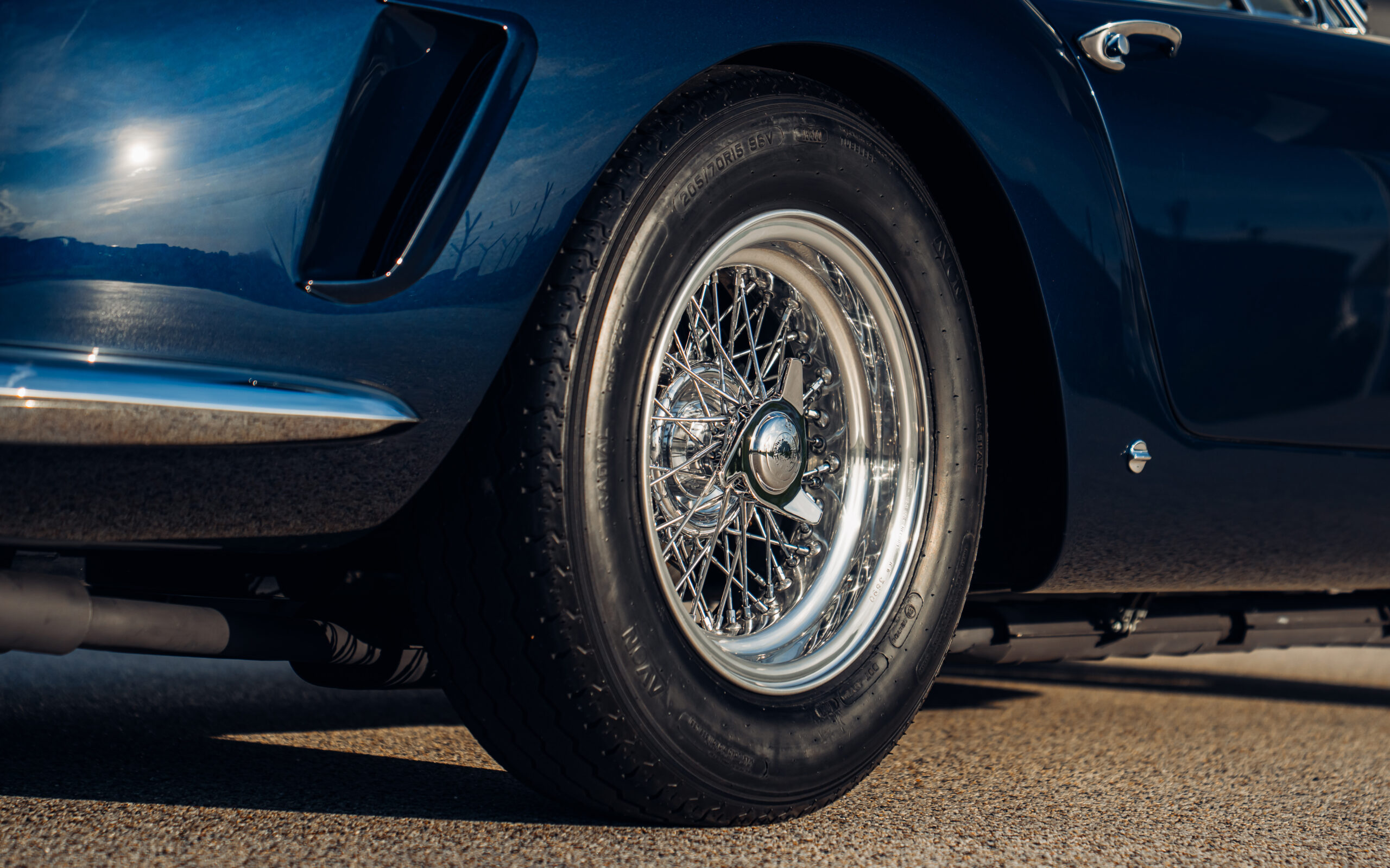 Most recently exhibited at the exclusive Concours of Elegance at Hampton Court in 2019, 3367 GT has since been featured in the August/ September 2019 edition of Cavallino magazine and has continued to be enjoyed privately by its owner. As if to underline his continued commitment to exacting maintenance, it has recently benefitted from the fitment of a new exhaust, a comprehensive brake overhaul and a further gearbox rebuild by Bob Houghton, while a further ‘refurbishment’ respray in Blu Notte Metallizzato was undertaken in May 2024 by highly regarded expert Ross Packard Paintwork. So exacting are this owner’s standards and attention to detail that the car has a special pair of fully bespoke seat covers, so that no wear or discolouration can affect the Connolly hides of the seats. The owner has also furnished the car with two sets of period-correct Borrani wheels; a slightly wider ‘driving’ set shod with Avon tyres, and the car’s (standard specification) show wheels (which wear correct-type Pirelli Cinturato rubber) and are in concours-ready condition. Each set even has their own respective set of spinners allocated to suit.