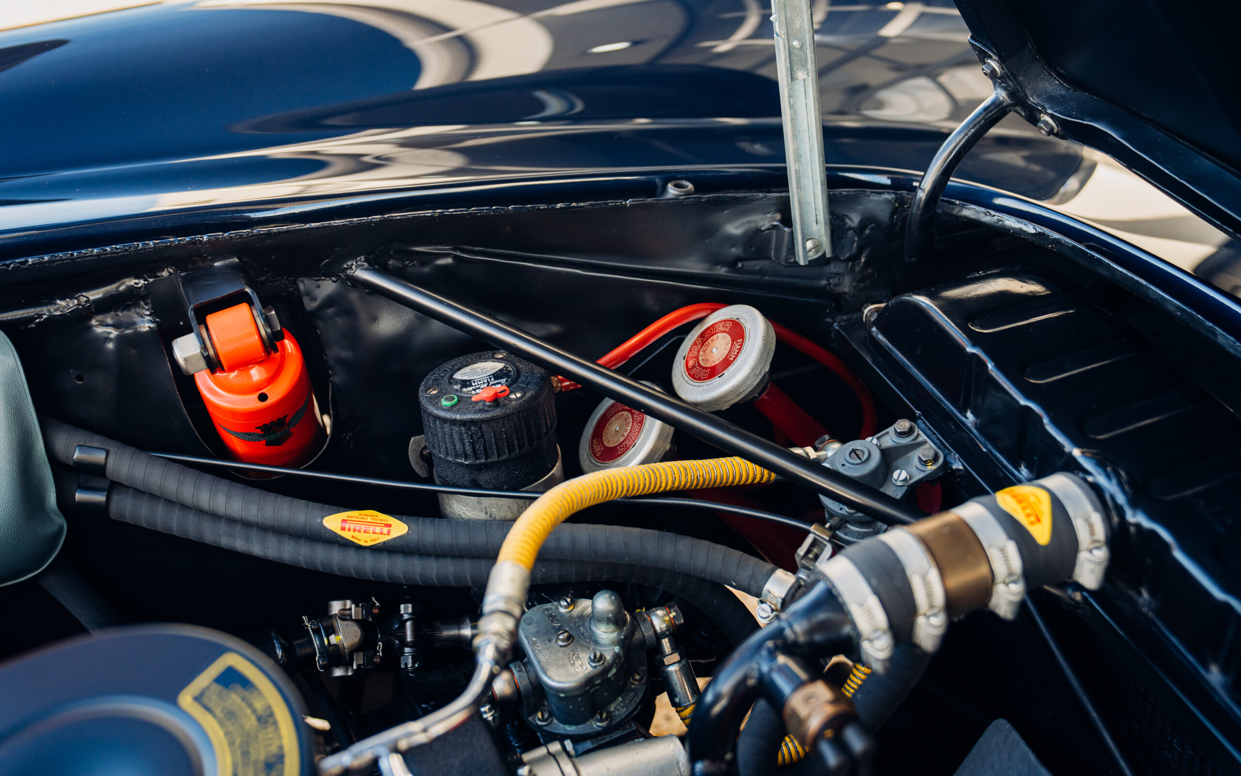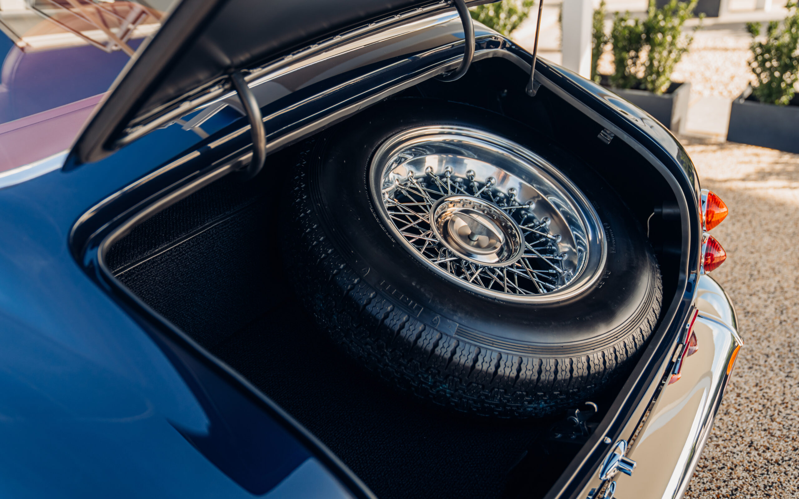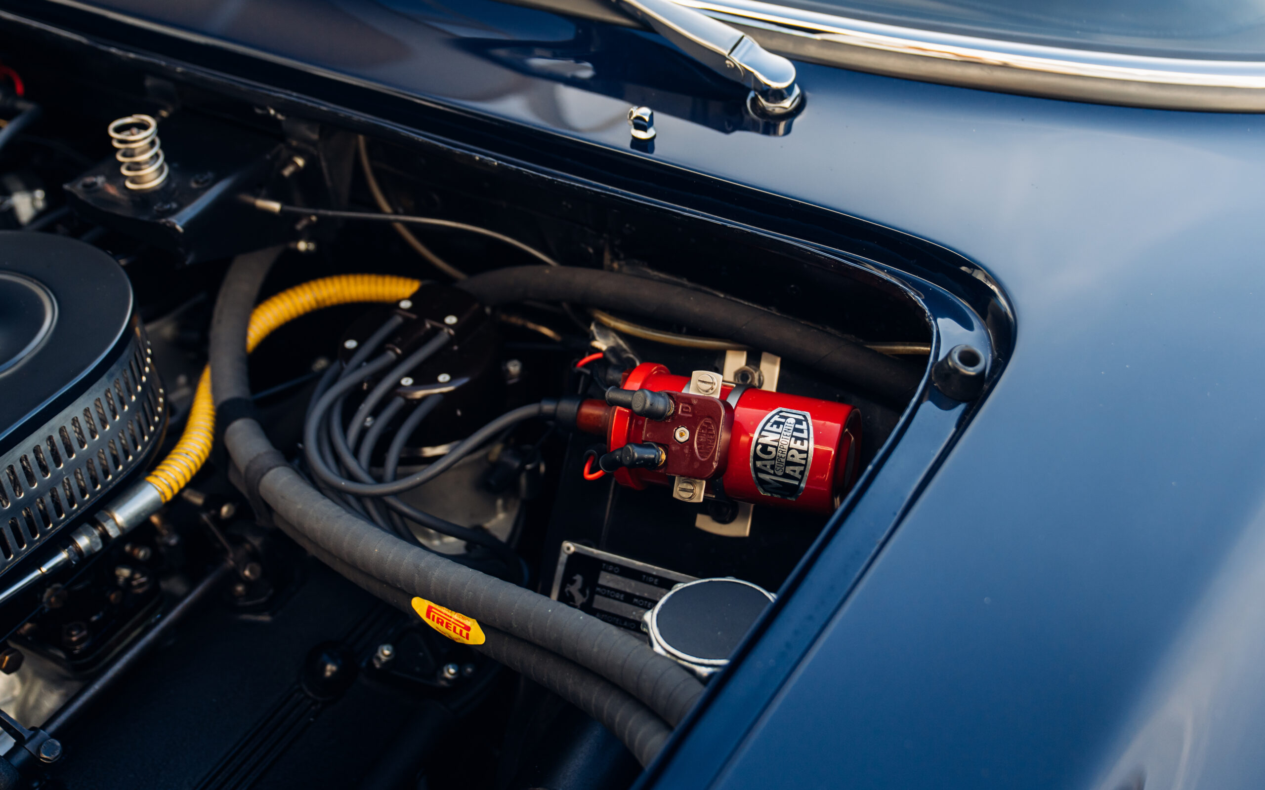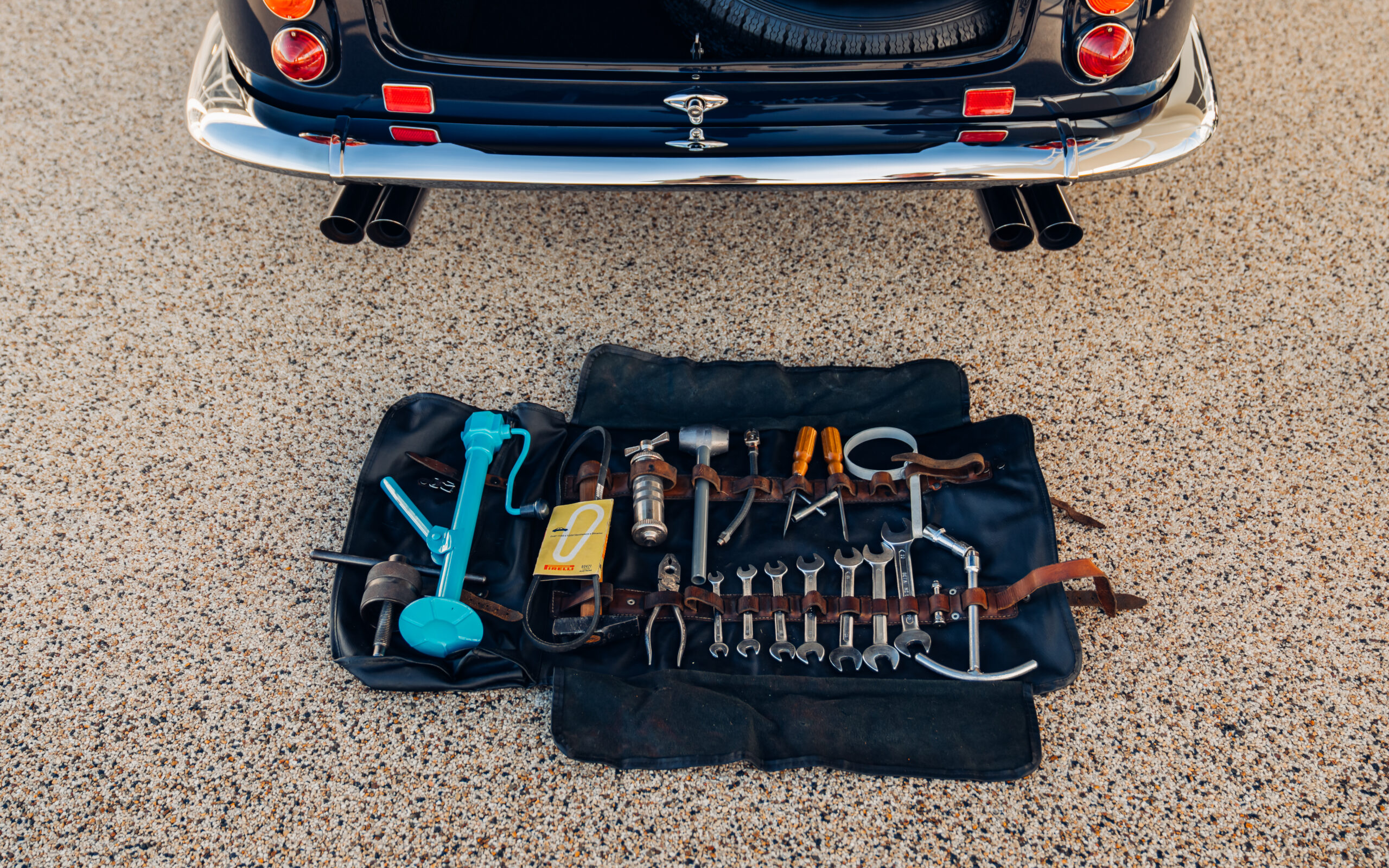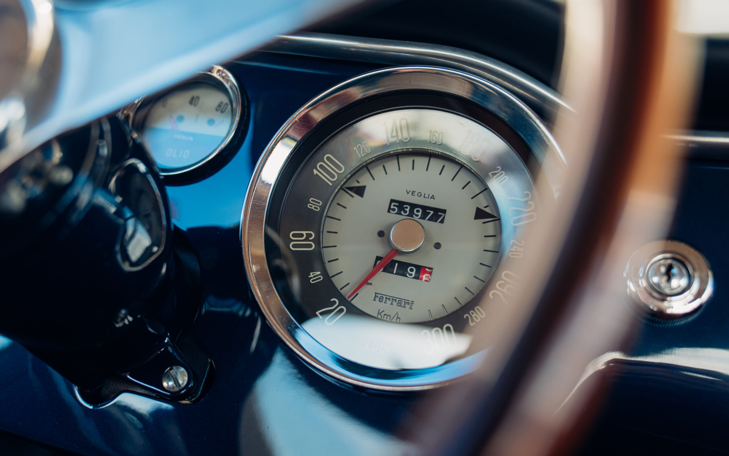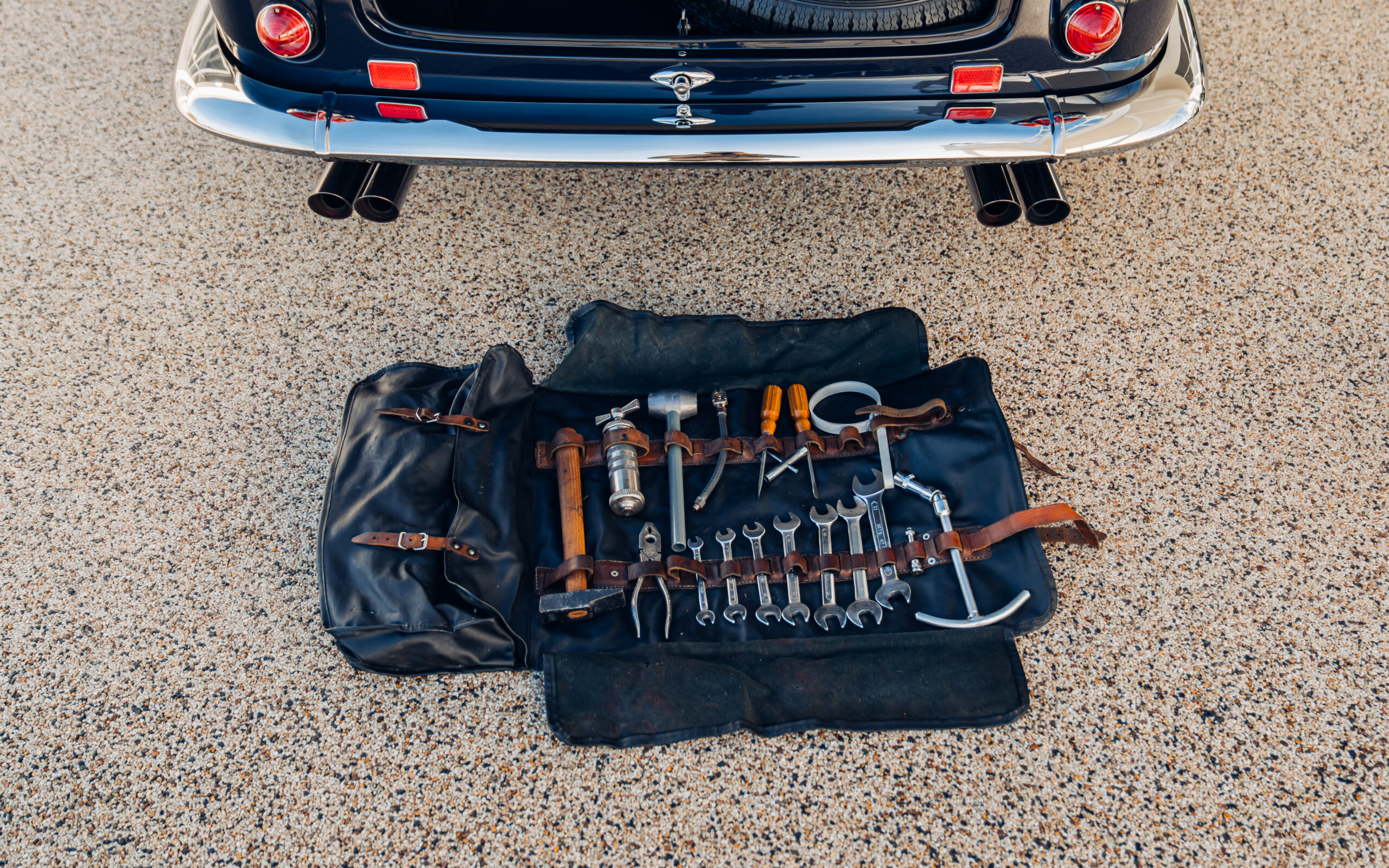 Most recently exhibited at the exclusive Concours of Elegance at Hampton Court in 2019, 3367 GT has since been featured in the August/ September 2019 edition of Cavallino magazine and has continued to be enjoyed privately by its owner. As if to underline his continued commitment to exacting maintenance, it has recently benefitted from the fitment of a new exhaust, a comprehensive brake overhaul and a further gearbox rebuild by Bob Houghton, while a further ‘refurbishment’ respray in Blu Notte Metallizzato was undertaken in May 2024 by highly regarded expert Ross Packard Paintwork. So exacting are this owner’s standards and attention to detail that the car has a special pair of fully bespoke seat covers, so that no wear or discolouration can affect the Connolly hides of the seats. The owner has also furnished the car with two sets of period-correct Borrani wheels; a slightly wider ‘driving’ set shod with Avon tyres, and the car’s (standard specification) show wheels (which wear correct-type Pirelli Cinturato rubber) and are in concours-ready condition. Each set even has their own respective set of spinners allocated to suit.