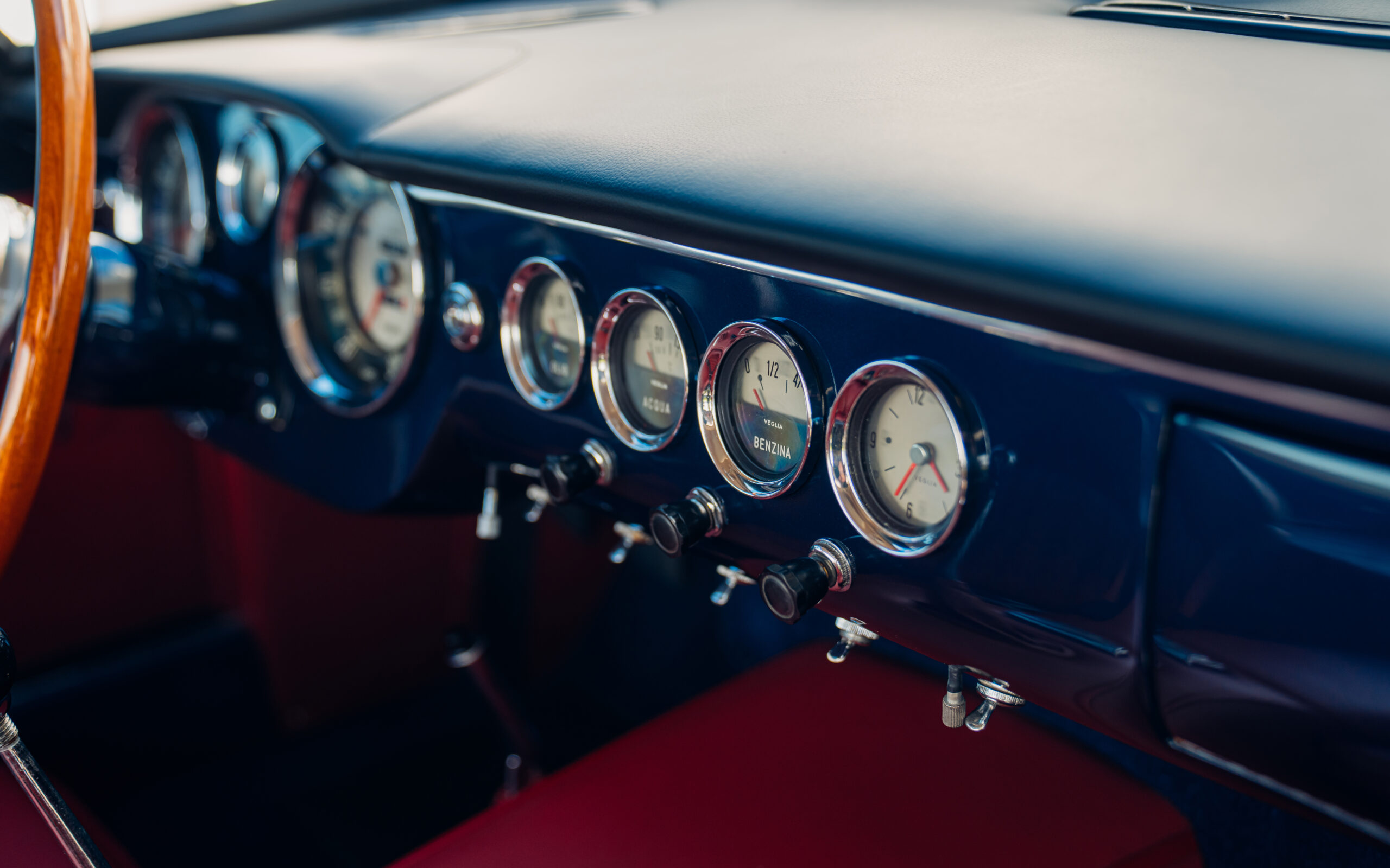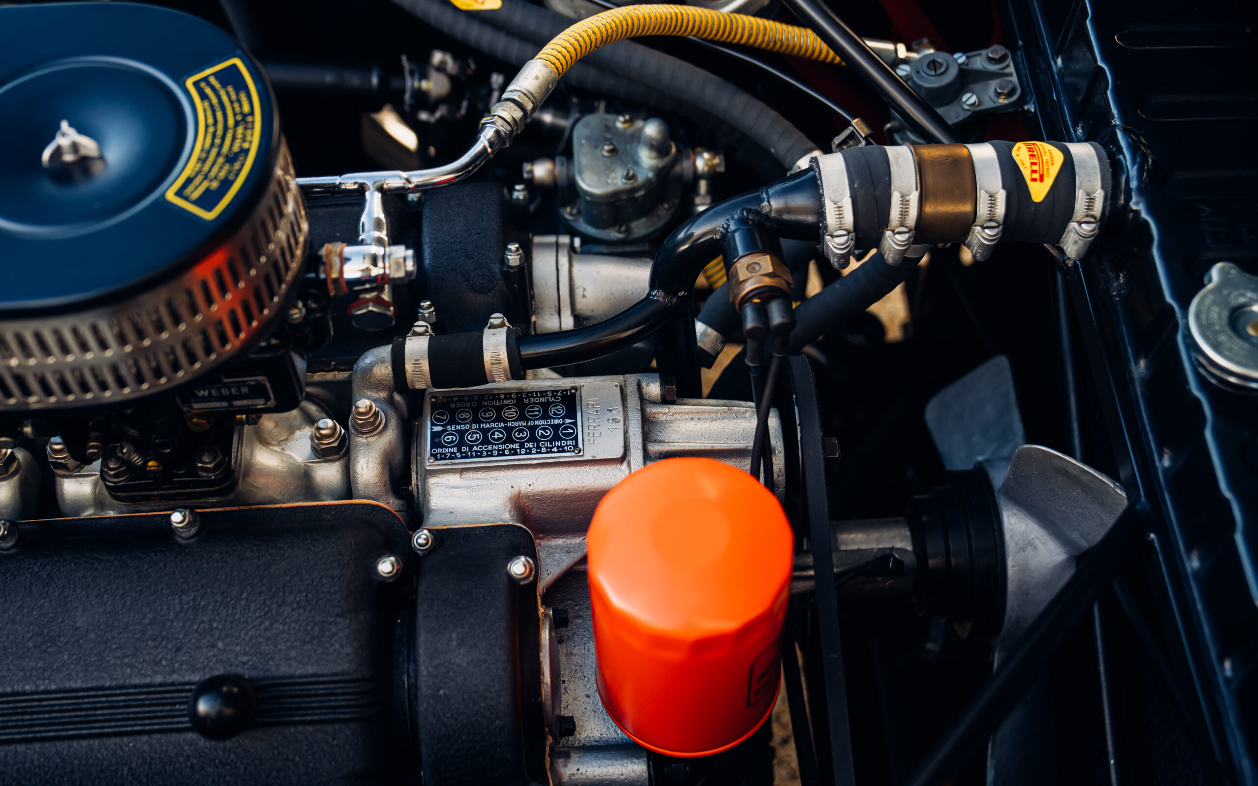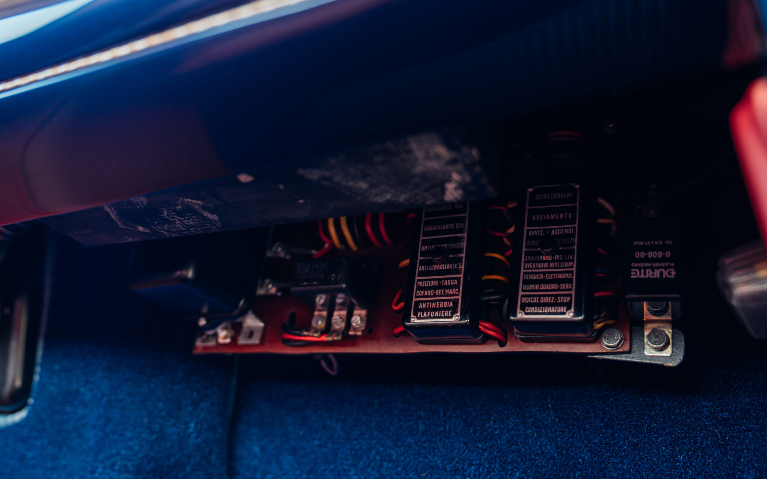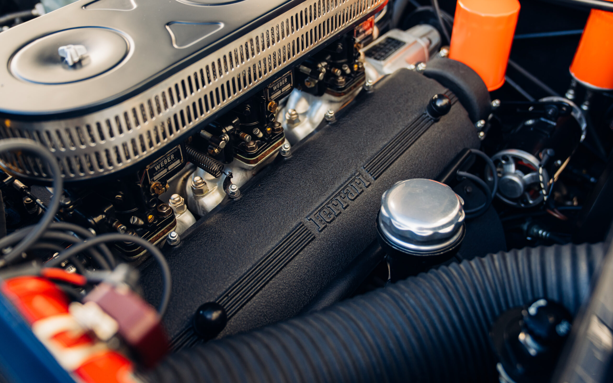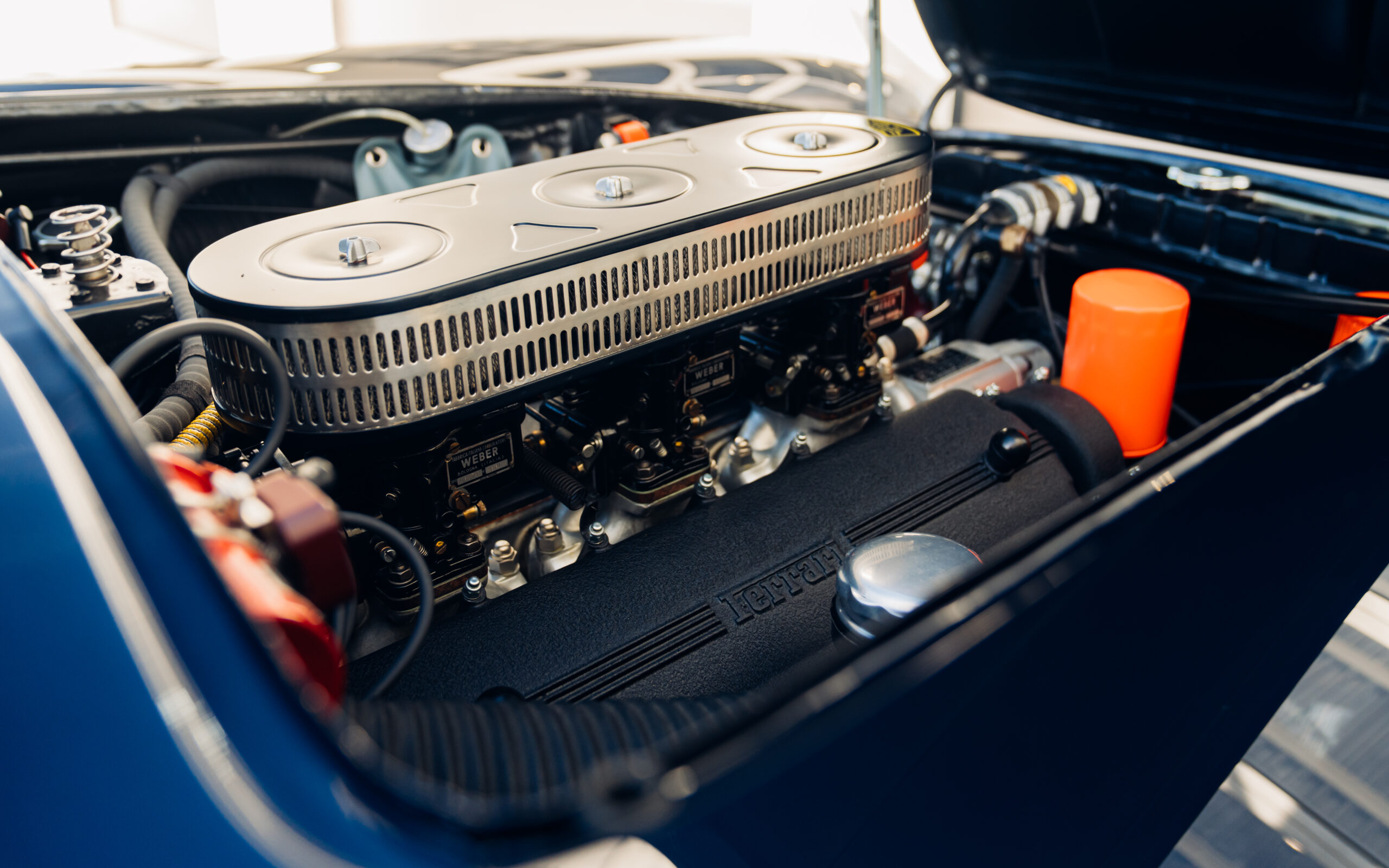 Most recently exhibited at the exclusive Concours of Elegance at Hampton Court in 2019, 3367 GT has since been featured in the August/ September 2019 edition of Cavallino magazine and has continued to be enjoyed privately by its owner. As if to underline his continued commitment to exacting maintenance, it has recently benefitted from the fitment of a new exhaust, a comprehensive brake overhaul and a further gearbox rebuild by Bob Houghton, while a further ‘refurbishment’ respray in Blu Notte Metallizzato was undertaken in May 2024 by highly regarded expert Ross Packard Paintwork. So exacting are this owner’s standards and attention to detail that the car has a special pair of fully bespoke seat covers, so that no wear or discolouration can affect the Connolly hides of the seats. The owner has also furnished the car with two sets of period-correct Borrani wheels; a slightly wider ‘driving’ set shod with Avon tyres, and the car’s (standard specification) show wheels (which wear correct-type Pirelli Cinturato rubber) and are in concours-ready condition. Each set even has their own respective set of spinners allocated to suit.