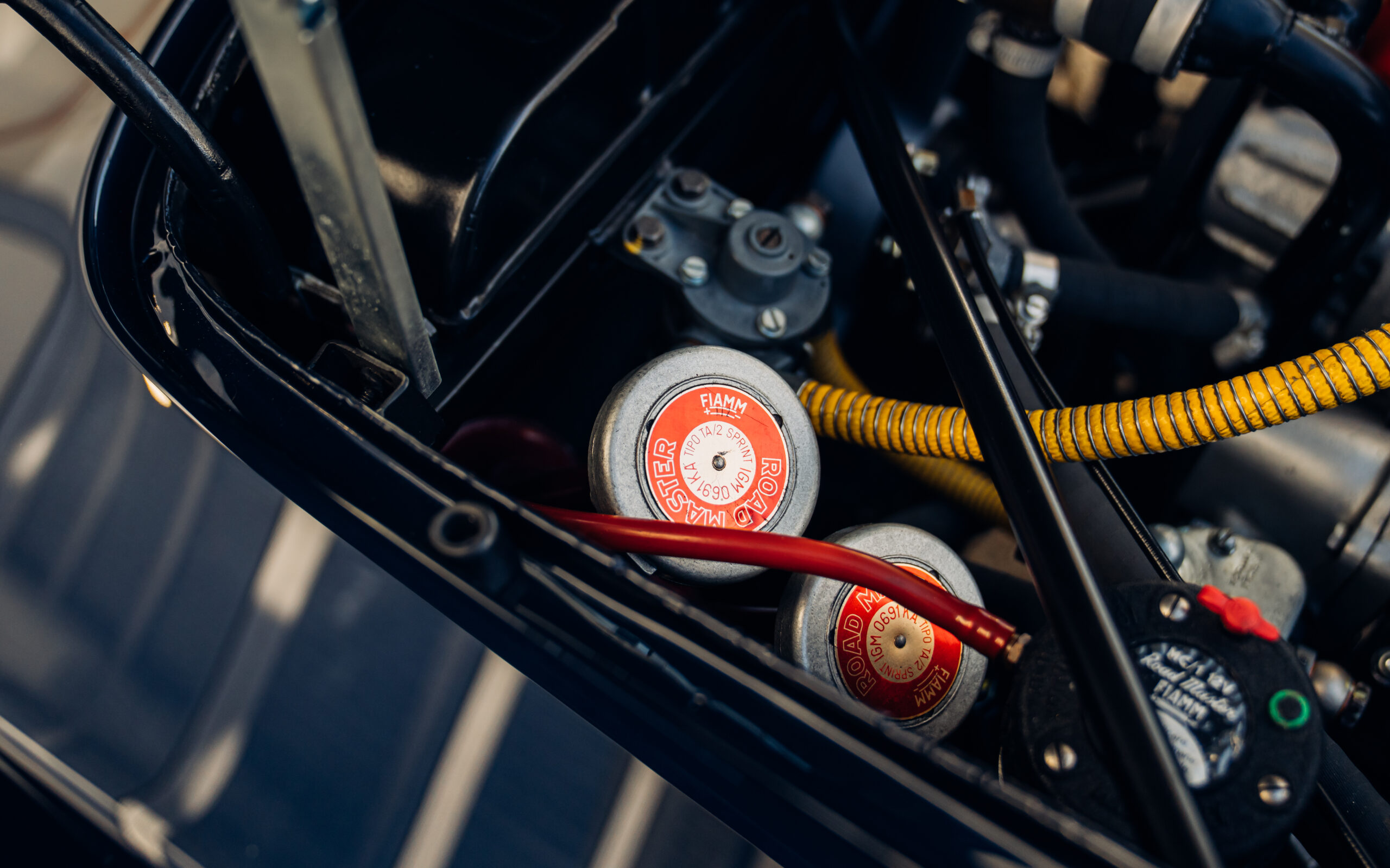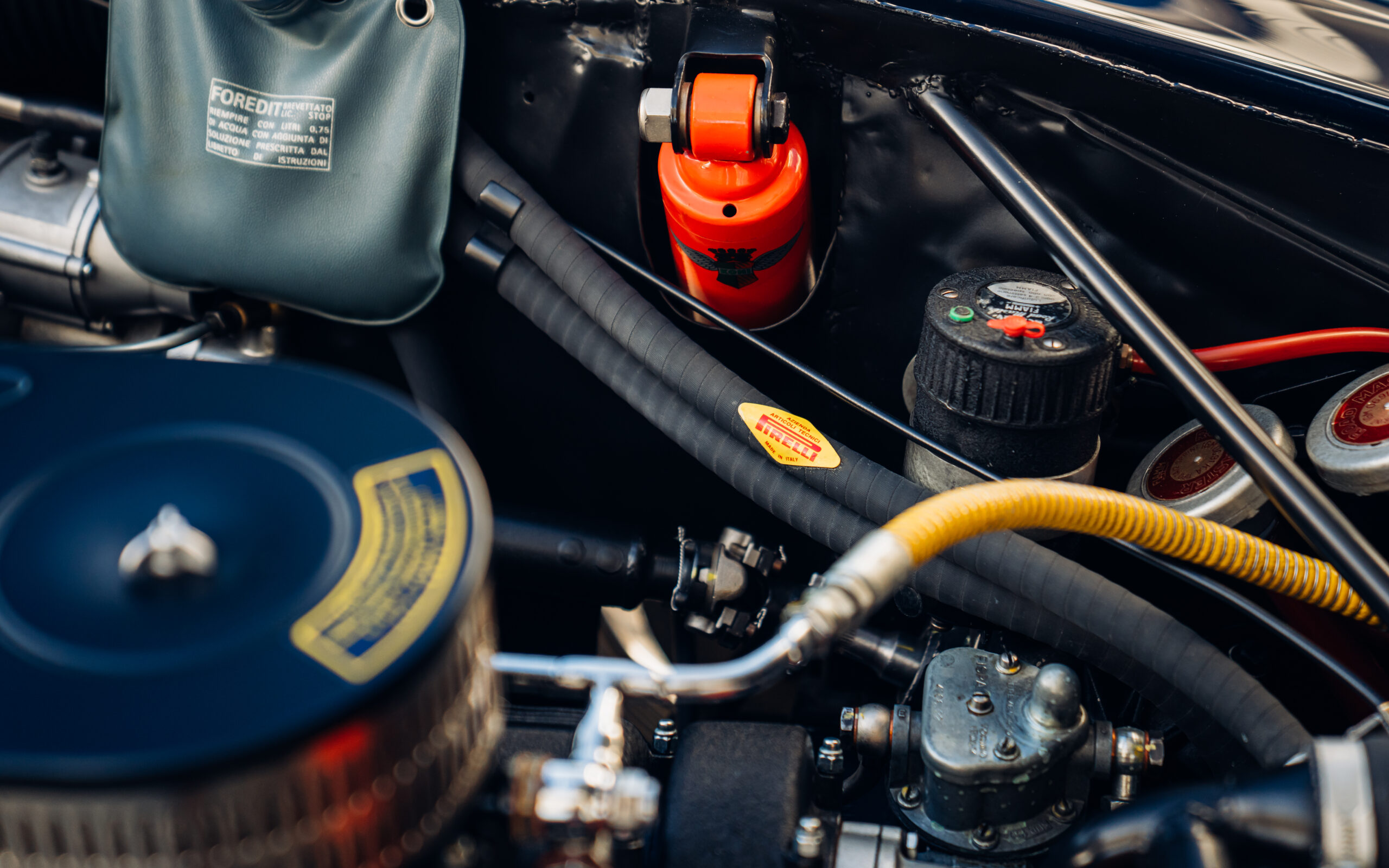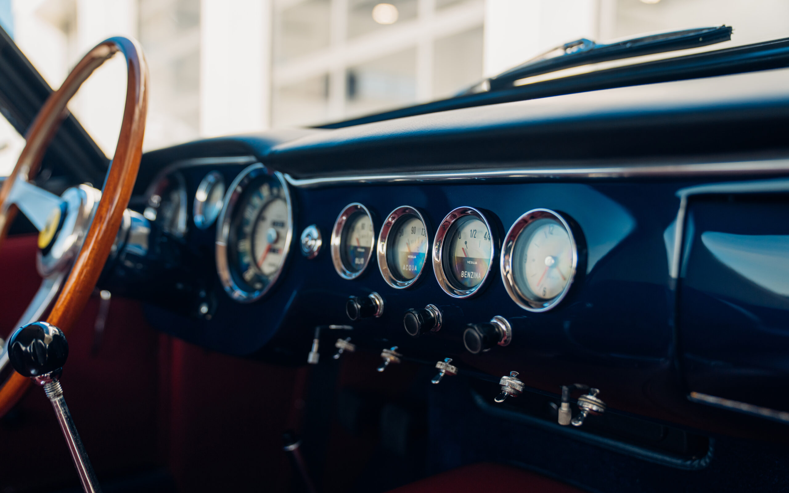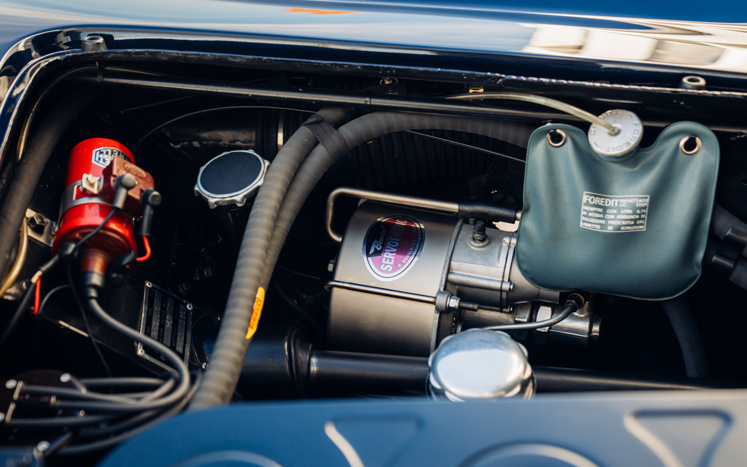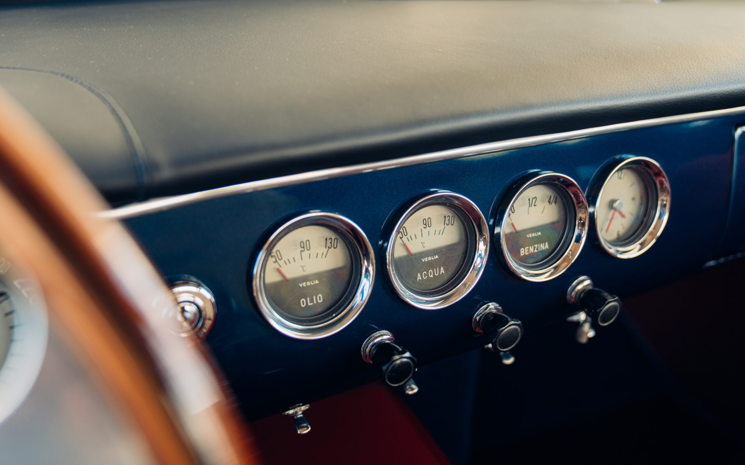 Most recently exhibited at the exclusive Concours of Elegance at Hampton Court in 2019, 3367 GT has since been featured in the August/ September 2019 edition of Cavallino magazine and has continued to be enjoyed privately by its owner. As if to underline his continued commitment to exacting maintenance, it has recently benefitted from the fitment of a new exhaust, a comprehensive brake overhaul and a further gearbox rebuild by Bob Houghton, while a further ‘refurbishment’ respray in Blu Notte Metallizzato was undertaken in May 2024 by highly regarded expert Ross Packard Paintwork. So exacting are this owner’s standards and attention to detail that the car has a special pair of fully bespoke seat covers, so that no wear or discolouration can affect the Connolly hides of the seats. The owner has also furnished the car with two sets of period-correct Borrani wheels; a slightly wider ‘driving’ set shod with Avon tyres, and the car’s (standard specification) show wheels (which wear correct-type Pirelli Cinturato rubber) and are in concours-ready condition. Each set even has their own respective set of spinners allocated to suit.