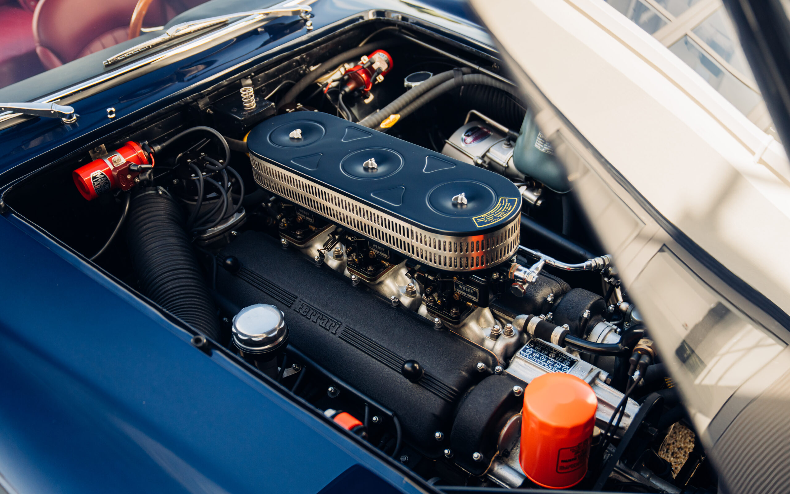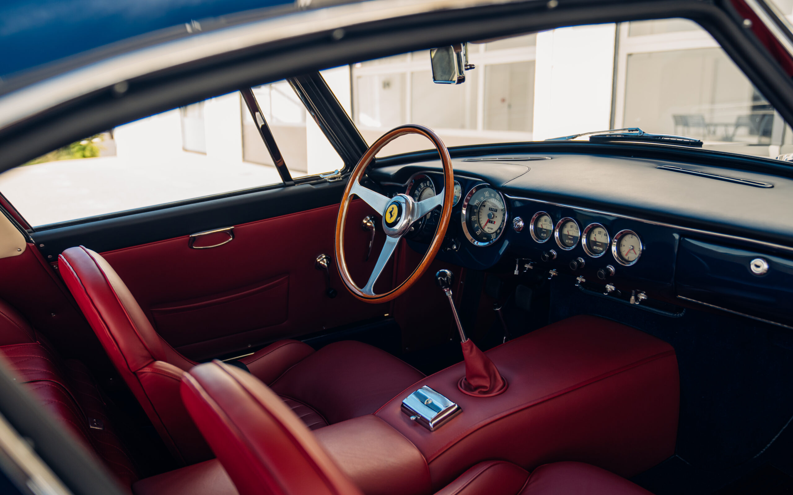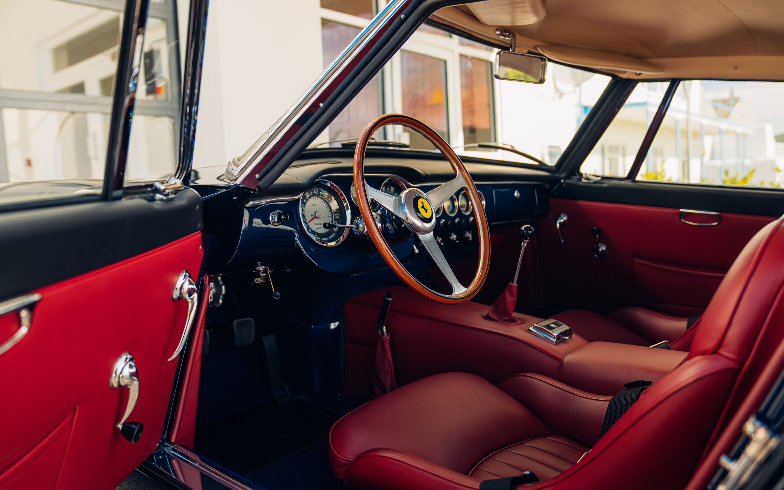 In 2012, custody of 3367 GT passed to one of the leading UK Ferrari collections—well known for an unwavering attention to detail and in whose care it has since been cherished and meticulously returned to road specification. As a keen concours entrant, the owner entrusted 3367 GT to Medcalf & Company for a respray in the distinguished colour of Blu Notte Metallizzato alongside addressing a few bodywork imperfections in an effort to ensure subsequent certification by Ferrari Classiche, and the car was then returned to O’Rourke Coachtrimmers for a full re-trim in red Connolly leather. These colours were chosen by the owners after much deliberation as they decided they would have specified the car as such if they were buying it new in 1962.