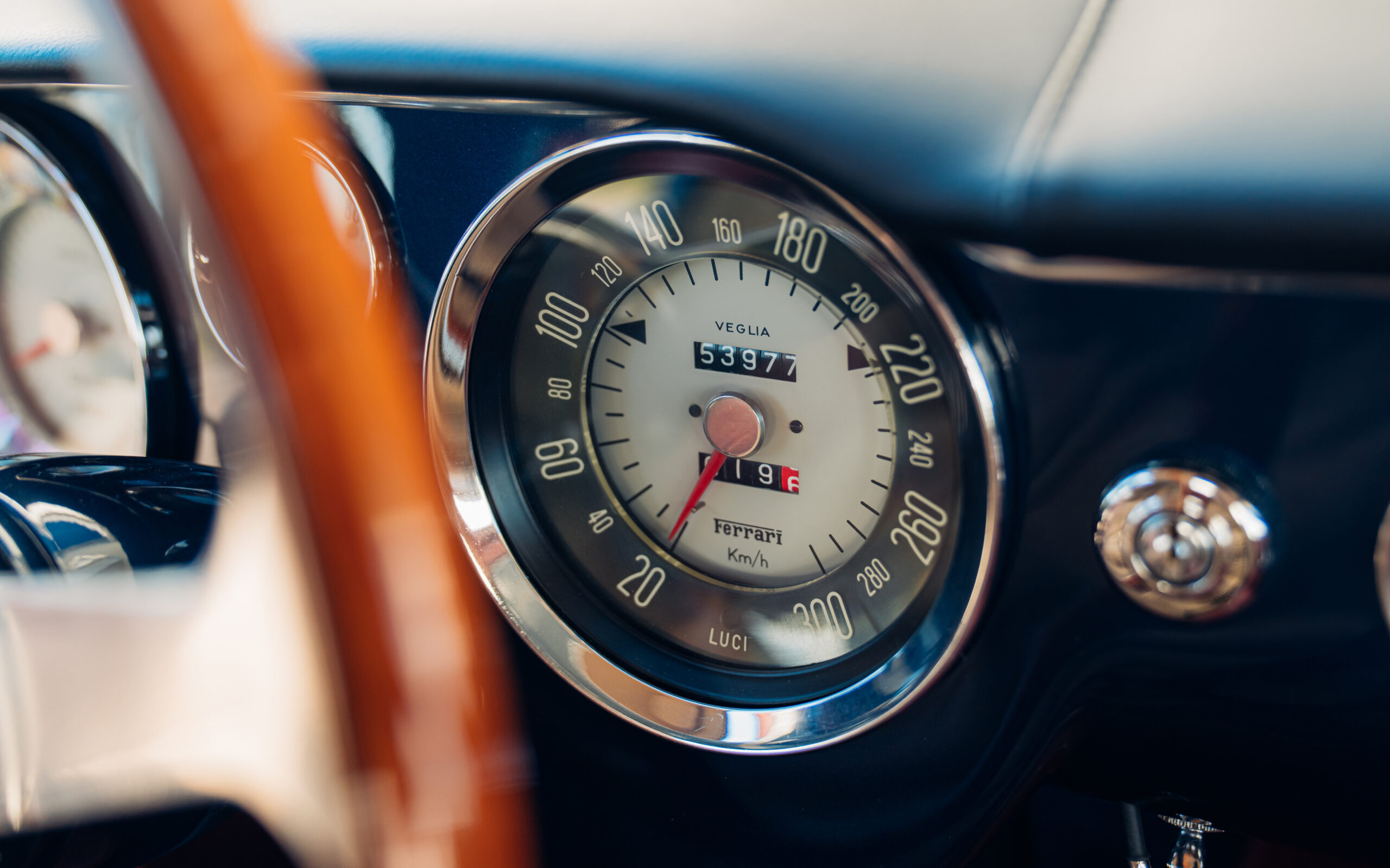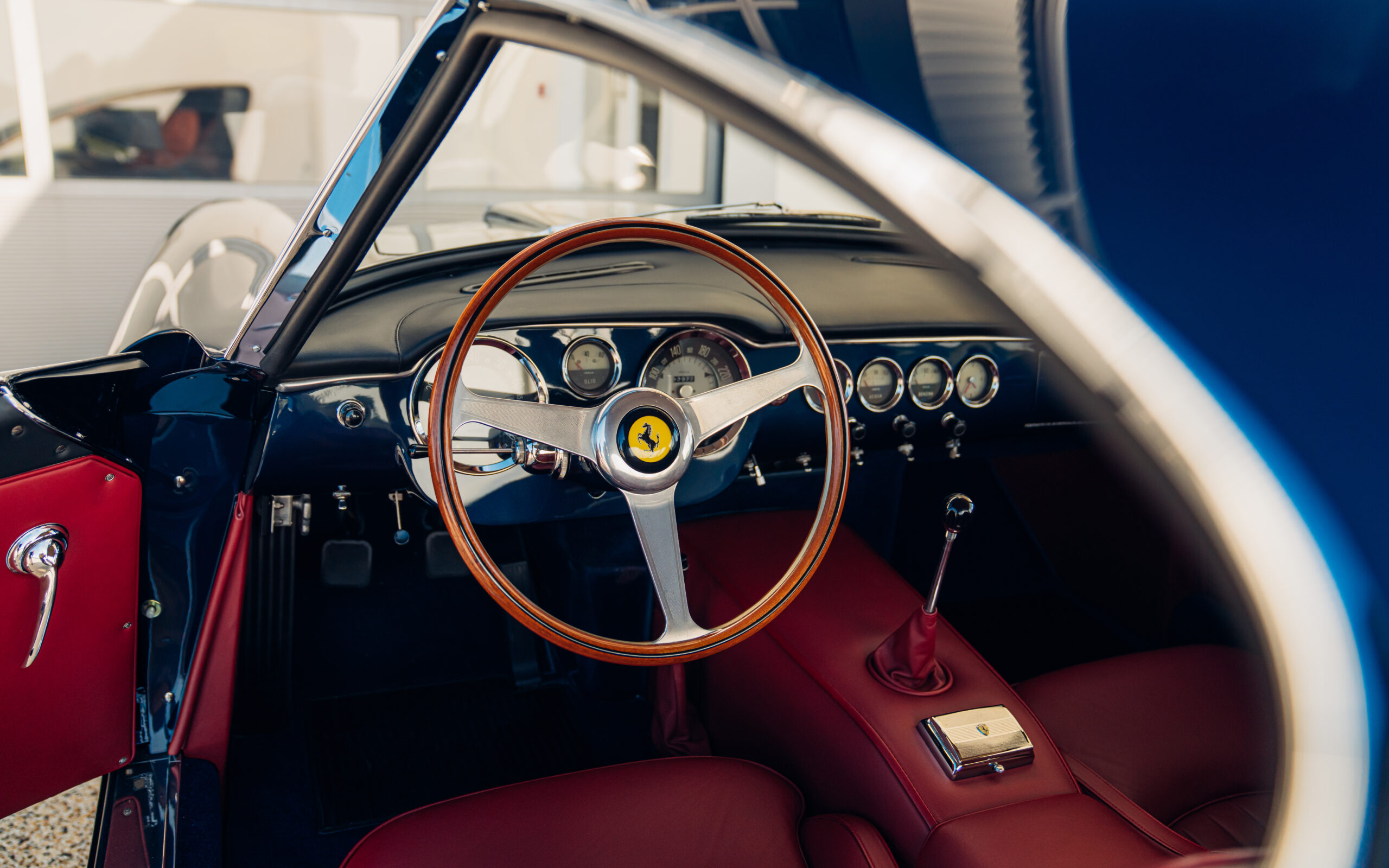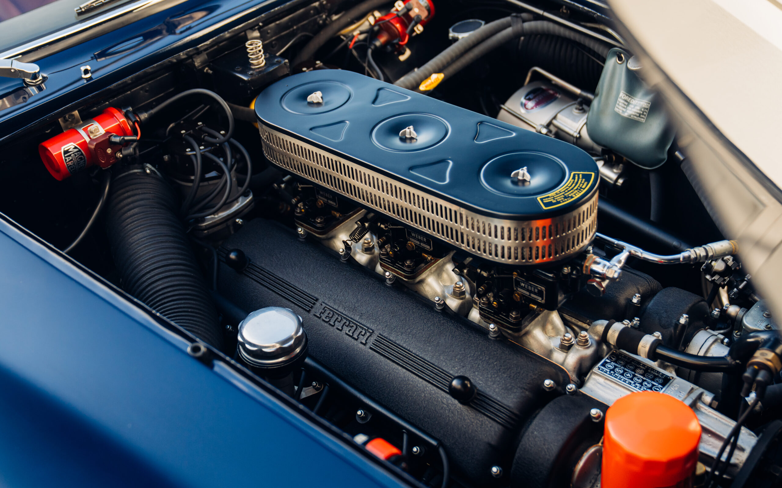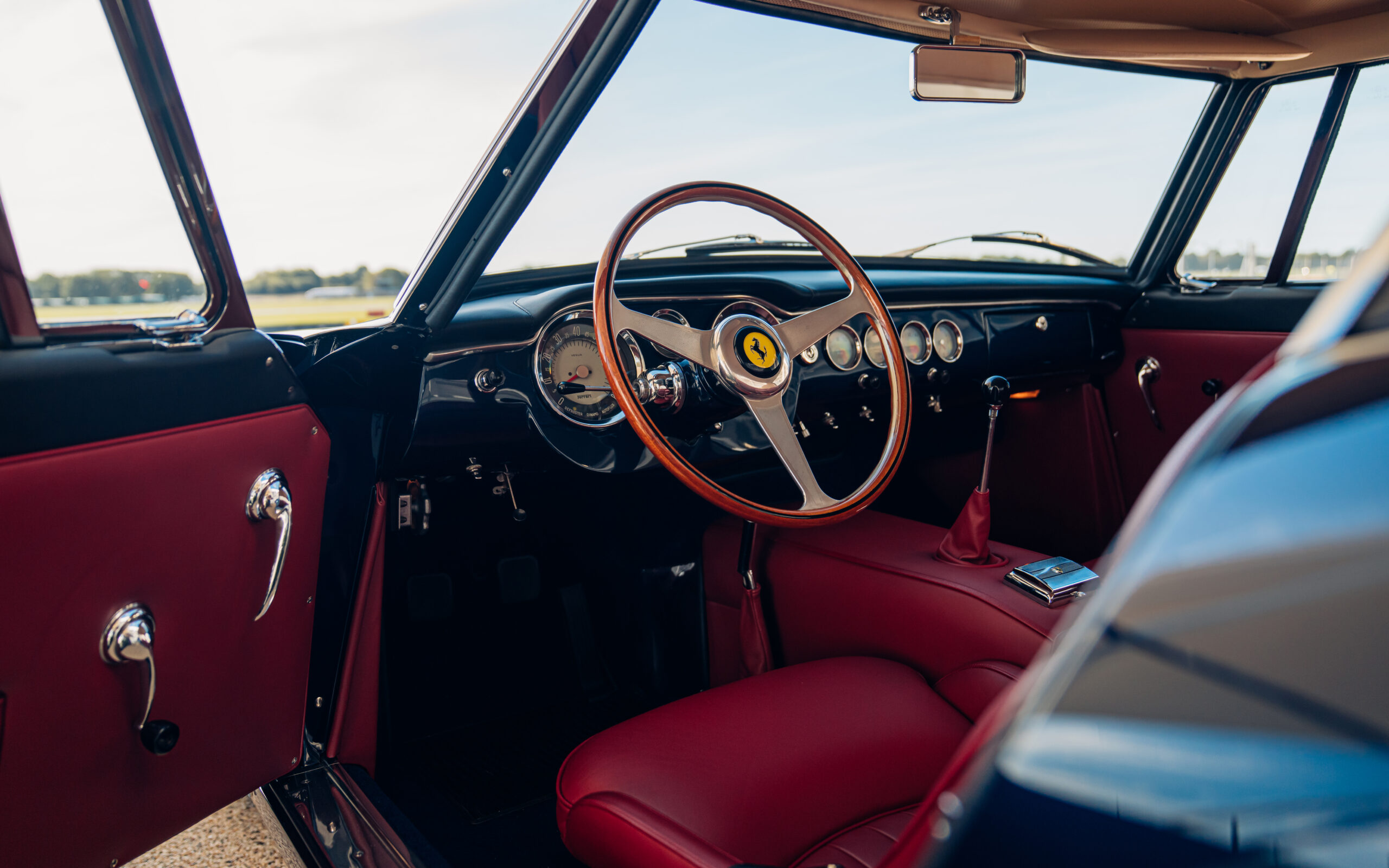 In 2012, custody of 3367 GT passed to one of the leading UK Ferrari collections—well known for an unwavering attention to detail and in whose care it has since been cherished and meticulously returned to road specification. As a keen concours entrant, the owner entrusted 3367 GT to Medcalf & Company for a respray in the distinguished colour of Blu Notte Metallizzato alongside addressing a few bodywork imperfections in an effort to ensure subsequent certification by Ferrari Classiche, and the car was then returned to O’Rourke Coachtrimmers for a full re-trim in red Connolly leather. These colours were chosen by the owners after much deliberation as they decided they would have specified the car as such if they were buying it new in 1962.