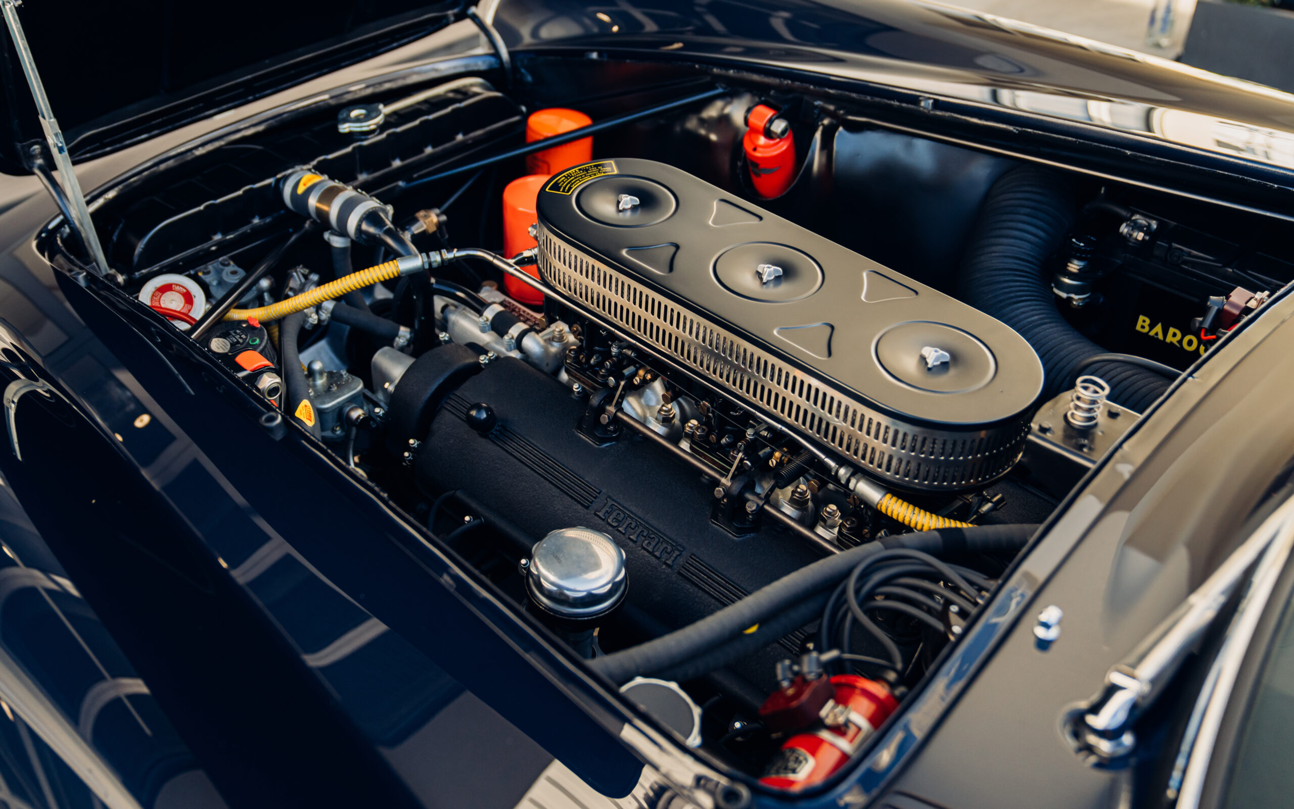 The refreshingly transparent history of this particular car, chassis number 3367 GT, begins in early 1962; its chassis having been completed at Maranello on 10 January, prior to despatch to master craftsman Sergio Scaglietti’s coachworks in Modena. As a late production, second series chassis designated for completion to “Lusso” specification, the car was fitted with a steel body, albeit with an aluminium bonnet, doors, and boot lid. As with other Series 2 cars, 3367 GT featured a distinctive horizontal roof vent, wider radiator grille, and reprofiled rear wheel arches; the latter, on the driver’s side, accommodating the filler cap previously recessed into the boot lid on earlier cars.