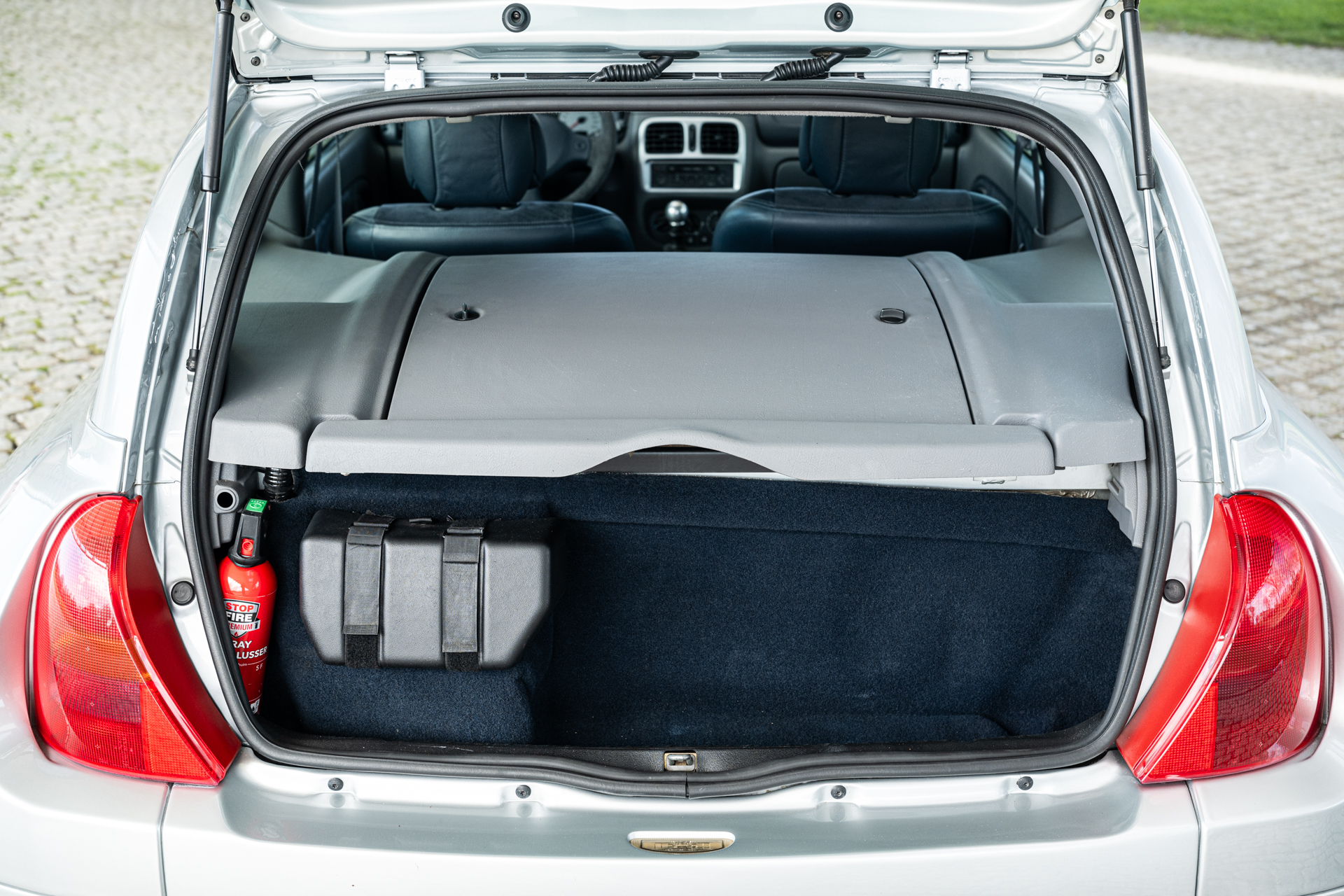 The Renault Clio V6 Renault Sport was based on the Renault Clio Mark II, though it shares very few parts with that car. The 3.0 V6 engine, sourced from the PSA group, was upgraded to around 230 horsepower and placed in the middle of the vehicle, where standard Clios have rear seats, making this car a two-seater hot hatch. The mid-engined, wide-body concept of the Clio V6 was very reminiscent of the 1980s Renault 5 Turbo. Both road-going models were low-volume production cars, making them very rare. Alongside the road car, a circuit-only version was produced, known as the Clio V6 Trophy.